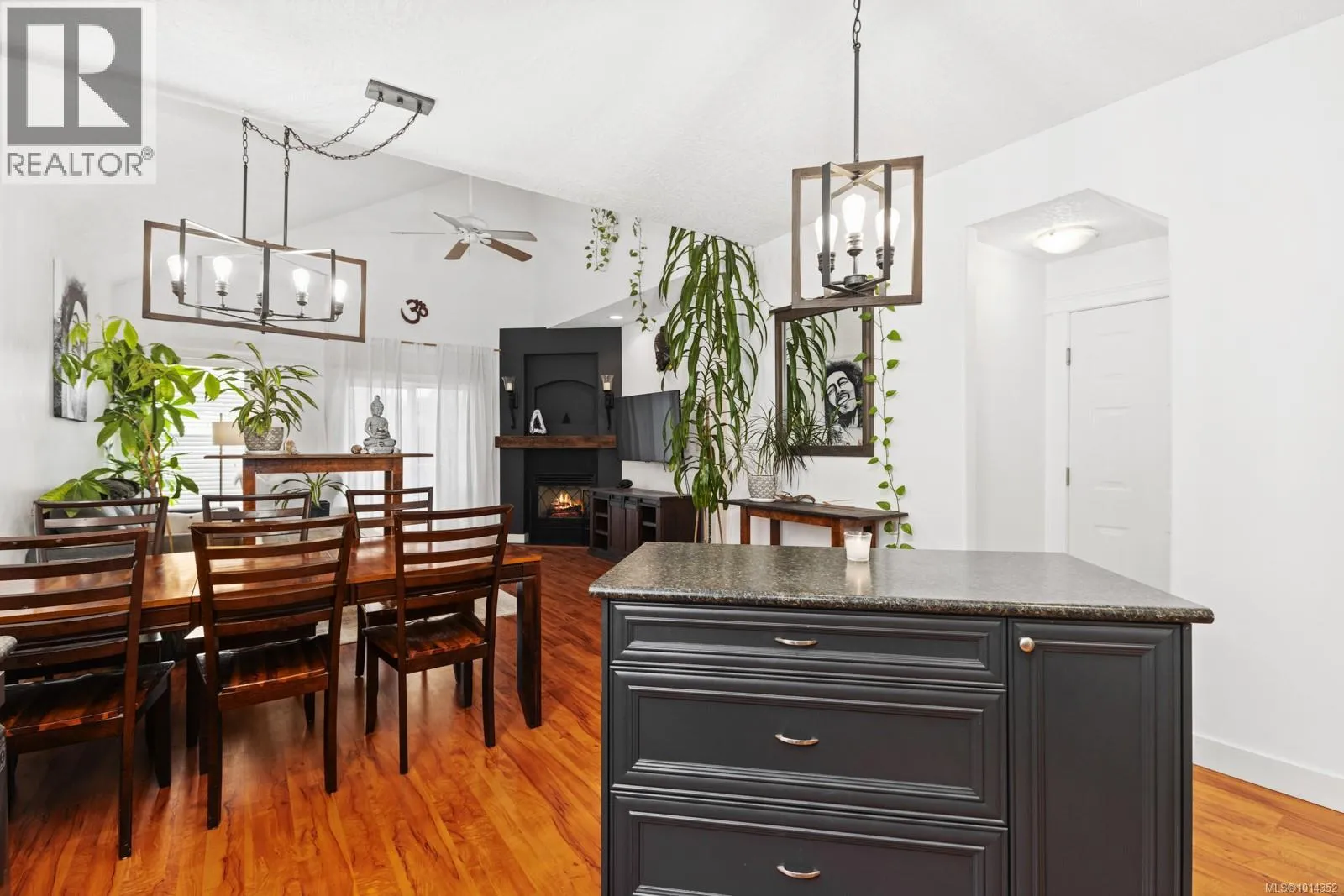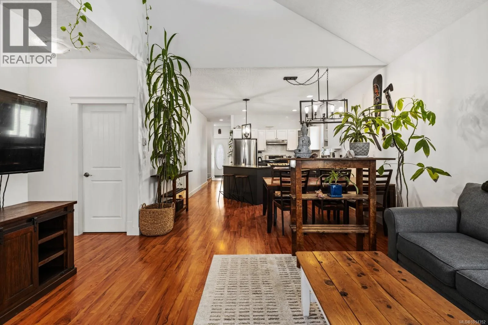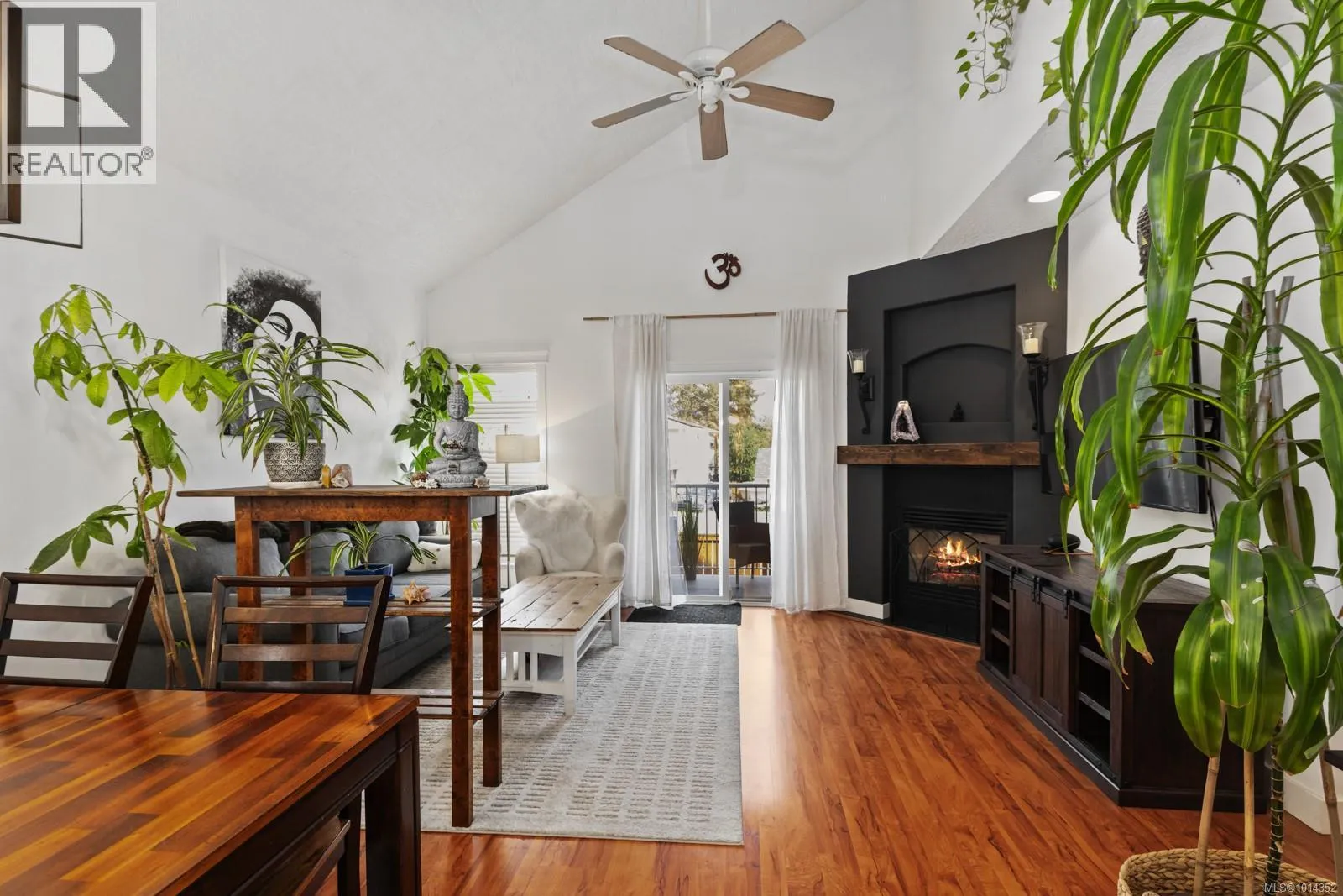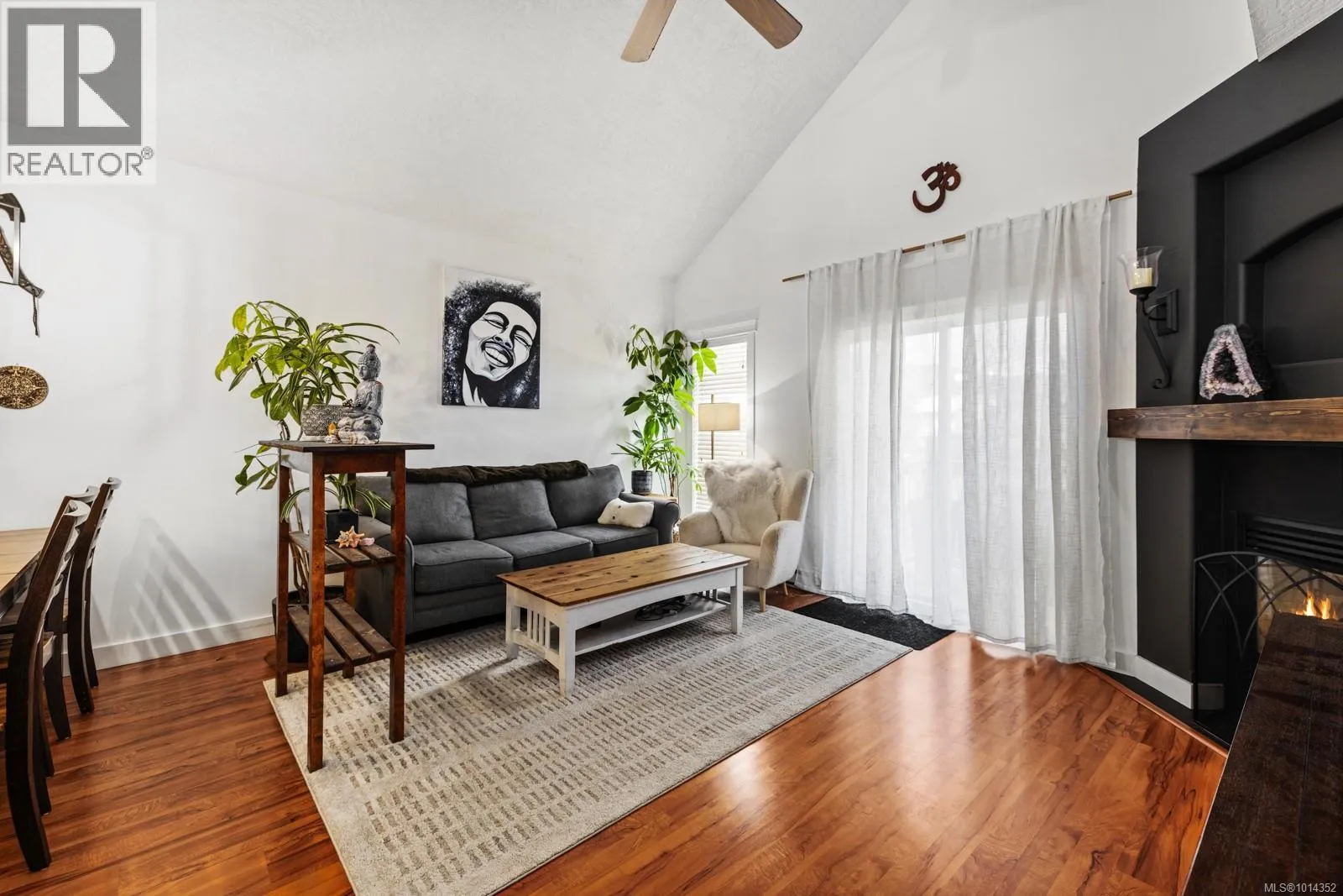 This updated townhouse combines modern style with everyday convenience. The main level features vaulted ceilings, a cozy gas fireplace with custom mantel, and a primary bedroom for easy main-floor living. The kitchen is both stylish and functional with a white tiled backsplash, new counters, updated stainless steel appliances, and dark accents balanced by fresh green tones. Upstairs offers two bedrooms and a loft-style family room overlooking the main level, while a 6-foot crawl space spanning the entirety of the floorplan, provides excellent storage. Bathrooms and paint have been refreshed throughout, making the home move-in ready. Ideally located in Duncan, youâre within walking distance to coffee shops, restaurants, The Oak pub, grocery stores, soccer fields, and Mount Prevost Elementary schoolâall while being minutes from trails and Holmes Creek. This home is priced below assessed value. (id:27476)