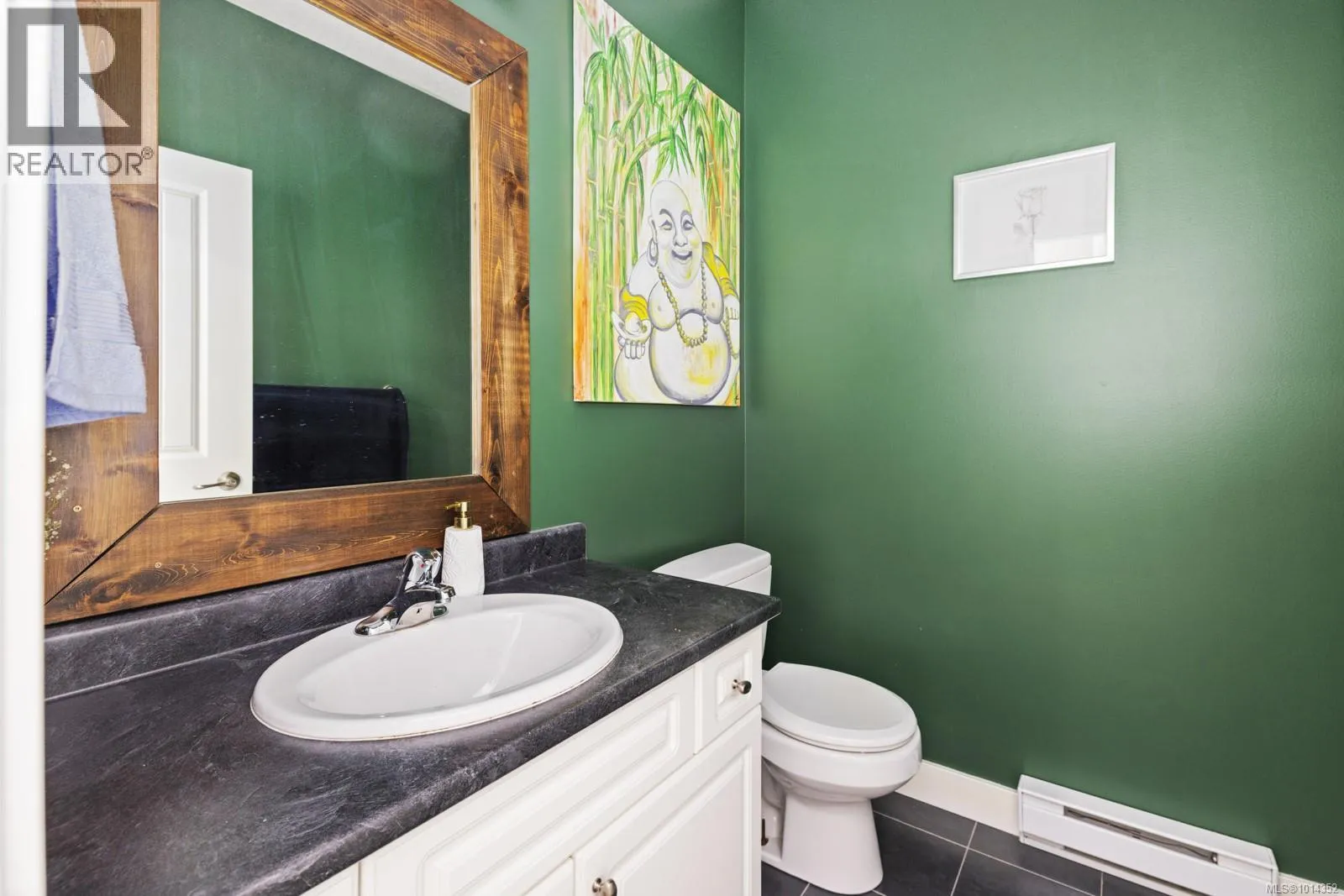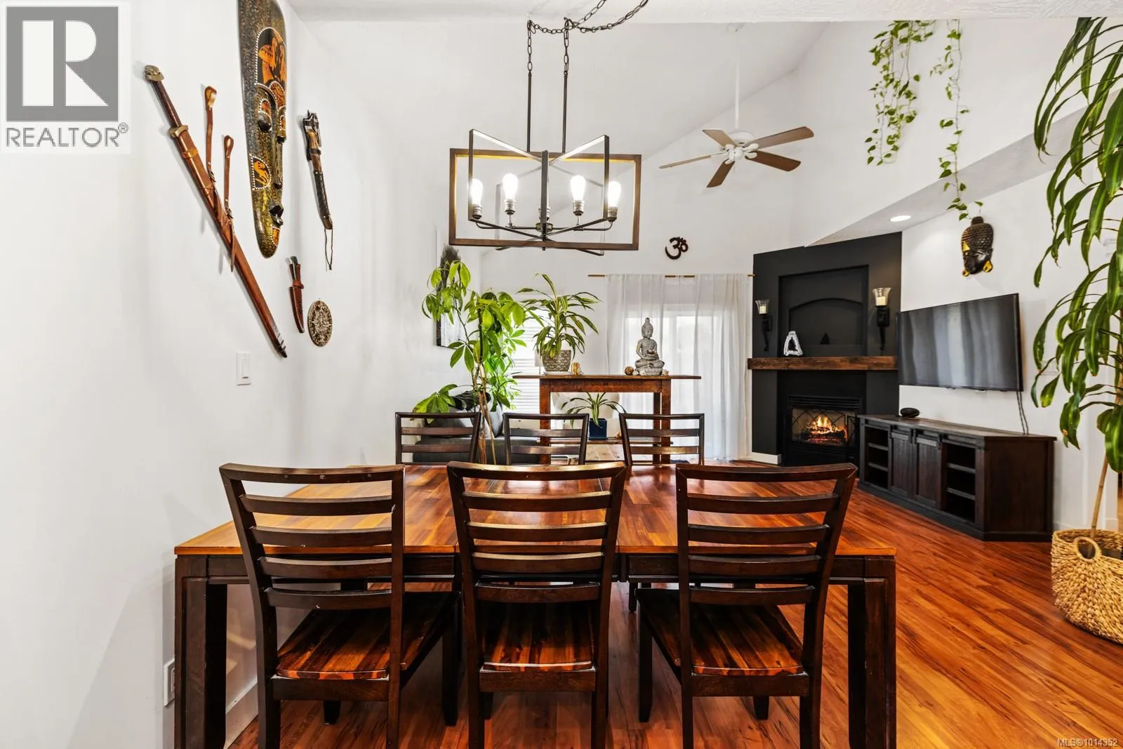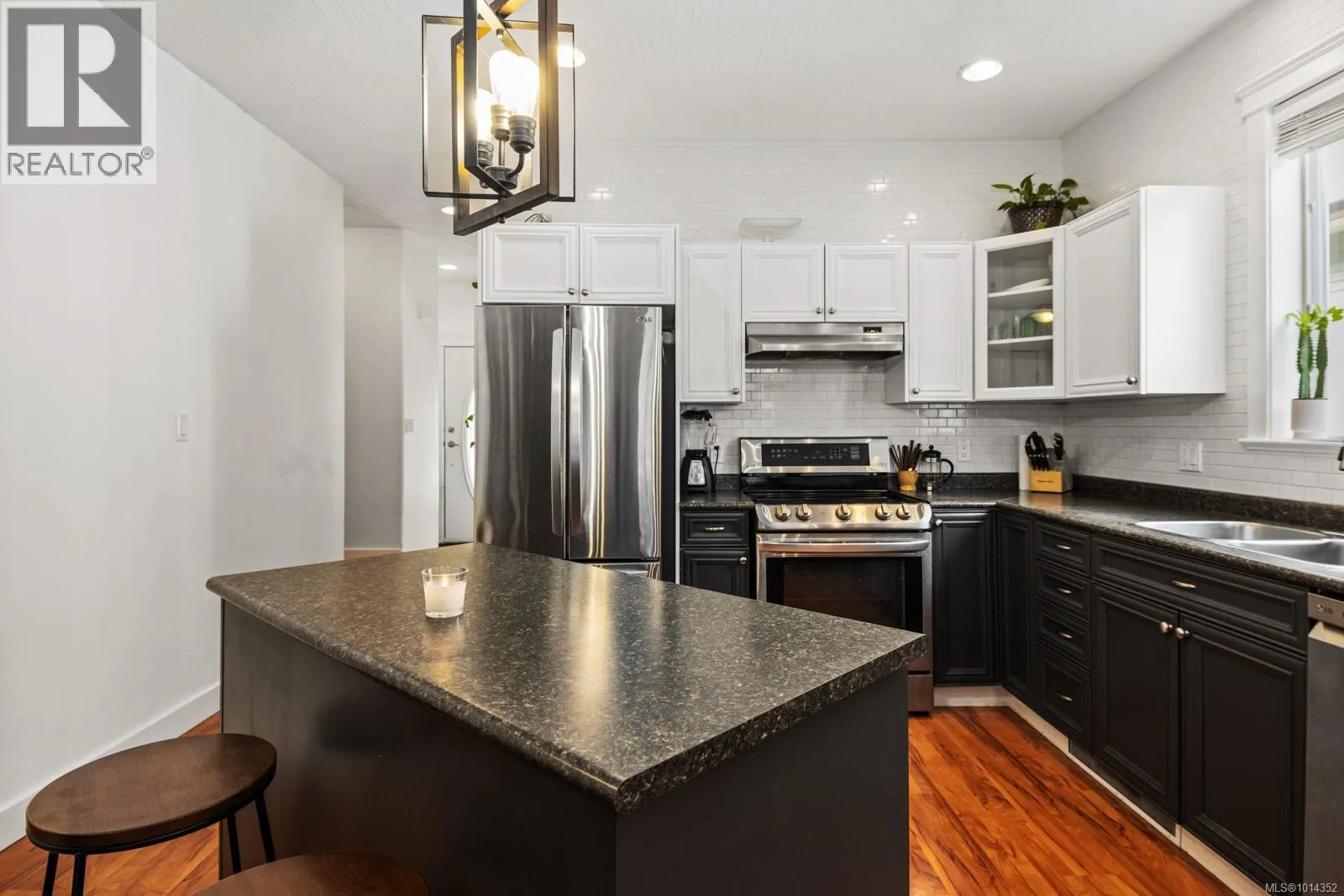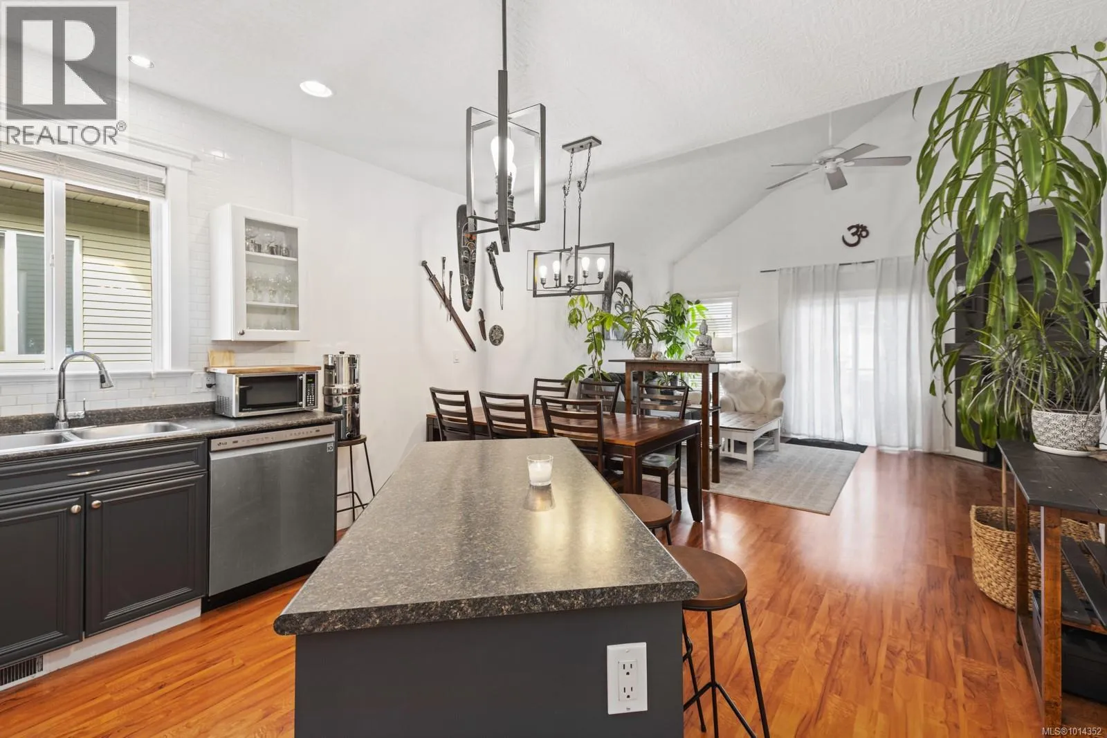 This updated townhouse combines modern style with everyday convenience. The main level features vaulted ceilings, a cozy gas fireplace with custom mantel, and a primary bedroom for easy main-floor living. The kitchen is both stylish and functional with a white tiled backsplash, new counters, updated stainless steel appliances, and dark accents balanced by fresh green tones. Upstairs offers two bedrooms and a loft-style family room overlooking the main level, while a 6-foot crawl space spanning the entirety of the floorplan, provides excellent storage. Bathrooms and paint have been refreshed throughout, making the home move-in ready. Ideally located in Duncan, youâre within walking distance to coffee shops, restaurants, The Oak pub, grocery stores, soccer fields, and Mount Prevost Elementary schoolâall while being minutes from trails and Holmes Creek. This home is priced below assessed value. (id:27476)
