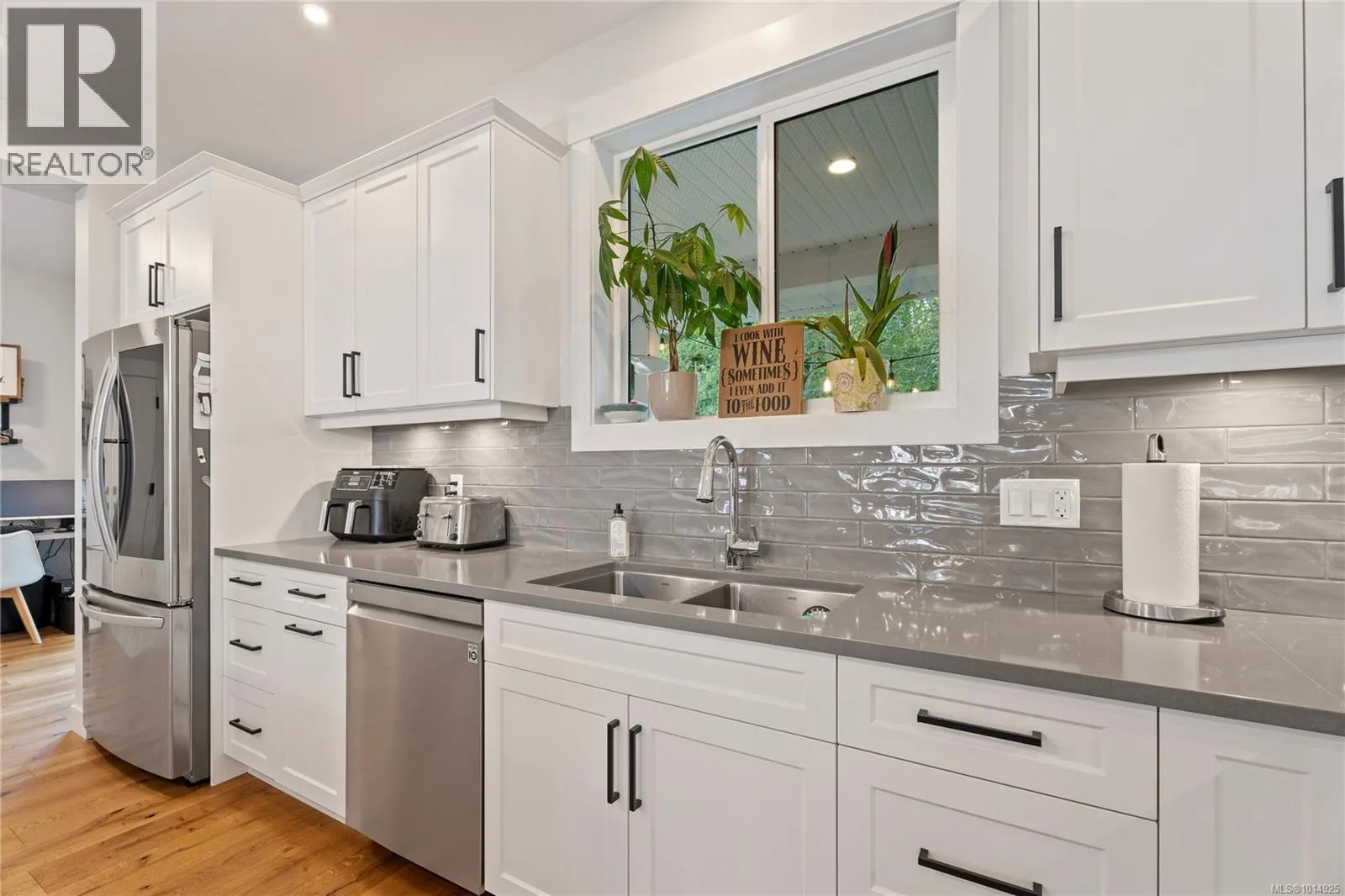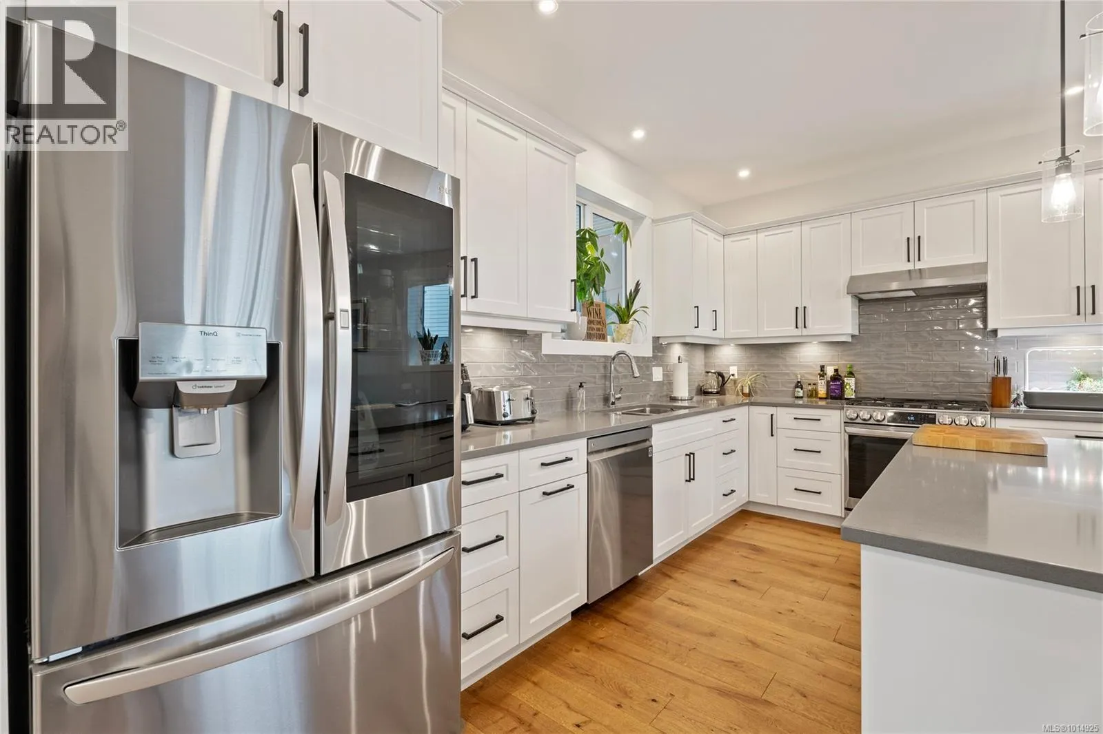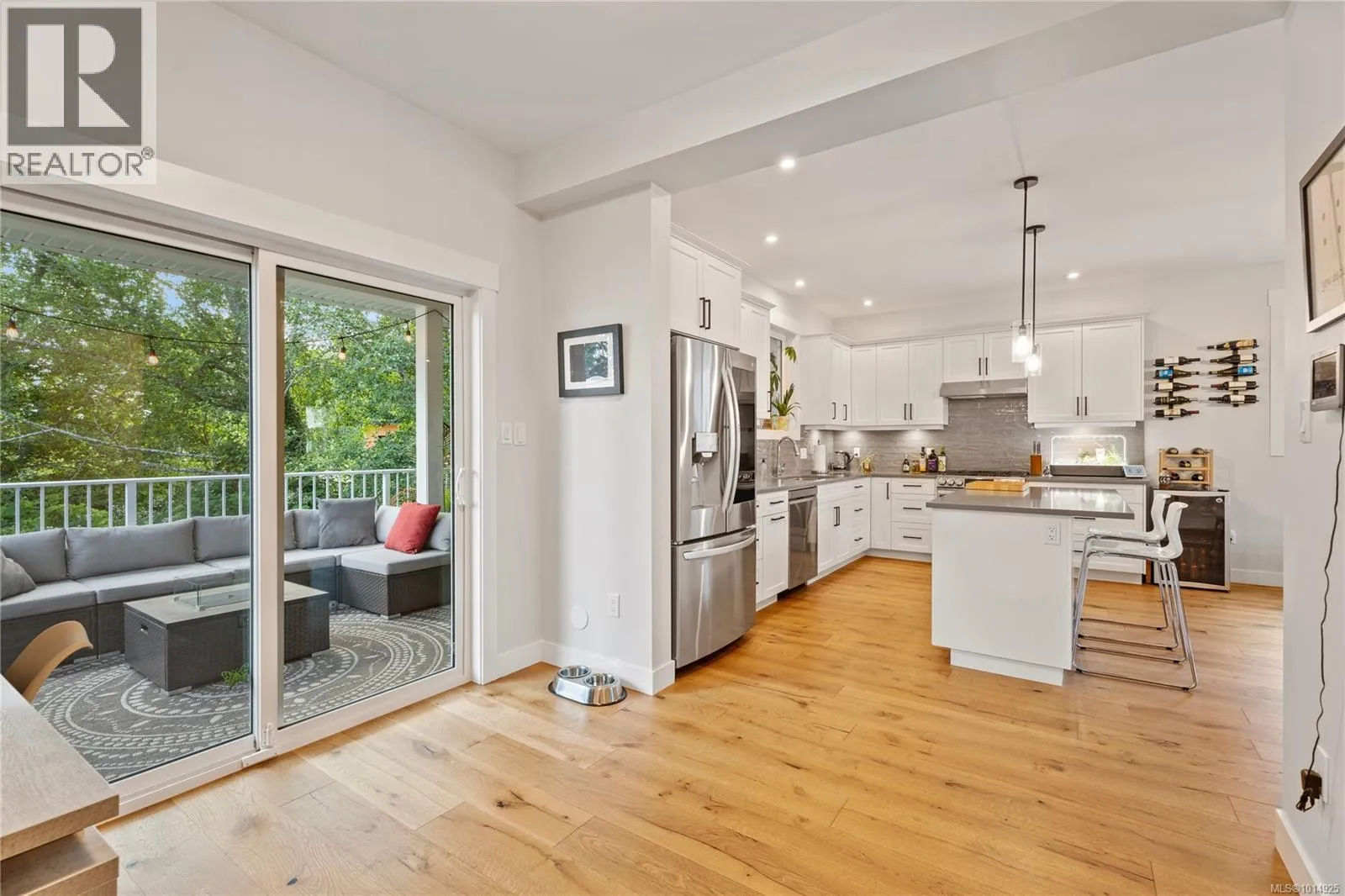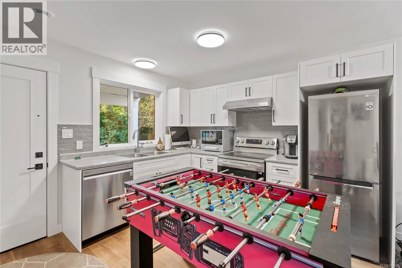 Superb home in a fantastic family-friendly neighbourhood! Located in the highly desirable Parkwalk subdivision at Maple Bay, this beautifully maintained 3-year-old home offers a perfect blend of style, space, functionality, & income potential. With 2,555 sq. ft. of finished living space, this 3-storey residence sits on a fully landscaped 0.19-acre lot that backs onto green space, offering excellent privacy & a peaceful natural setting. The main level features an open-concept design with 9â ceilings, wide plank engineered hardwood flooring, and a cozy natural gas fireplace. The spacious kitchen includes a large island with seating, full pantry, top-quality LG appliances including a natural gas range, and abundant cupboard and counter space. A 2-piece powder room adds convenience. Step through the sliding glass doors to a 26â x 10â covered deck with a natural gas BBQ hookupâperfect for year-round outdoor living. Upstairs are three well-sized bedrooms, a 5-piece shared bath, laundry area, and linen closet. The large primary bedroom offers a relaxing retreat with a 4-piece ensuite and a walk-in closet. A legal 1-bedroom suite on the lower level is ideal as a mortgage helper, in-law suite, or extended family space. It includes a full kitchen with nook, living area, 4-piece bath, & brand-new LG appliancesâready for rental or personal use. The extra-long garage provides space for a workshop & features 100 sq. ft. of overhead shelving plus a 240V EV plug. There's also RV parking & a foundation in place for a future shed or workshop. The front yard & hanging baskets are on an automatic irrigation system, and the yard is designed to be low-maintenance & easy care. Located just a 2-minute walk from Maple Bay Elementary School, sports fields, and pickleball/tennis courts, and a short drive to Maple Bay beaches, marinas, and downtown Duncan. Home warranty in place until 2032. A turn-key property in one of the Cowichan Valleyâs most sought-after neighbourhoods! (id:27476)