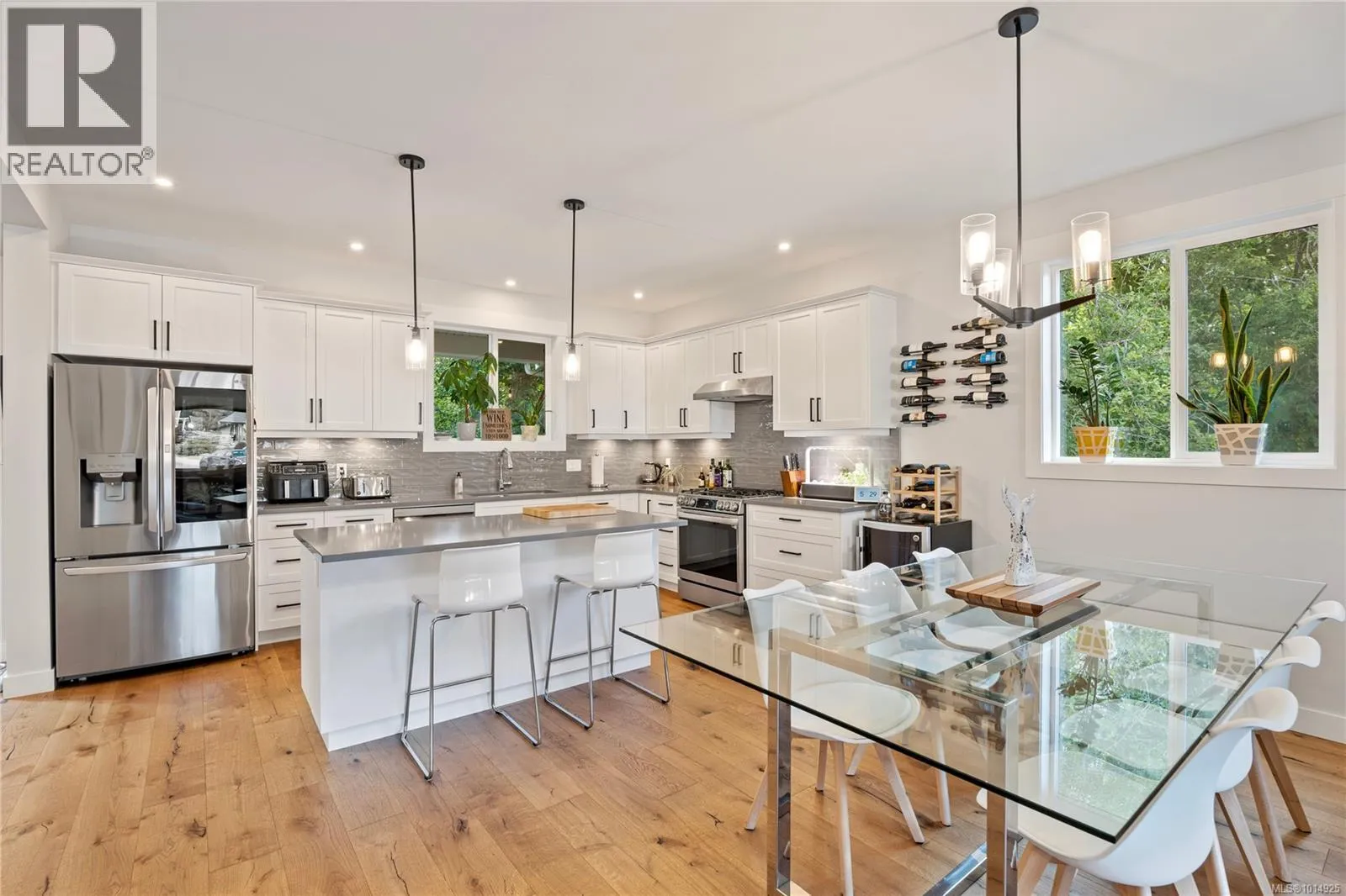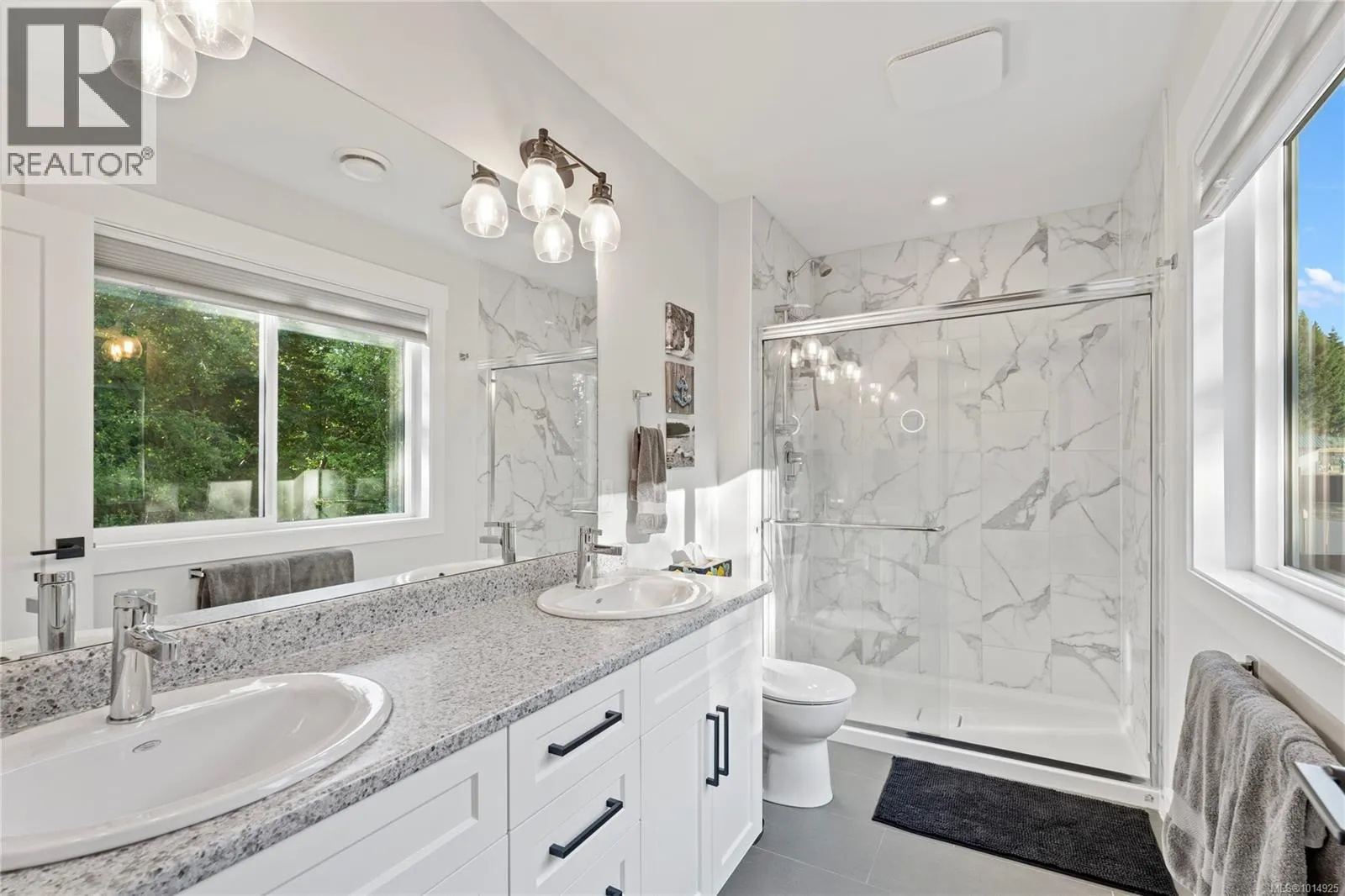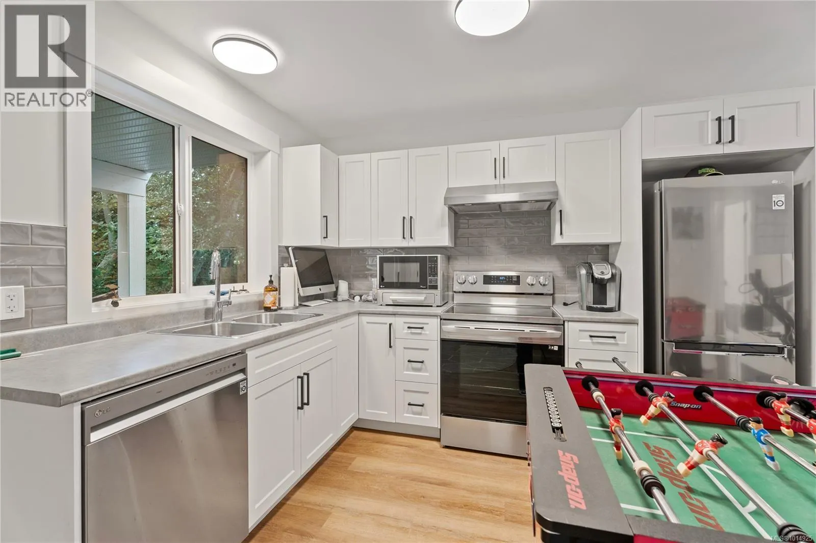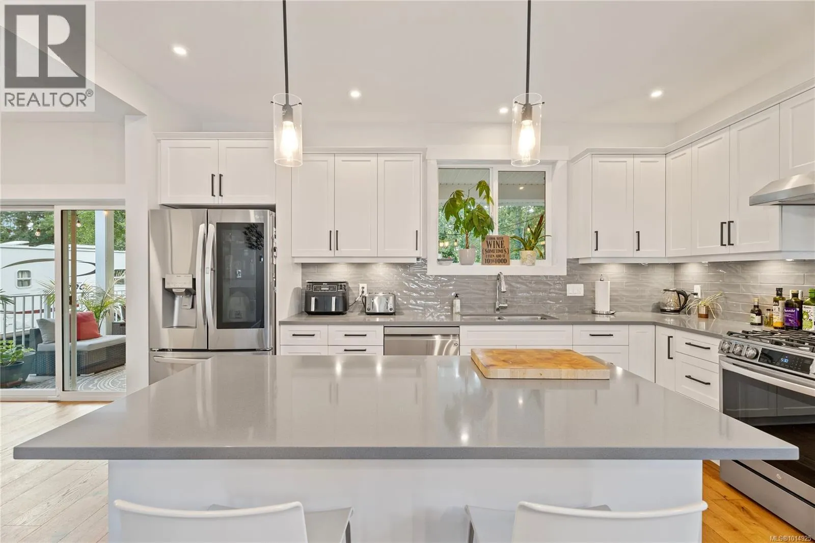 Superb home in a fantastic family-friendly neighbourhood! Located in the highly desirable Parkwalk subdivision at Maple Bay, this beautifully maintained 3-year-old home offers a perfect blend of style, space, functionality, & income potential. With 2,555 sq. ft. of finished living space, this 3-storey residence sits on a fully landscaped 0.19-acre lot that backs onto green space, offering excellent privacy & a peaceful natural setting. The main level features an open-concept design with 9â ceilings, wide plank engineered hardwood flooring, and a cozy natural gas fireplace. The spacious kitchen includes a large island with seating, full pantry, top-quality LG appliances including a natural gas range, and abundant cupboard and counter space. A 2-piece powder room adds convenience. Step through the sliding glass doors to a 26â x 10â covered deck with a natural gas BBQ hookupâperfect for year-round outdoor living. Upstairs are three well-sized bedrooms, a 5-piece shared bath, laundry area, and linen closet. The large primary bedroom offers a relaxing retreat with a 4-piece ensuite and a walk-in closet. A legal 1-bedroom suite on the lower level is ideal as a mortgage helper, in-law suite, or extended family space. It includes a full kitchen with nook, living area, 4-piece bath, & brand-new LG appliancesâready for rental or personal use. The extra-long garage provides space for a workshop & features 100 sq. ft. of overhead shelving plus a 240V EV plug. There's also RV parking & a foundation in place for a future shed or workshop. The front yard & hanging baskets are on an automatic irrigation system, and the yard is designed to be low-maintenance & easy care. Located just a 2-minute walk from Maple Bay Elementary School, sports fields, and pickleball/tennis courts, and a short drive to Maple Bay beaches, marinas, and downtown Duncan. Home warranty in place until 2032. A turn-key property in one of the Cowichan Valleyâs most sought-after neighbourhoods! (id:27476)