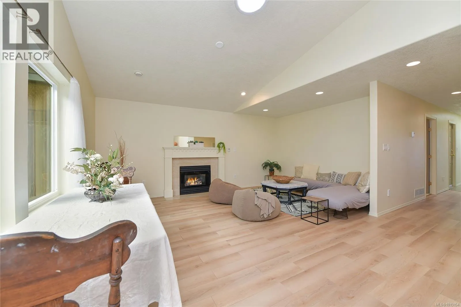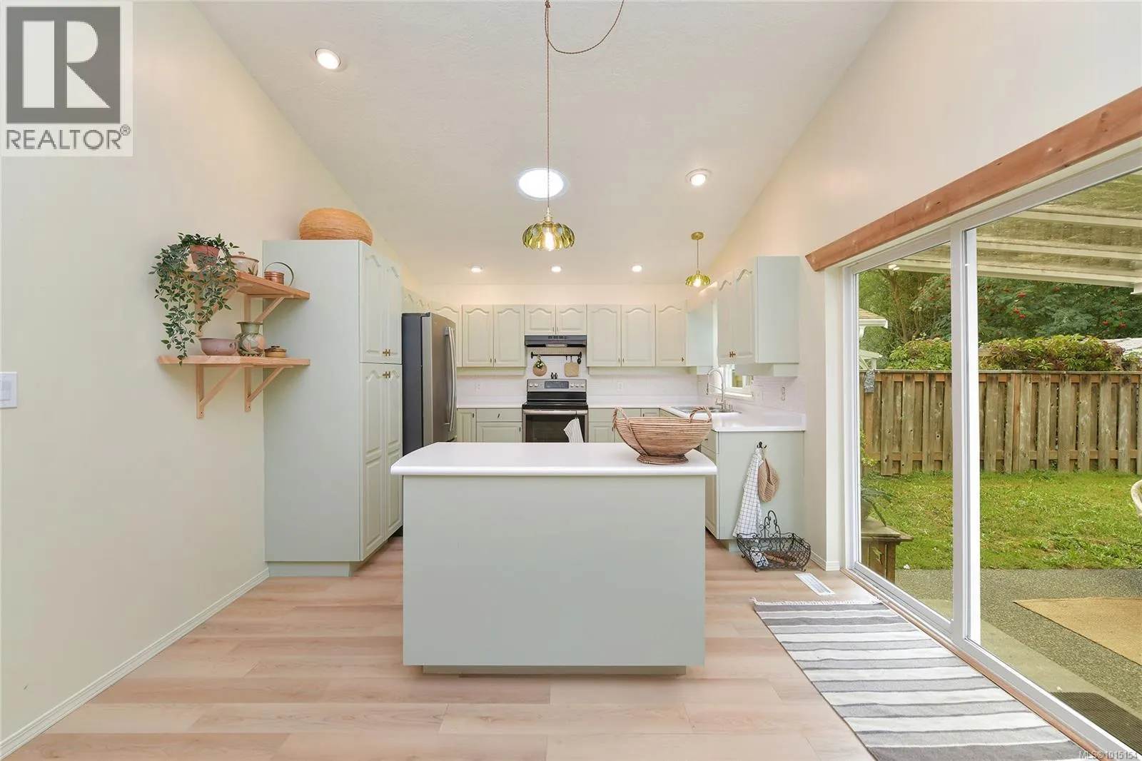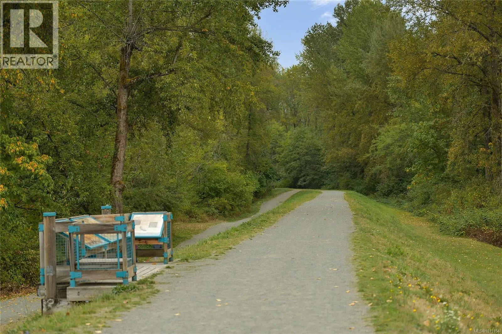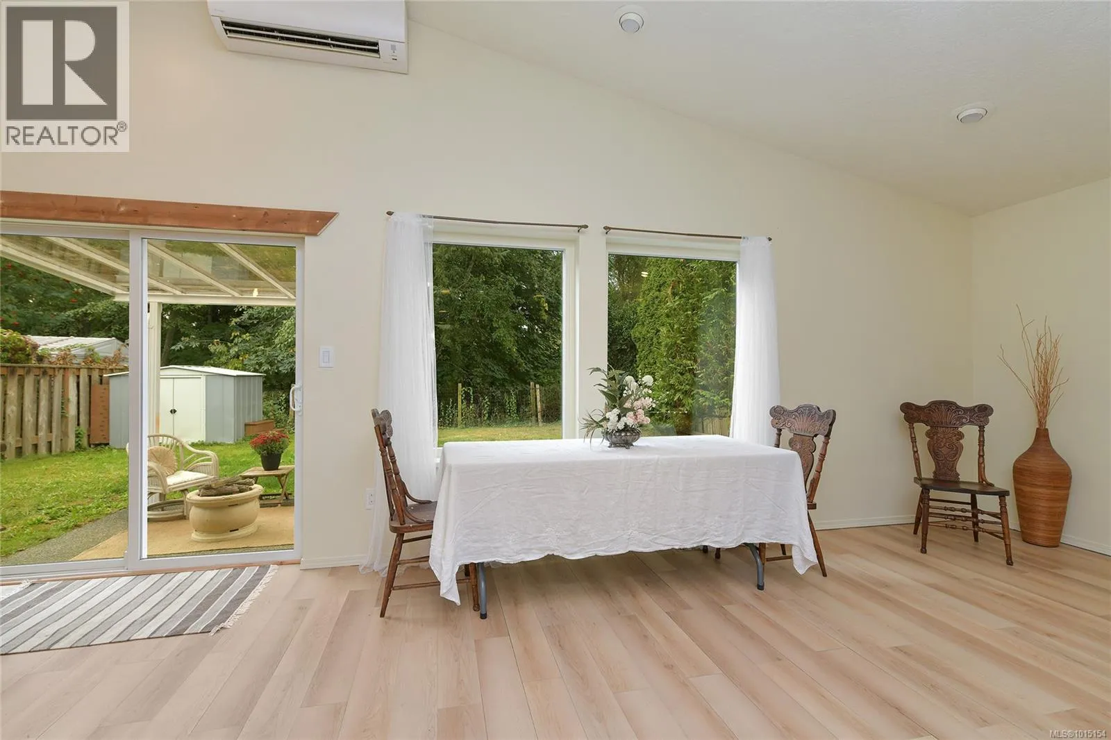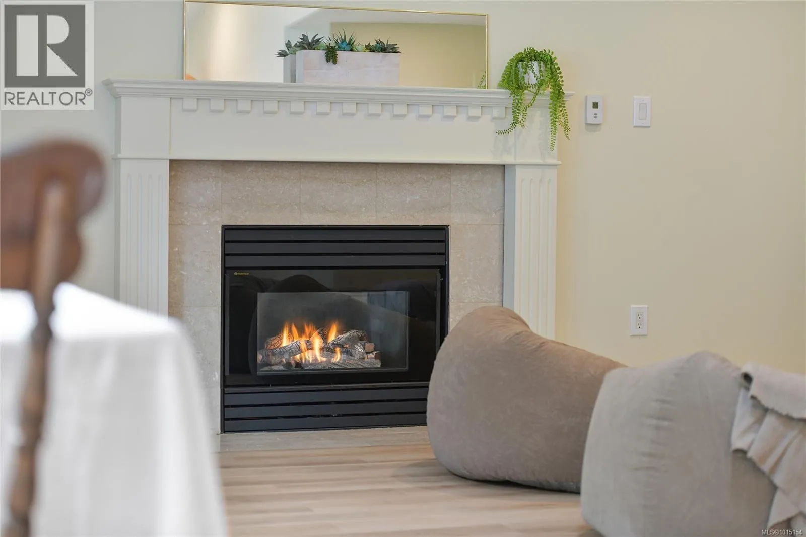 NEW PRICE! Welcome to this fantastic, move-in-ready rancher on a quiet cul-de-sac, central to all amenities. This home has been completely refreshed with new flooring throughout, new bathroom and kitchen fixtures, new lighting, and paint. Upgrades include a newer roof, vinyl windows, and a ductless electric heat pump for heating and cooling. The spacious primary bedroom features beautiful bay windows, a full ensuite bathroom, and a walk-in closet. There is a second bedroom as well as a den/office or third bedroom with laundry and extra storage. Enjoy the modern, open-concept kitchen, dining, and living areas with vaulted ceilings, loads of natural light, and a cozy propane fireplace. The private, sunny, peaceful, and easy-care backyard with a covered patio backs onto a forested area and parkland with tennis courts and walking trails. There are only 5 homes in this quiet 55+ strata, with only a shared roadway. Quick possession for this truly special offering! (id:27476)