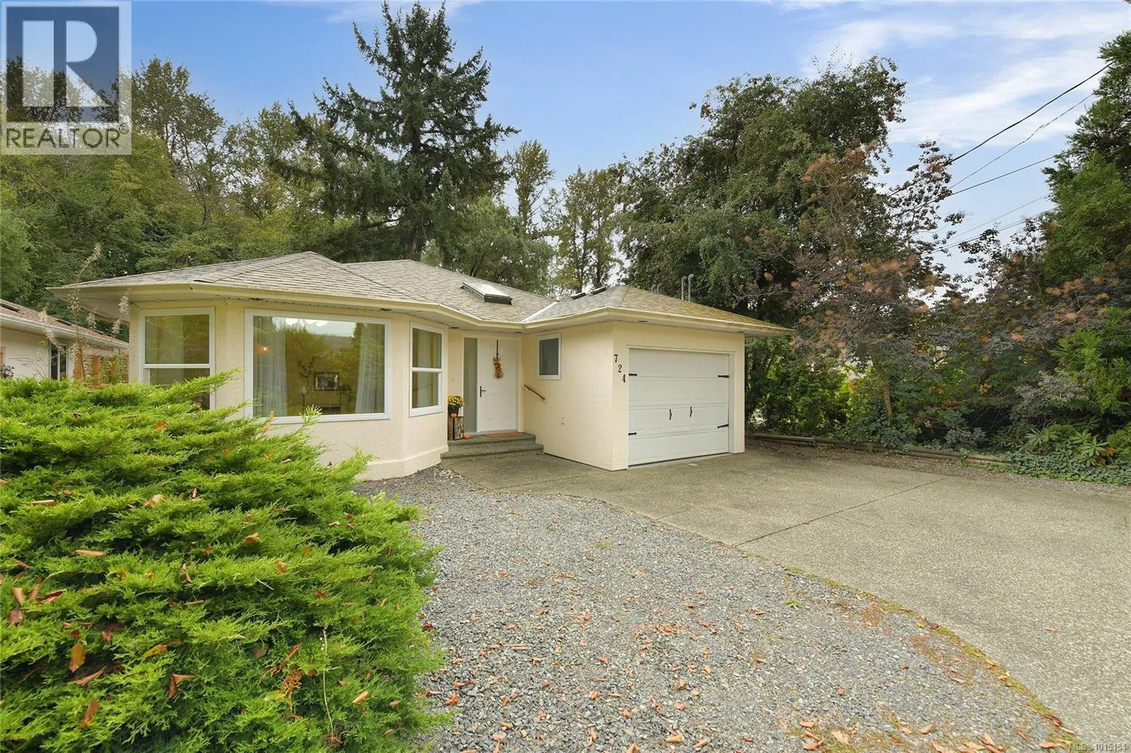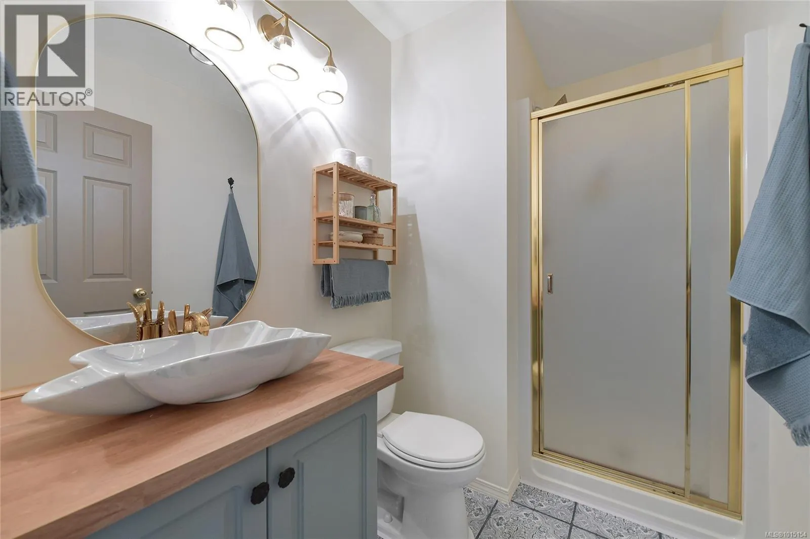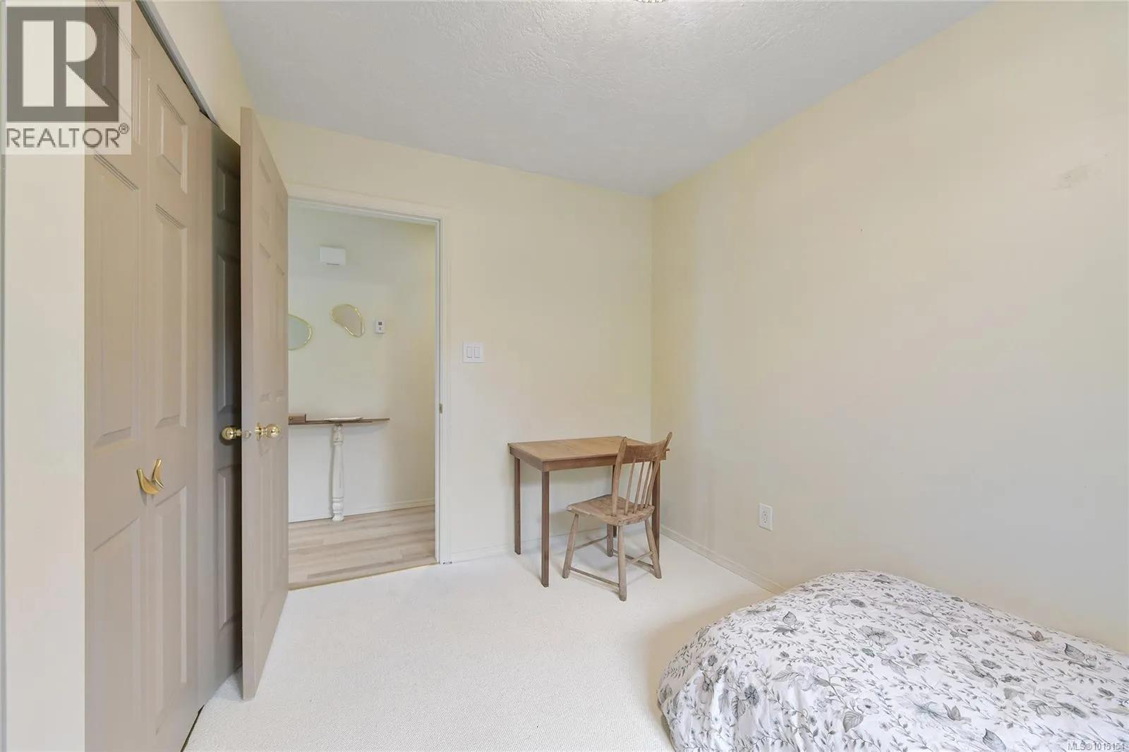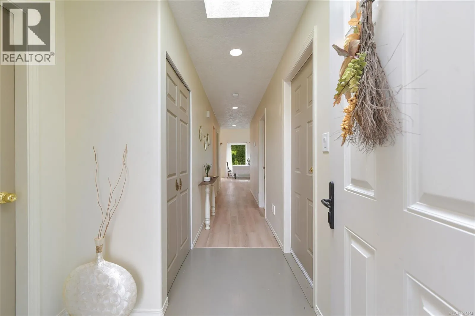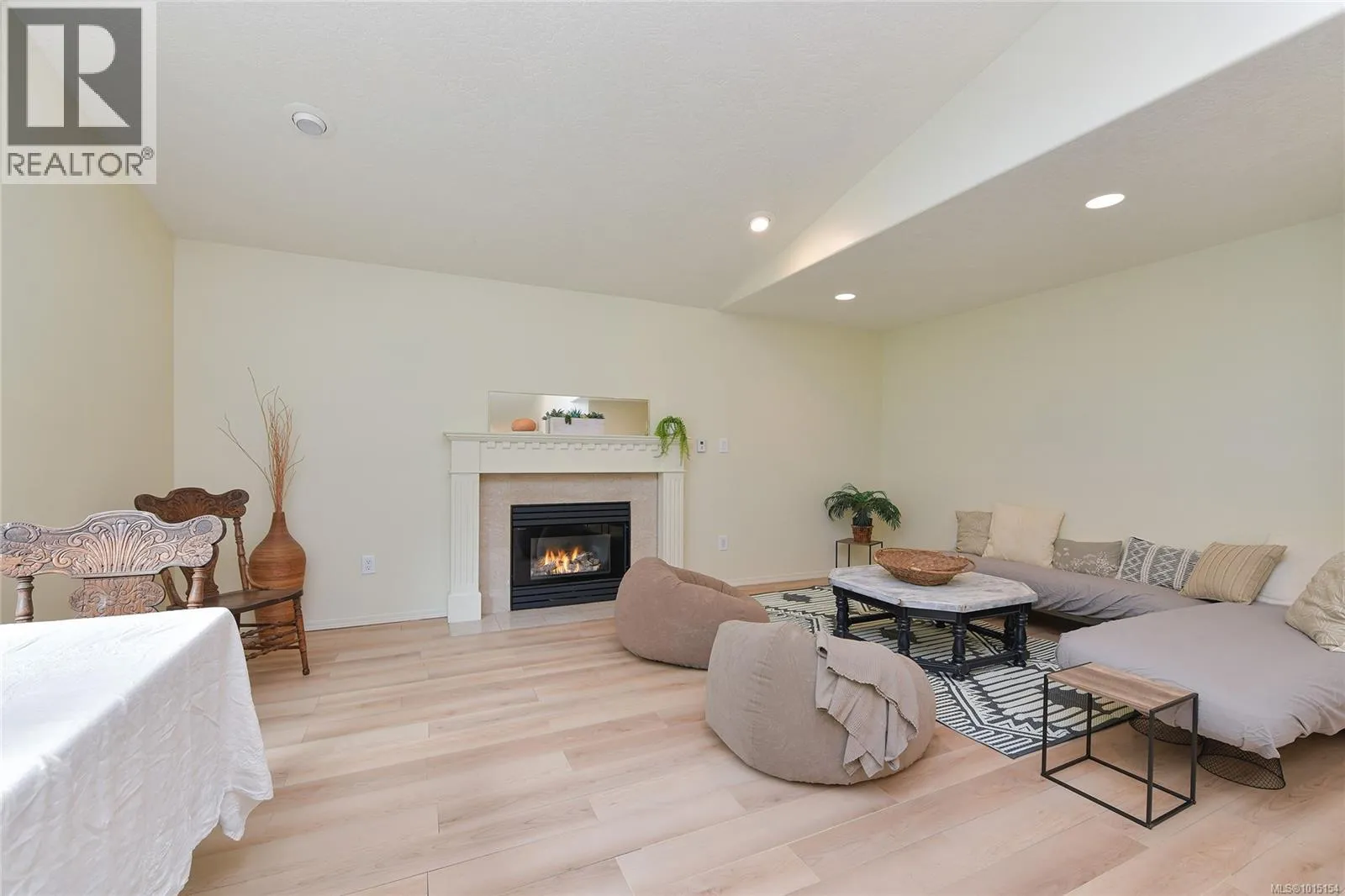 NEW PRICE! Welcome to this fantastic, move-in-ready rancher on a quiet cul-de-sac, central to all amenities. This home has been completely refreshed with new flooring throughout, new bathroom and kitchen fixtures, new lighting, and paint. Upgrades include a newer roof, vinyl windows, and a ductless electric heat pump for heating and cooling. The spacious primary bedroom features beautiful bay windows, a full ensuite bathroom, and a walk-in closet. There is a second bedroom as well as a den/office or third bedroom with laundry and extra storage. Enjoy the modern, open-concept kitchen, dining, and living areas with vaulted ceilings, loads of natural light, and a cozy propane fireplace. The private, sunny, peaceful, and easy-care backyard with a covered patio backs onto a forested area and parkland with tennis courts and walking trails. There are only 5 homes in this quiet 55+ strata, with only a shared roadway. Quick possession for this truly special offering! (id:27476)
