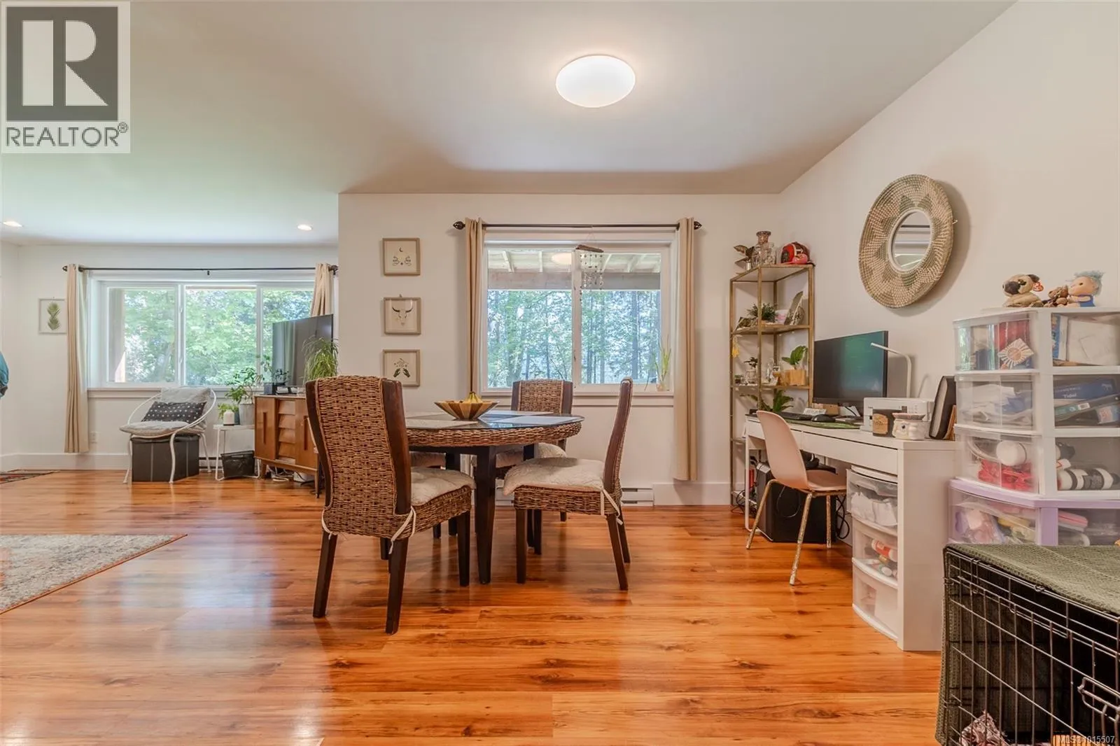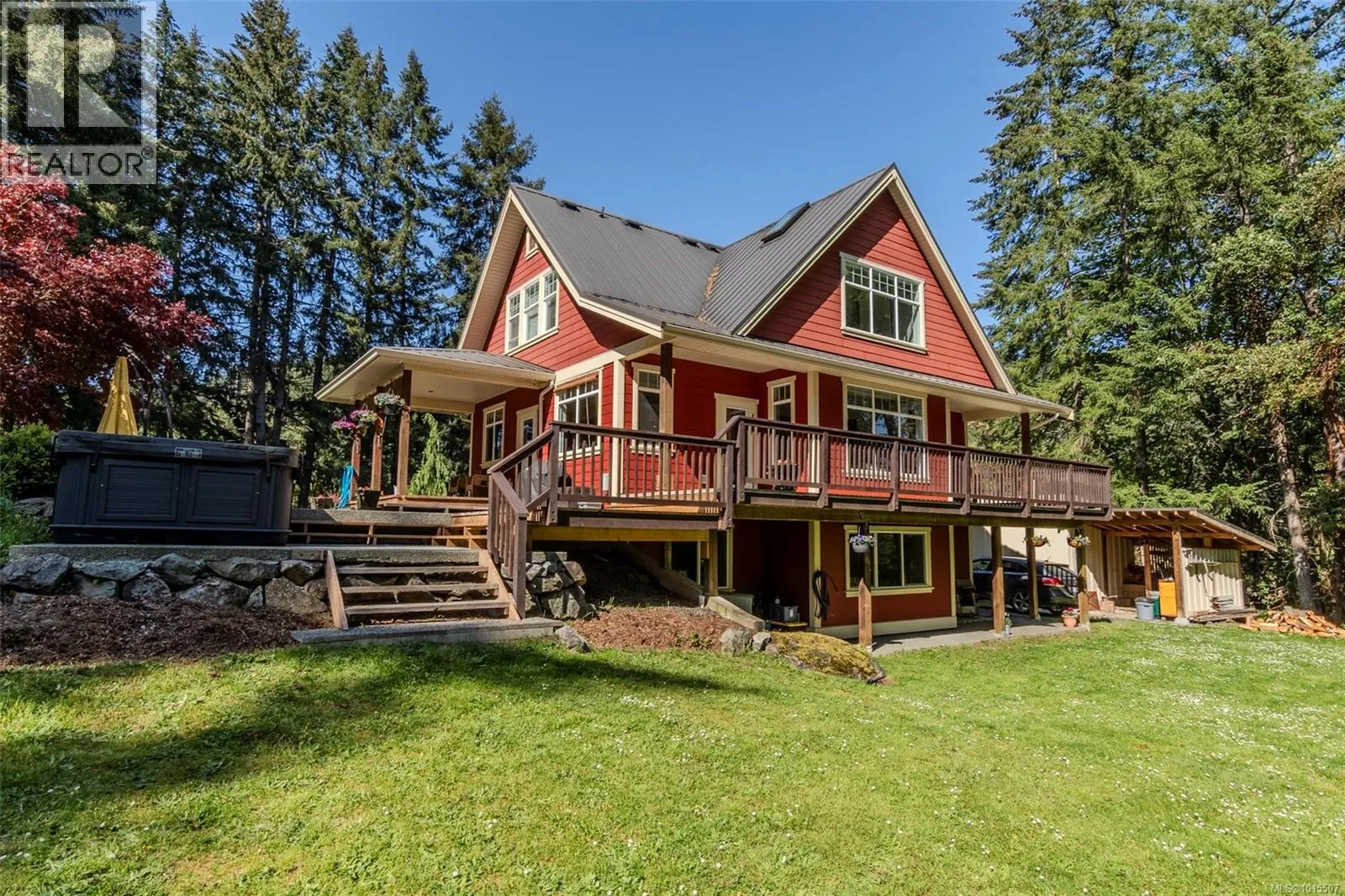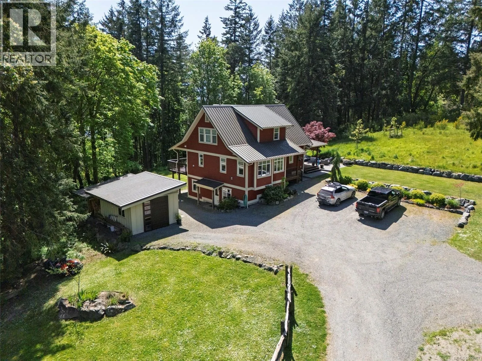 Tucked away on a private 3-acre lot in beautiful Maple Bay, this 3-bedroom, 3-bathroom home plus a 1-bedroom suite offers comfort, flexibility, and outdoor lifestyle. The main level features a bright, open-concept layout where the kitchen, dining, and living areas flow together seamlessly. The living room is warm and welcoming with built-in shelving and a cozy woodstove set in a striking stone surround. The spacious primary bedroom is located on the main floor and includes a full ensuite with a soaker tub and stand-up shower. Upstairs offers a great family hangout area and two additional bedrooms. The large patio is perfect for entertaining or enjoying the peaceful natural surroundings. The self-contained 1-bedroom, 1-bathroom suite includes a private entrance, kitchen, and laundryâideal for guests, extended family, or added income. Located just steps to hiking and biking trails and only minutes to Maple Bay Beach, with plenty of parking for vehicles, RVs, and toys. (id:27476)