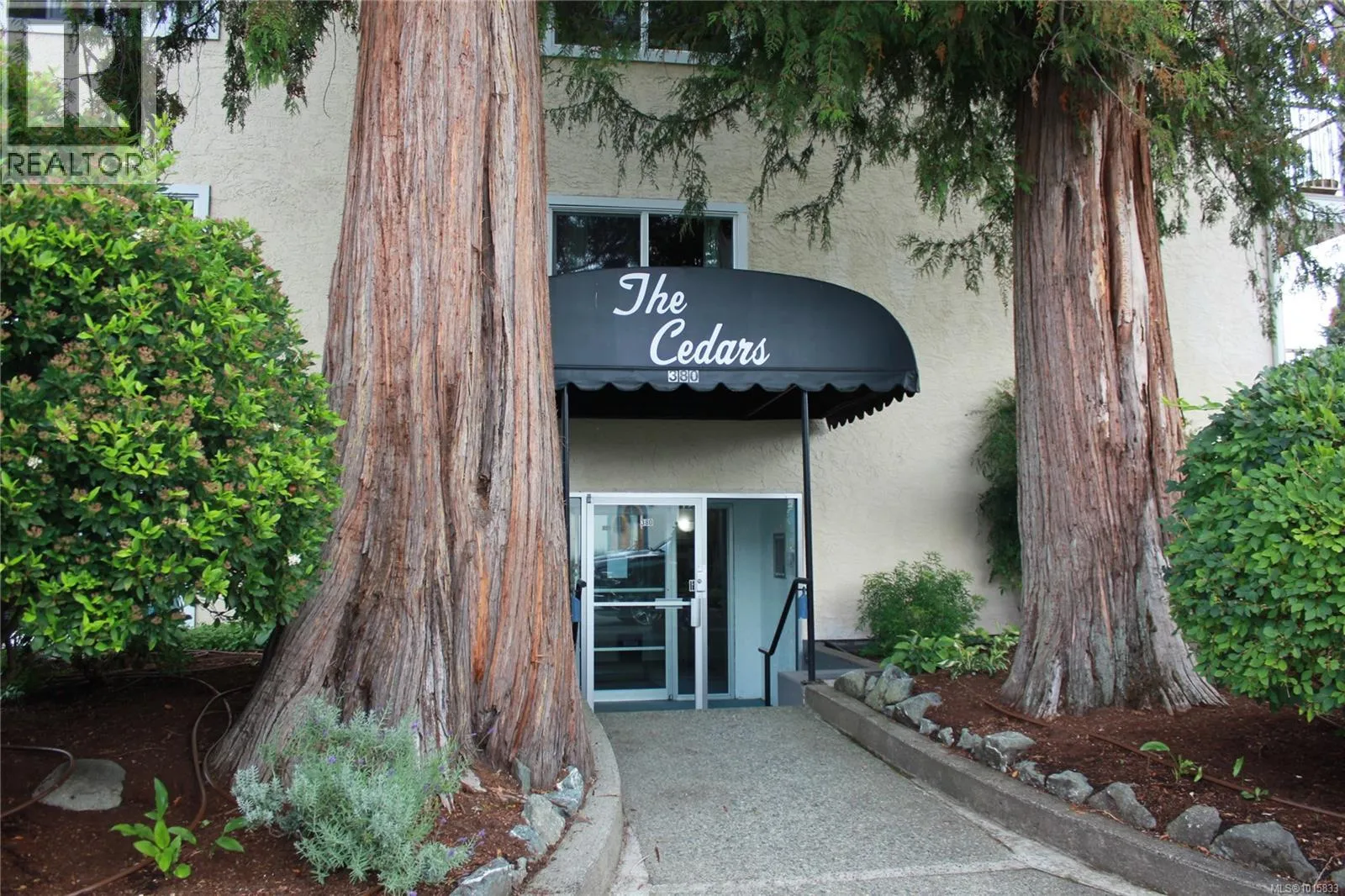 Welcome to The Cedars! This condo building is located centrally in downtown Duncan, within walking distance of all amenities and has amazing views of the mountains. A fantastic 2 bedroom/2 bath unit, it has good-sized rooms, a storage closet in unit and a separate storage too. With some updating this unit would shine and be a comfortable home for new home buyers to enter the market or for those looking to downsize. The building has secure entry, elevator, and laundry is shared. A truly great opportunity. Units in this building don't come on the market too often, so don't miss viewing it soon! (id:27476)
