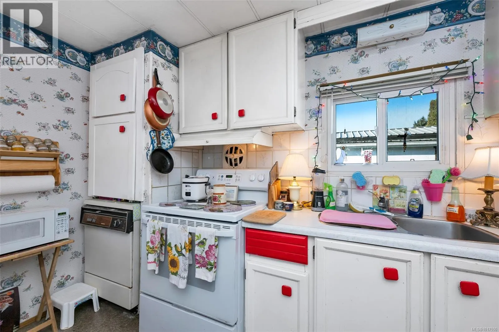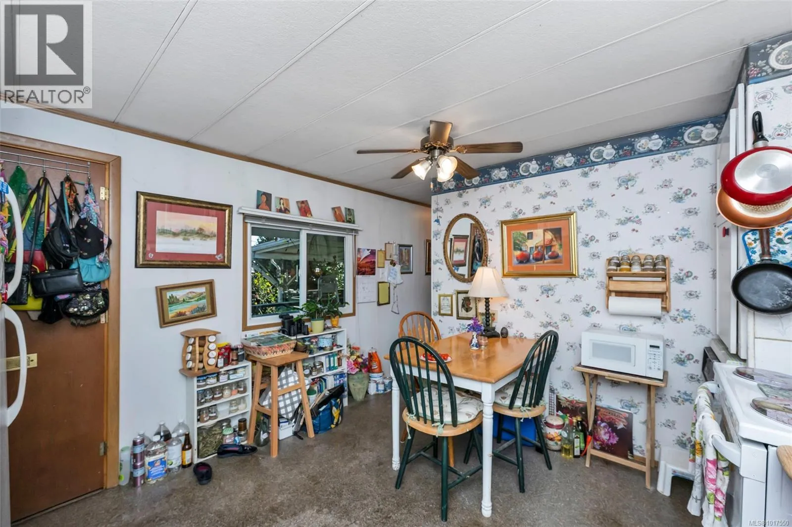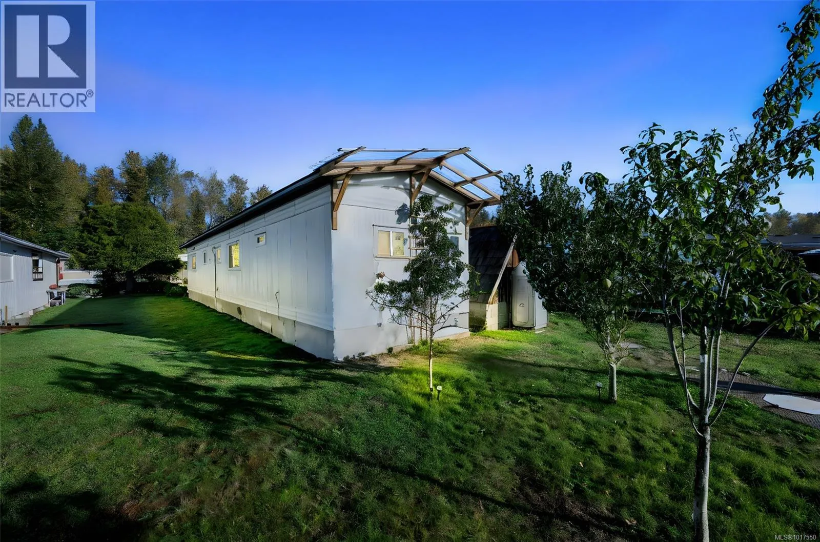 Welcome to this well-maintained 2-bedroom, 1-bathroom home located in a quiet and friendly 55+ park. Featuring a spacious 4-piece bathroom and convenient in-unit laundry, this home offers comfort and functionality throughout. The well-appointed kitchen flows into a bright living area highlighted by beautiful bay windows, bringing in plenty of natural light. Step outside onto a generous front deck â perfect for relaxing or entertaining. The backyard offers a storage shed for all your tools and a lovely selection of fruit trees for those who enjoy gardening or fresh produce. Please note: This park does not allow rentals or pets, ensuring a peaceful environment for all residents. Don't miss this opportunity to enjoy affordable living in a great community! (id:27476)
