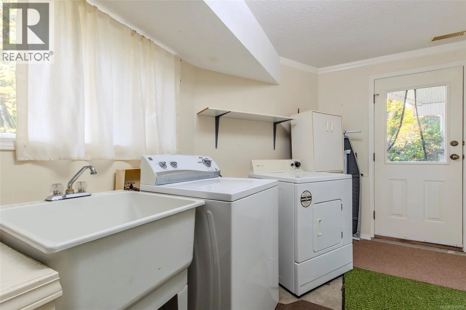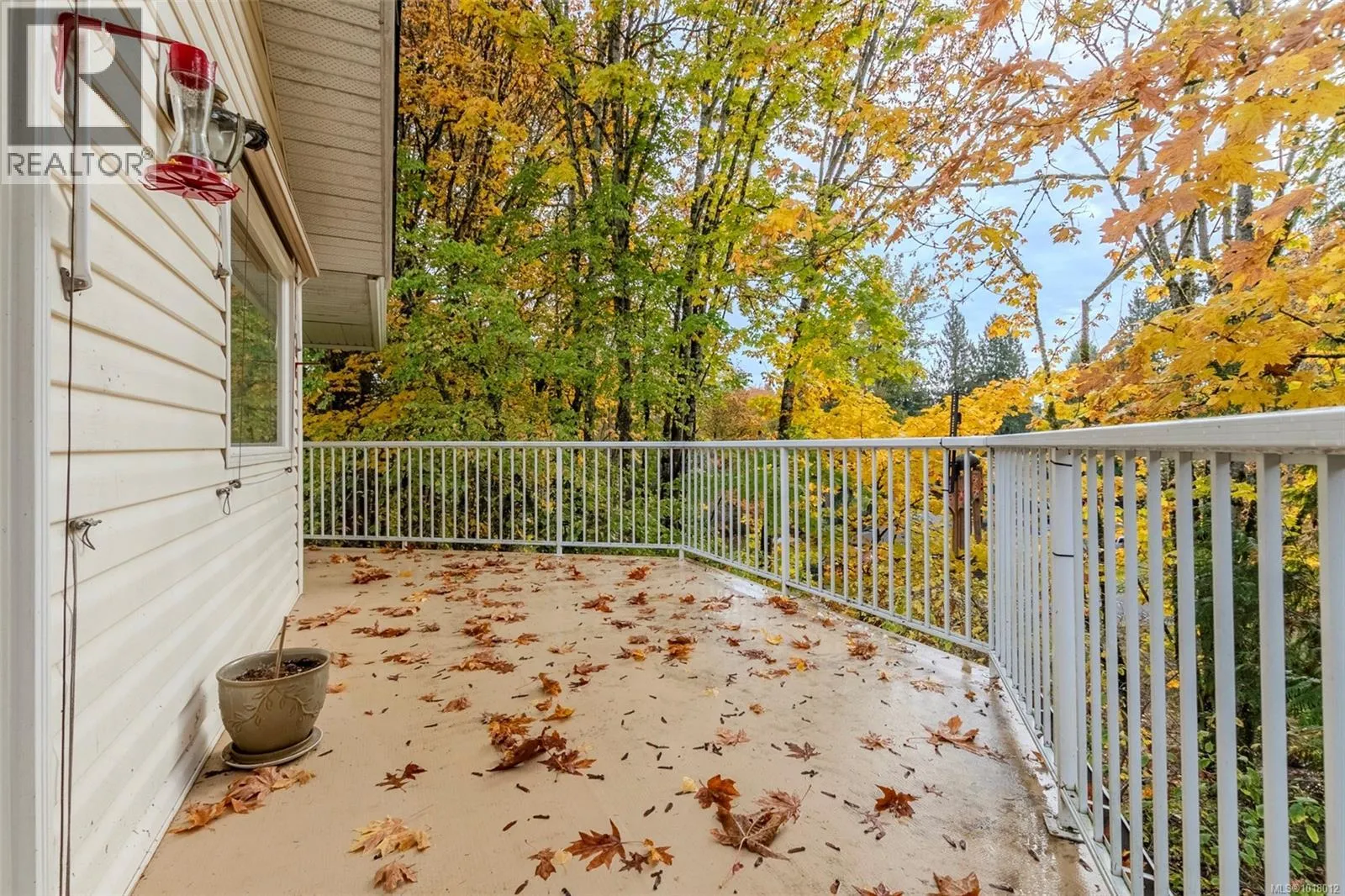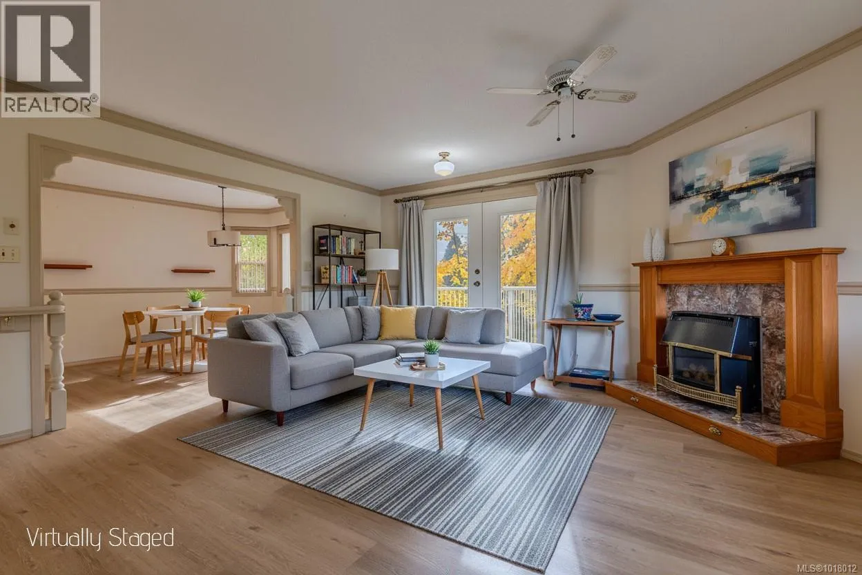 Welcome to this well maintained home located at the end of a quiet cul-de-sac in Holmes Creek, 55+, gated, community. Offering just over 2,000 sq.ft. of finished living space, this charming residence backs onto the scenic Cowichan Valley Trail and offers a peaceful, natural setting with views of trees and nearby creeks. The main level features a spacious primary bedroom complete with a 4-piece ensuite, a bright kitchen and dining area, and a cozy living room with a gas fireplace. Double doors lead out to a private deck. A natural gas furnace provides efficient heating throughout the home. Downstairs, youâll find a generous rec room, an additional bedroom, a laundry room, and ample storage space. The double garage offers plenty of parking and extra storage, and there's even a handy storage shed in the backyard. Enjoy the quiet, nature-filled surroundings while being just minutes from local amenities. This is the perfect downsizing opportunity in a welcoming community. (id:27476)