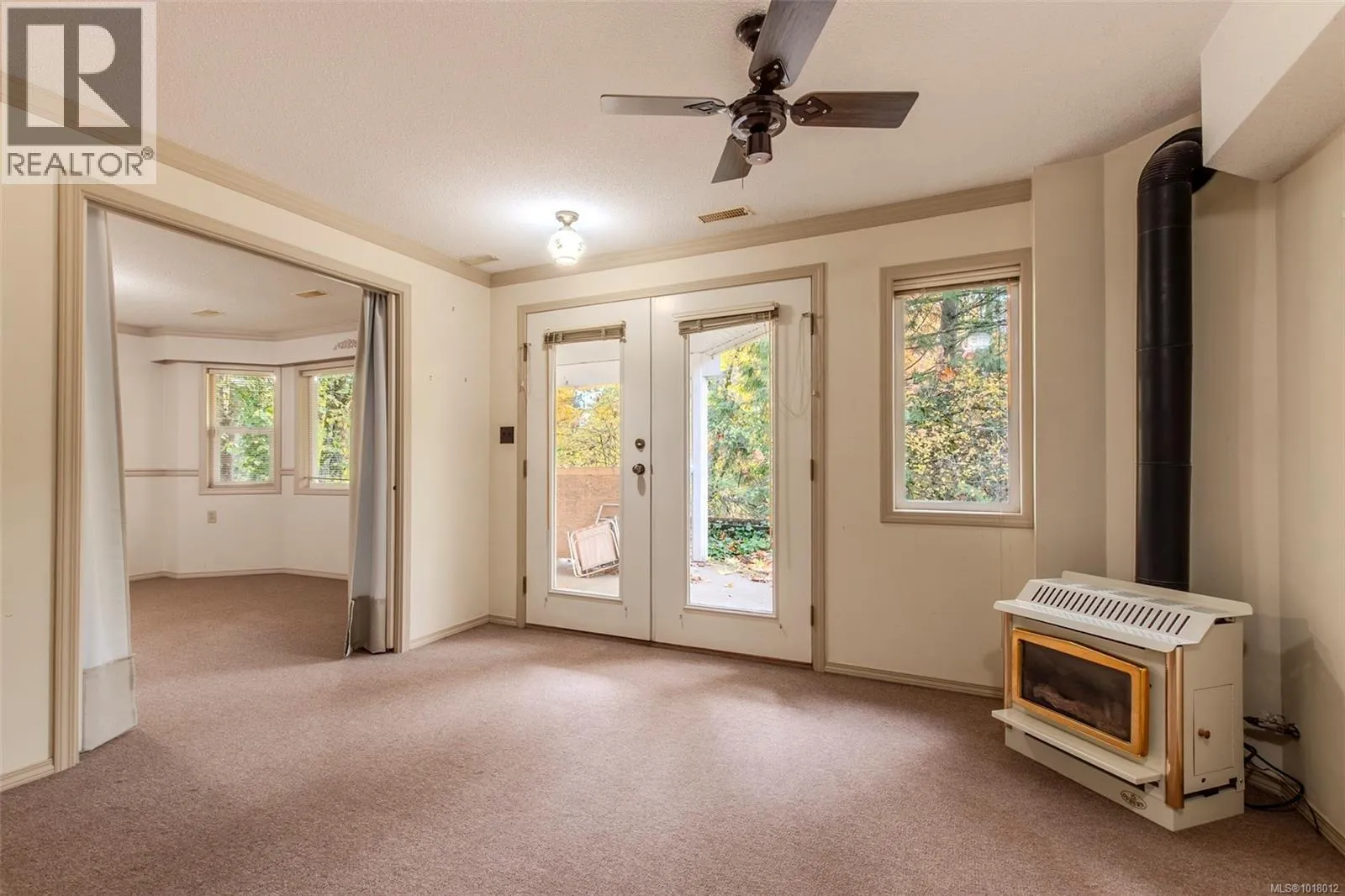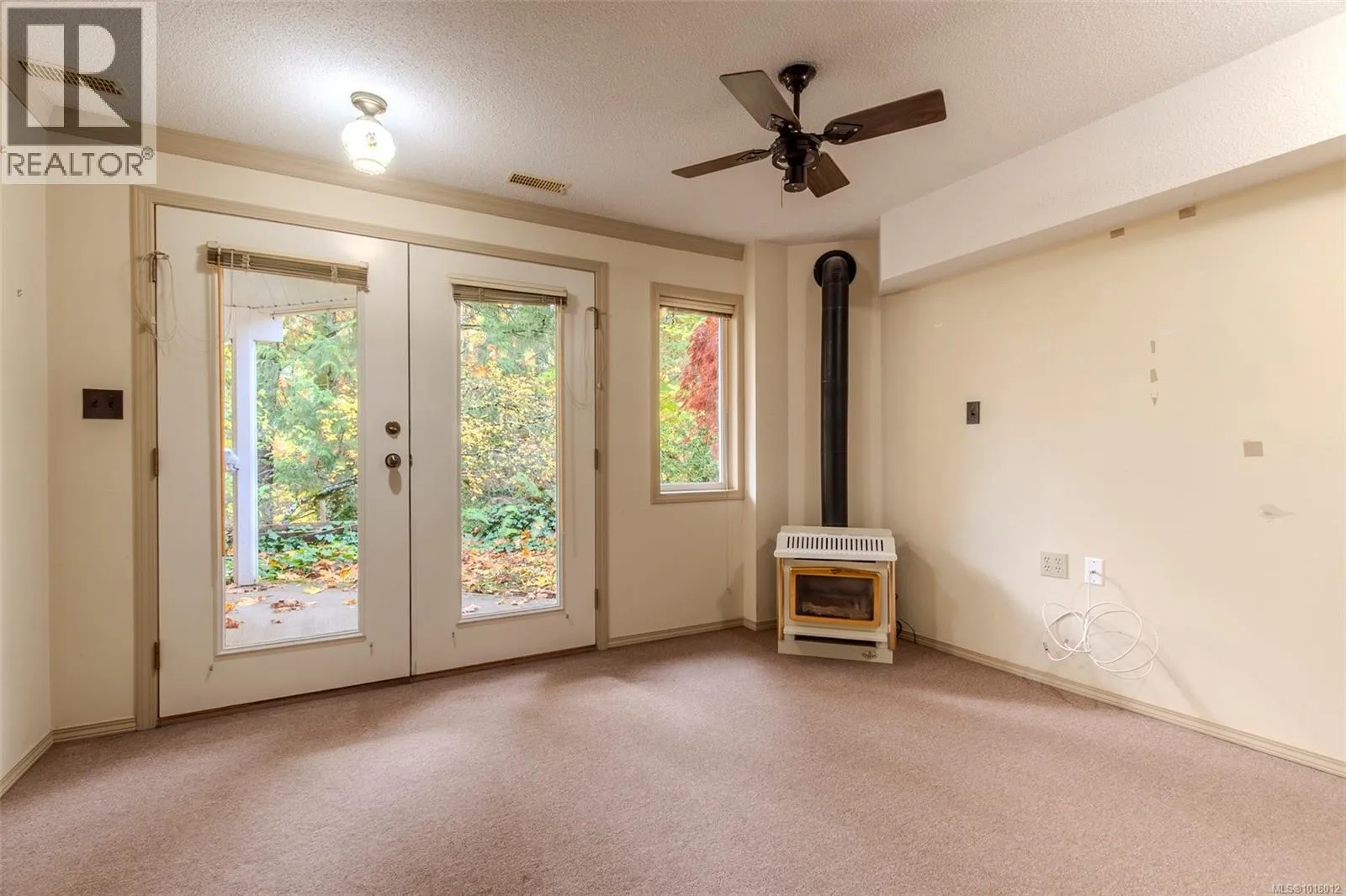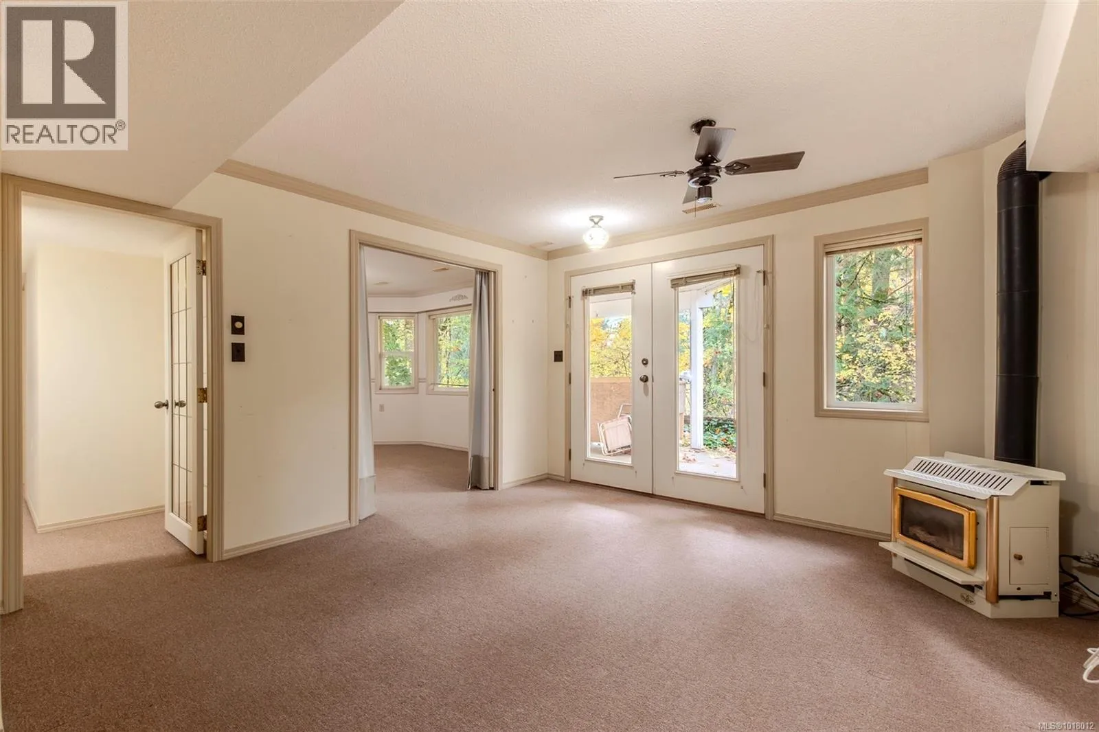 Welcome to this well maintained home located at the end of a quiet cul-de-sac in Holmes Creek, 55+, gated, community. Offering just over 2,000 sq.ft. of finished living space, this charming residence backs onto the scenic Cowichan Valley Trail and offers a peaceful, natural setting with views of trees and nearby creeks. The main level features a spacious primary bedroom complete with a 4-piece ensuite, a bright kitchen and dining area, and a cozy living room with a gas fireplace. Double doors lead out to a private deck. A natural gas furnace provides efficient heating throughout the home. Downstairs, youâll find a generous rec room, an additional bedroom, a laundry room, and ample storage space. The double garage offers plenty of parking and extra storage, and there's even a handy storage shed in the backyard. Enjoy the quiet, nature-filled surroundings while being just minutes from local amenities. This is the perfect downsizing opportunity in a welcoming community. (id:27476)