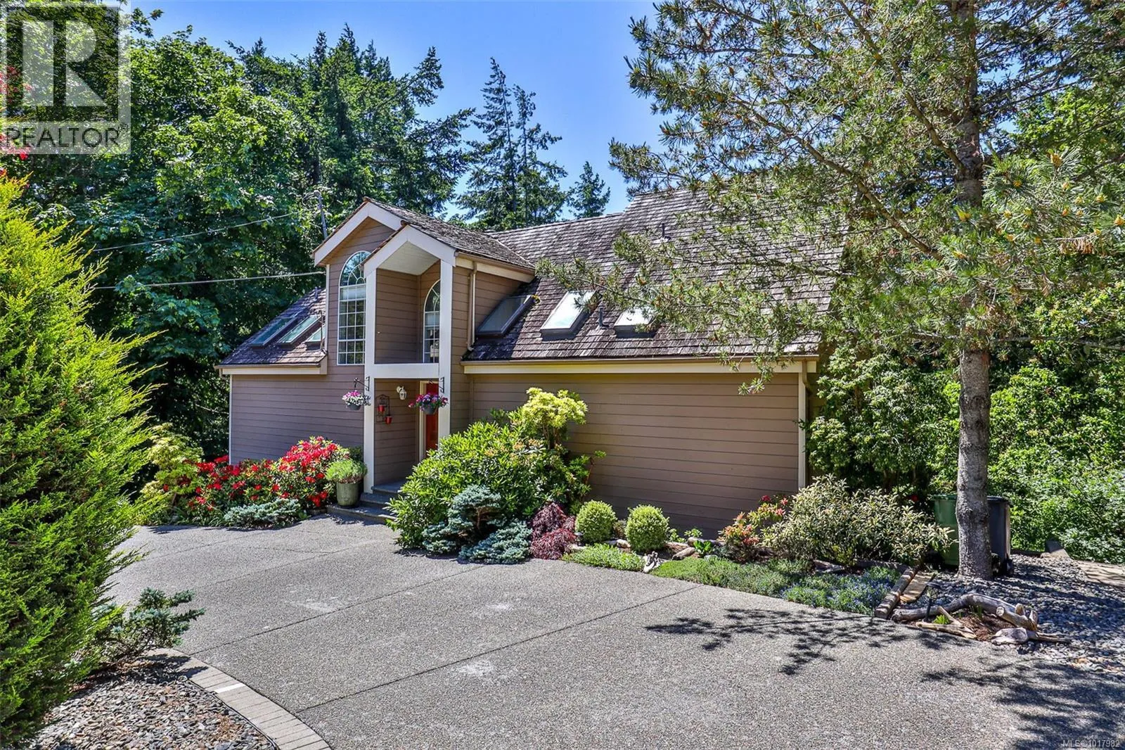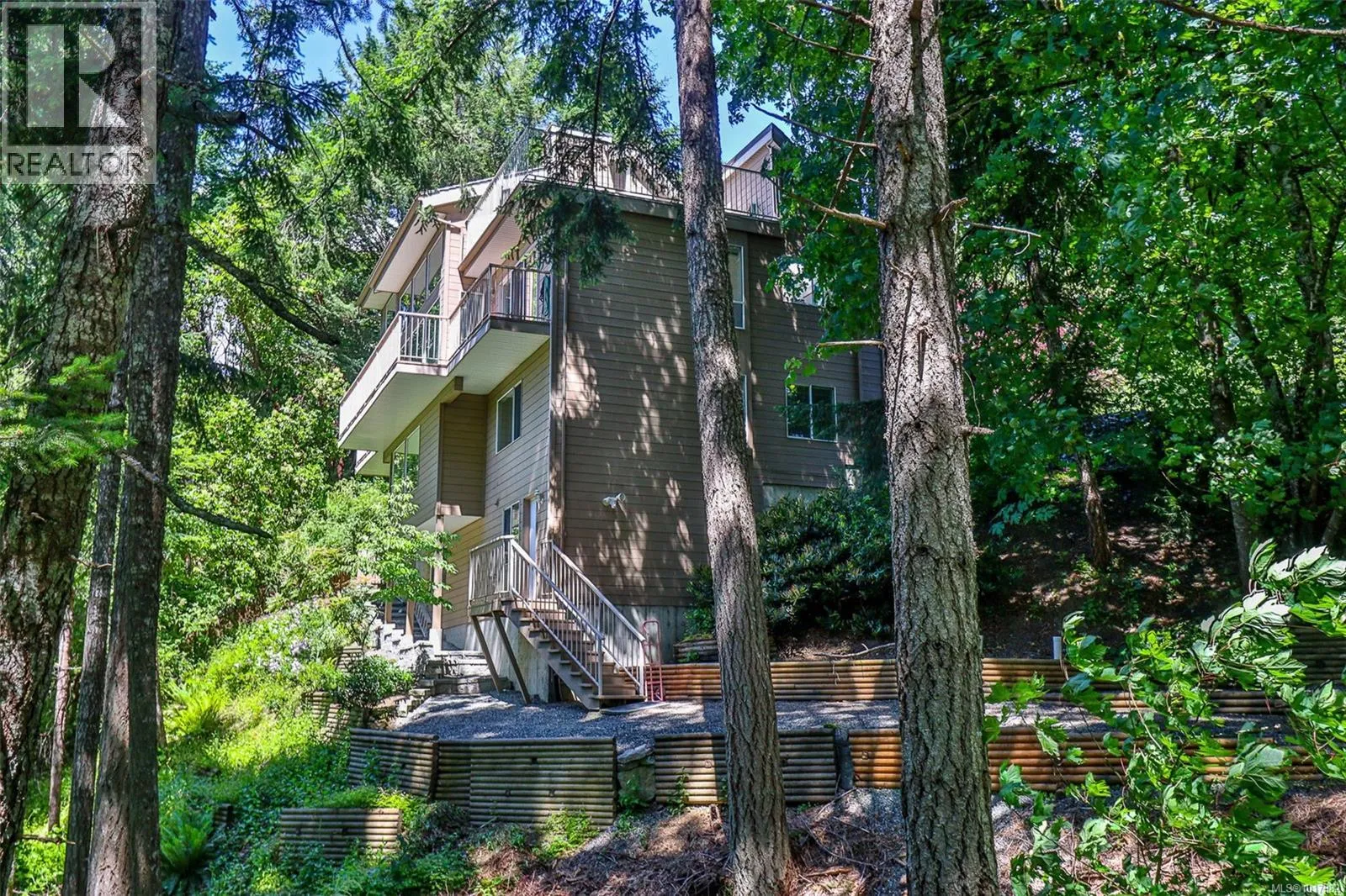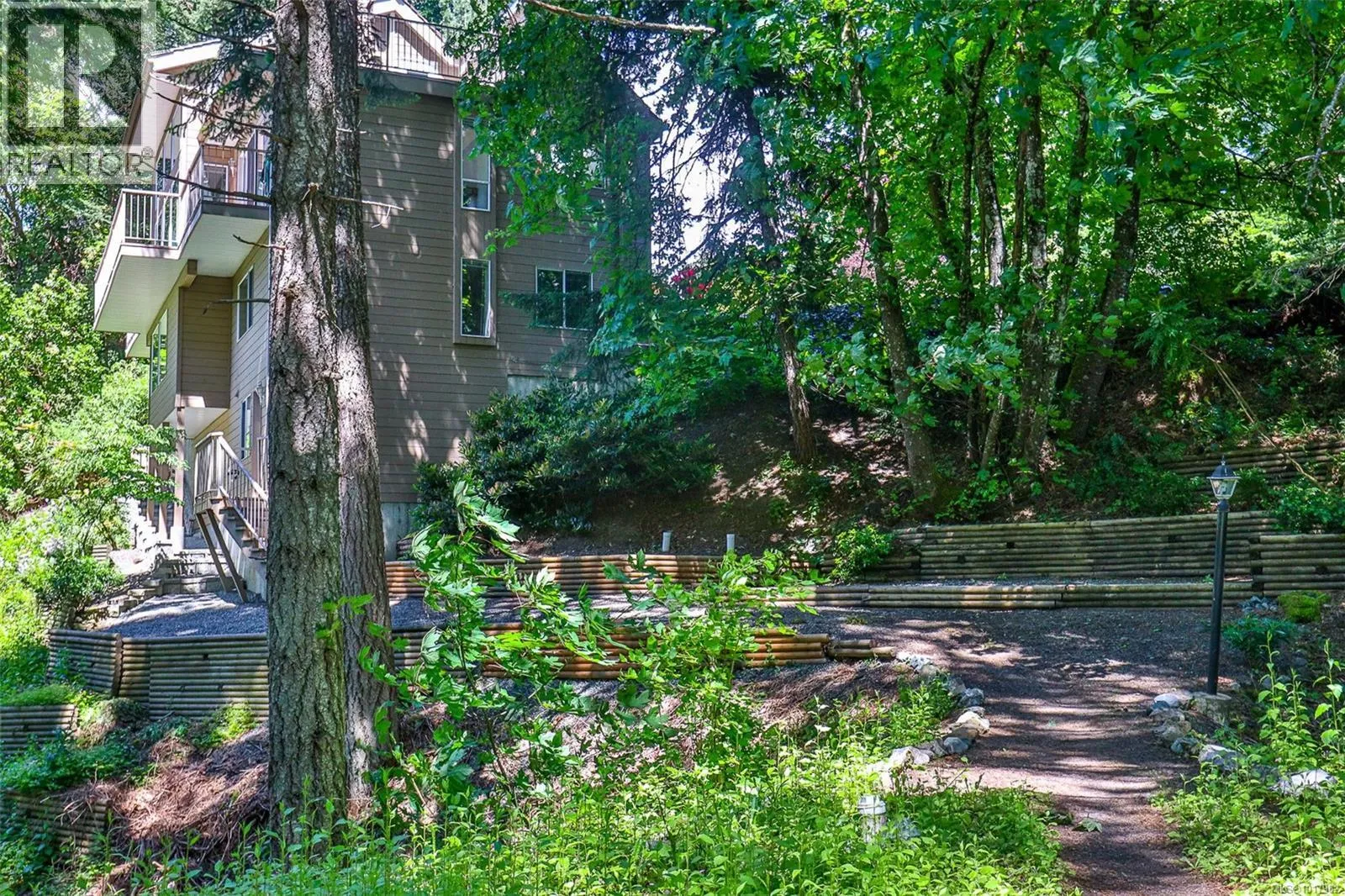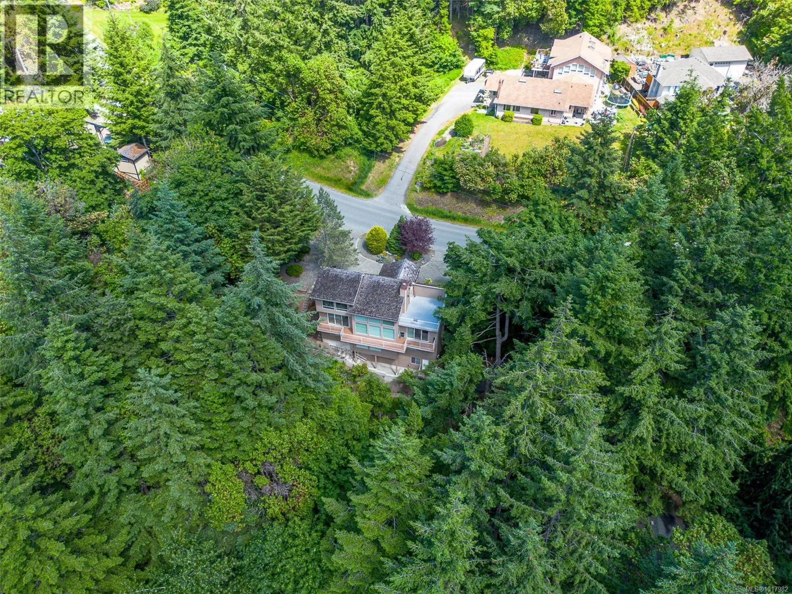 Enjoy privacy and tranquility on this spacious 0.68 ac. property with rainforest views, a seasonal creek, a stunning 3,073 sq. ft. 4-bed, 2-bath custom home, and a detached 647 sq. ft. garage with additional boat/RV parking (accessible from a second driveway on Burnett Pl). Offering exceptional value and listed $130,000 under the 2025 assessment! Timeless architecture with exceptional curb appeal, highlighted by archway windows, a cedar shake roof (2013), and a drive-through entry with vibrant landscaping and blooming flowerbeds. Step into a bright foyer with an elegant open staircase, soaring 17â vaulted ceilings, and floor-to-ceiling windows framing a backdrop of cedar, fir, maple, and arbutus trees. The three-level home offers a functional layout suitable for main level living with the primary and communal areas on the main floor. The lower level (excellent suite potential!) features three additional bedrooms plus a den, a dedicated laundry room with built-in cabinets and washing area, and another family room with glass French doors that can be closed off for privacy. Designed for entertaining, the main living area previously housed a grand piano, with an upper laneway and listening area for live events. Other highlights include a new fully-ducted heat pump (2023), a wrap-around balcony on the main and impressive rooftop patio to extend your living outdoors, a SMART central vacuum system, a newer garage roof (2021) low-maintenance landscaping, and direct access to biking and walking trails at the propertyâs edge. Exceptionally well maintained with only three owners in 34 years! Call your agent to book a private tour, or stop by one of our open houses to experience this impressive property in person! (id:27476)