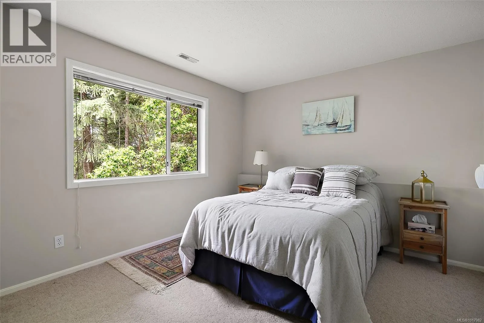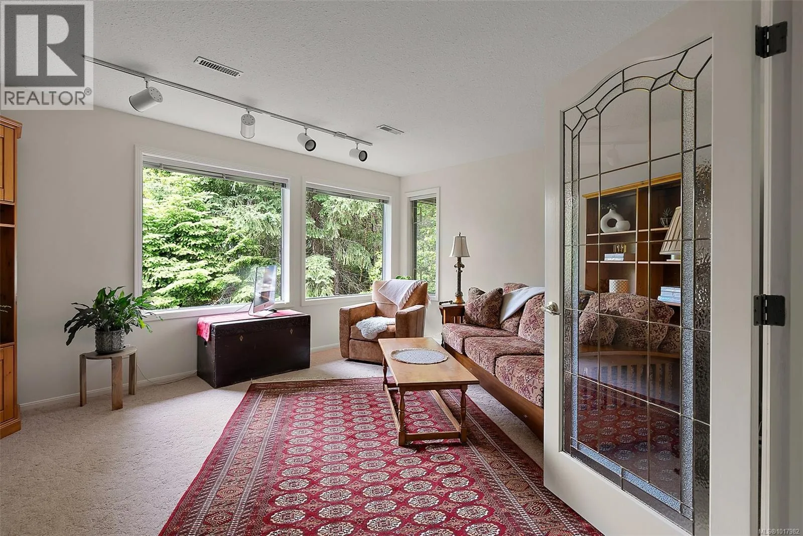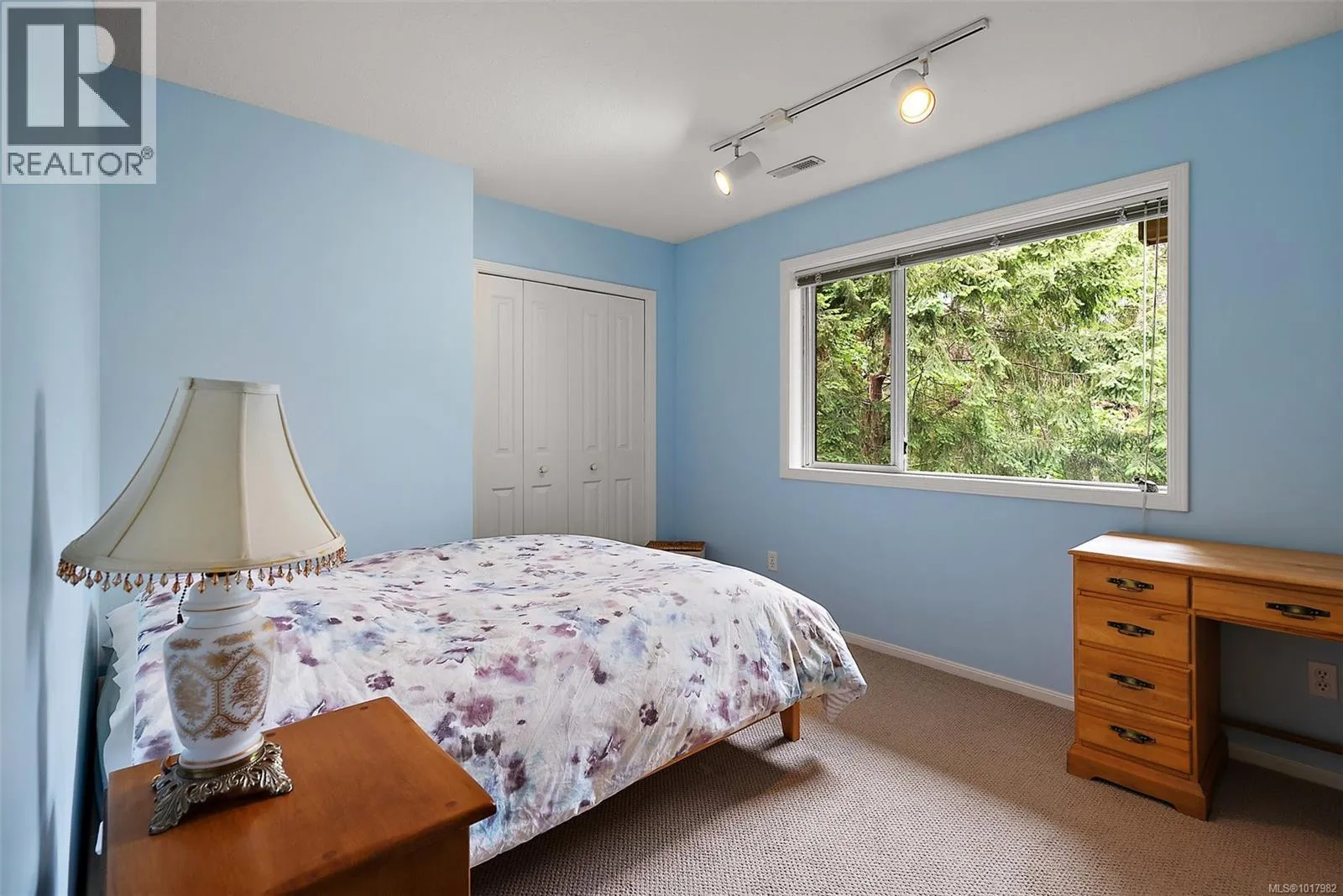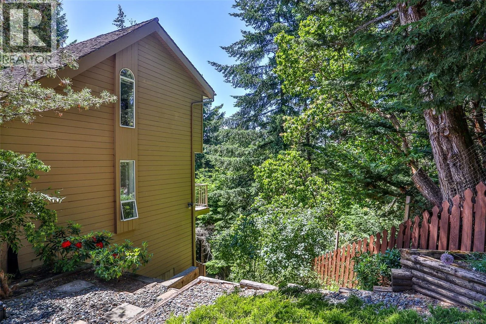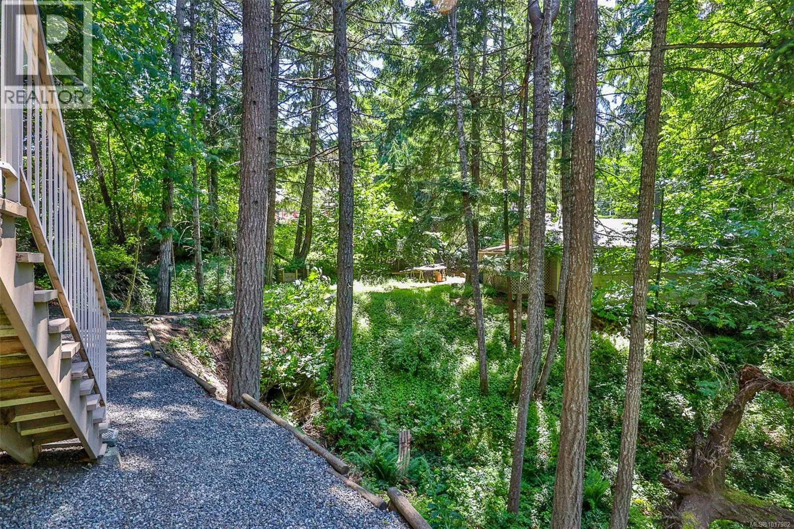 Enjoy privacy and tranquility on this spacious 0.68 ac. property with rainforest views, a seasonal creek, a stunning 3,073 sq. ft. 4-bed, 2-bath custom home, and a detached 647 sq. ft. garage with additional boat/RV parking (accessible from a second driveway on Burnett Pl). Offering exceptional value and listed $130,000 under the 2025 assessment! Timeless architecture with exceptional curb appeal, highlighted by archway windows, a cedar shake roof (2013), and a drive-through entry with vibrant landscaping and blooming flowerbeds. Step into a bright foyer with an elegant open staircase, soaring 17â vaulted ceilings, and floor-to-ceiling windows framing a backdrop of cedar, fir, maple, and arbutus trees. The three-level home offers a functional layout suitable for main level living with the primary and communal areas on the main floor. The lower level (excellent suite potential!) features three additional bedrooms plus a den, a dedicated laundry room with built-in cabinets and washing area, and another family room with glass French doors that can be closed off for privacy. Designed for entertaining, the main living area previously housed a grand piano, with an upper laneway and listening area for live events. Other highlights include a new fully-ducted heat pump (2023), a wrap-around balcony on the main and impressive rooftop patio to extend your living outdoors, a SMART central vacuum system, a newer garage roof (2021) low-maintenance landscaping, and direct access to biking and walking trails at the propertyâs edge. Exceptionally well maintained with only three owners in 34 years! Call your agent to book a private tour, or stop by one of our open houses to experience this impressive property in person! (id:27476)