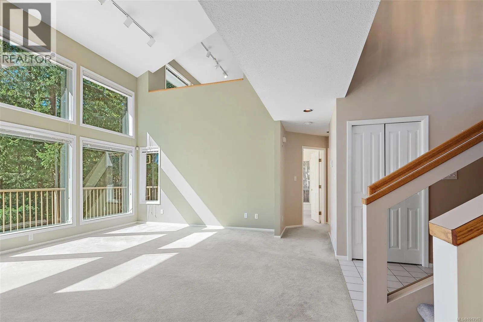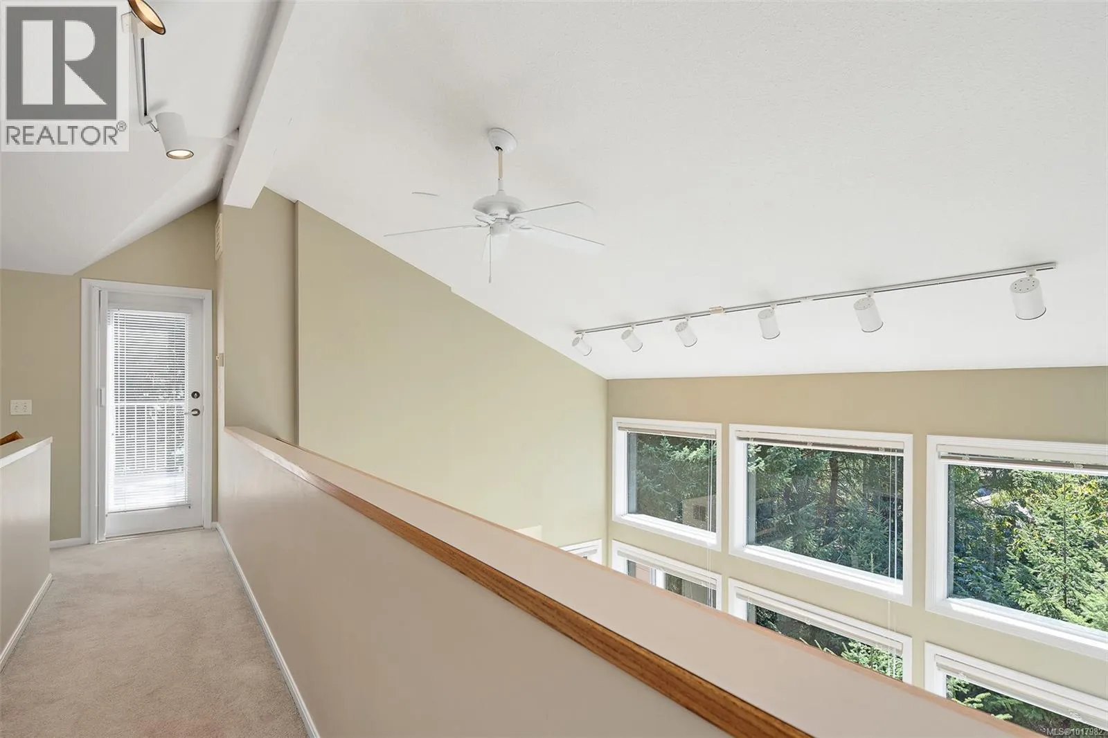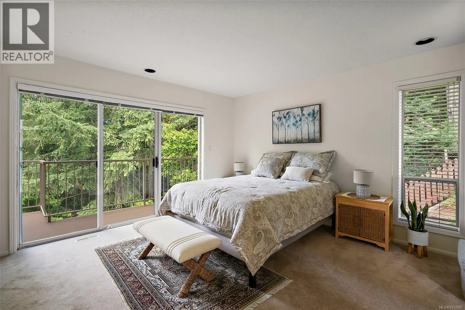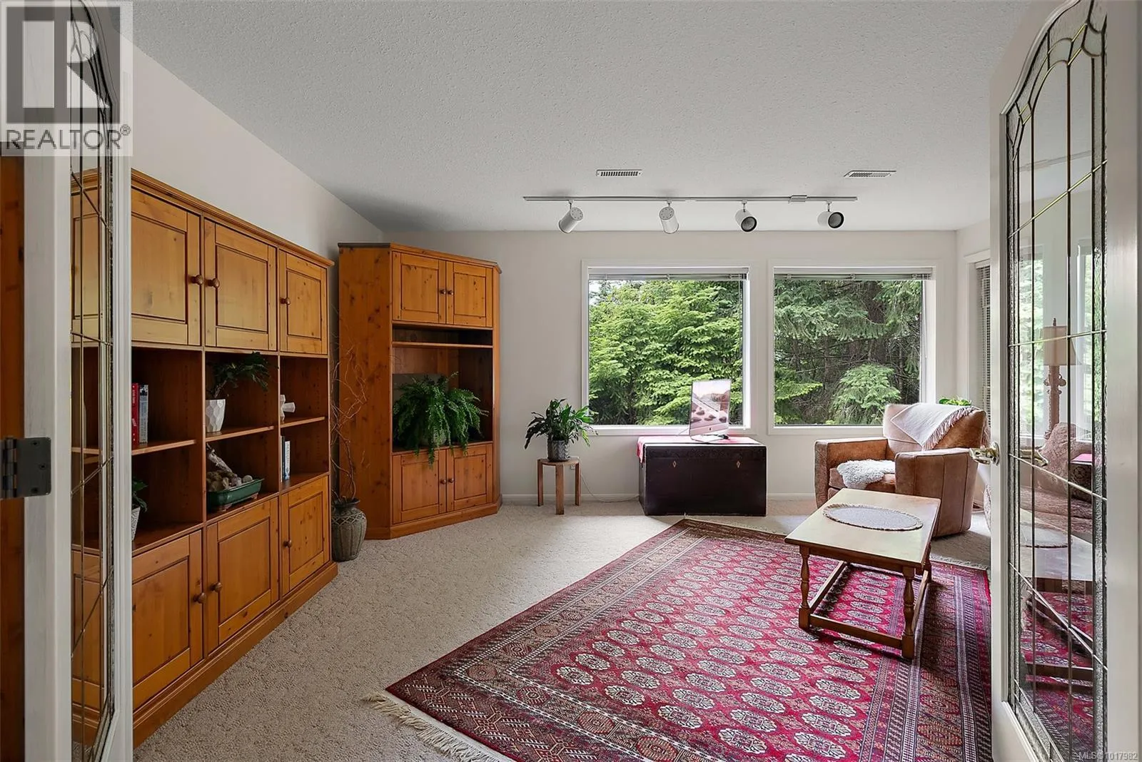 Enjoy privacy and tranquility on this spacious 0.68 ac. property with rainforest views, a seasonal creek, a stunning 3,073 sq. ft. 4-bed, 2-bath custom home, and a detached 647 sq. ft. garage with additional boat/RV parking (accessible from a second driveway on Burnett Pl). Offering exceptional value and listed $130,000 under the 2025 assessment! Timeless architecture with exceptional curb appeal, highlighted by archway windows, a cedar shake roof (2013), and a drive-through entry with vibrant landscaping and blooming flowerbeds. Step into a bright foyer with an elegant open staircase, soaring 17â vaulted ceilings, and floor-to-ceiling windows framing a backdrop of cedar, fir, maple, and arbutus trees. The three-level home offers a functional layout suitable for main level living with the primary and communal areas on the main floor. The lower level (excellent suite potential!) features three additional bedrooms plus a den, a dedicated laundry room with built-in cabinets and washing area, and another family room with glass French doors that can be closed off for privacy. Designed for entertaining, the main living area previously housed a grand piano, with an upper laneway and listening area for live events. Other highlights include a new fully-ducted heat pump (2023), a wrap-around balcony on the main and impressive rooftop patio to extend your living outdoors, a SMART central vacuum system, a newer garage roof (2021) low-maintenance landscaping, and direct access to biking and walking trails at the propertyâs edge. Exceptionally well maintained with only three owners in 34 years! Call your agent to book a private tour, or stop by one of our open houses to experience this impressive property in person! (id:27476)