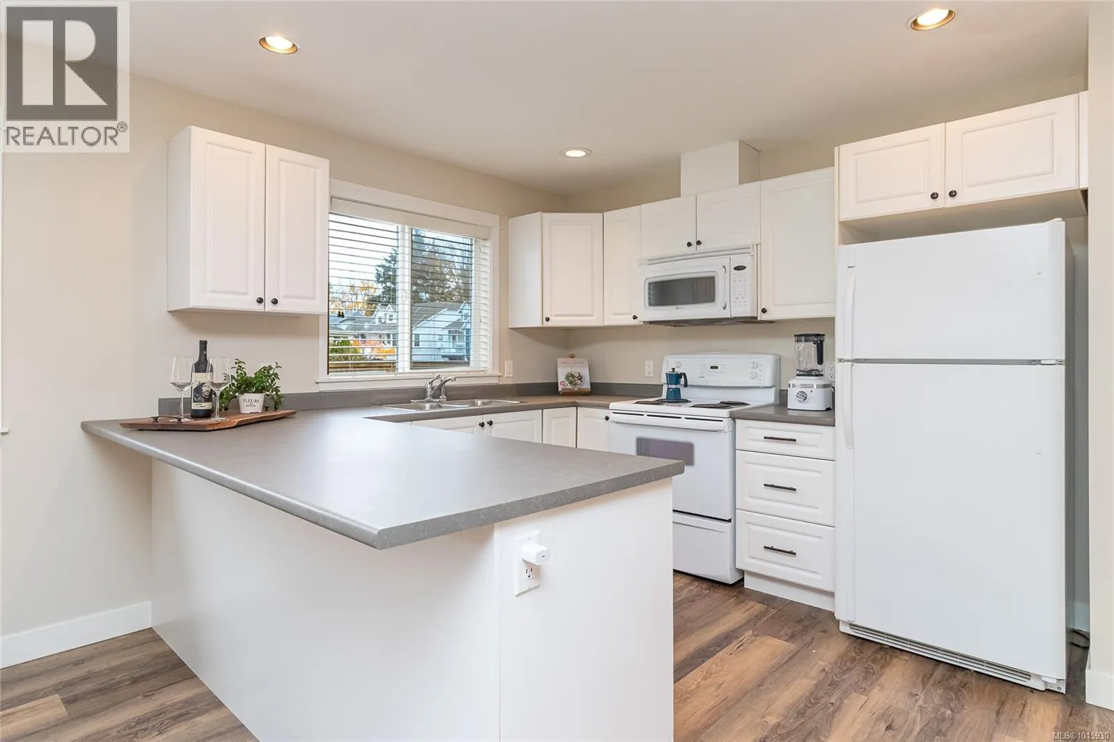 Welcome to this beautifully maintained 3-bedroom, 3-bath home located on a quiet, family-friendly street in the heart of Duncan. Perfectly situated within walking distance to grocery stores, shops, restaurants, schools, and even baseball fields, this home offers convenience and community all in one. Step inside to a bright, open-concept main floor featuring a cozy gas fireplace and a modern white kitchenâideal for entertaining and everyday living. Upstairs, youâll find three spacious bedrooms plus a convenient office nookâperfect for remote work or homework space. The large primary suite includes a walk-in closet and a stylish 4-piece ensuite, while two additional bedrooms share another full bath. The upper-level laundry adds everyday convenience. Enjoy easy outdoor living with a low-maintenance backyard designed for relaxation and entertaining. The large patio and covered BBQ area make hosting a breeze, while the private yard features raised garden beds, a shed perfect for storage or a creative studio, and double gates for RV or boat parking.This home is move-in ready and located in a welcoming neighbourhood with great neighbours and a peaceful atmosphere. New Roof 2025! Donât miss your chance to own this wonderful Duncan gem! (id:27476)