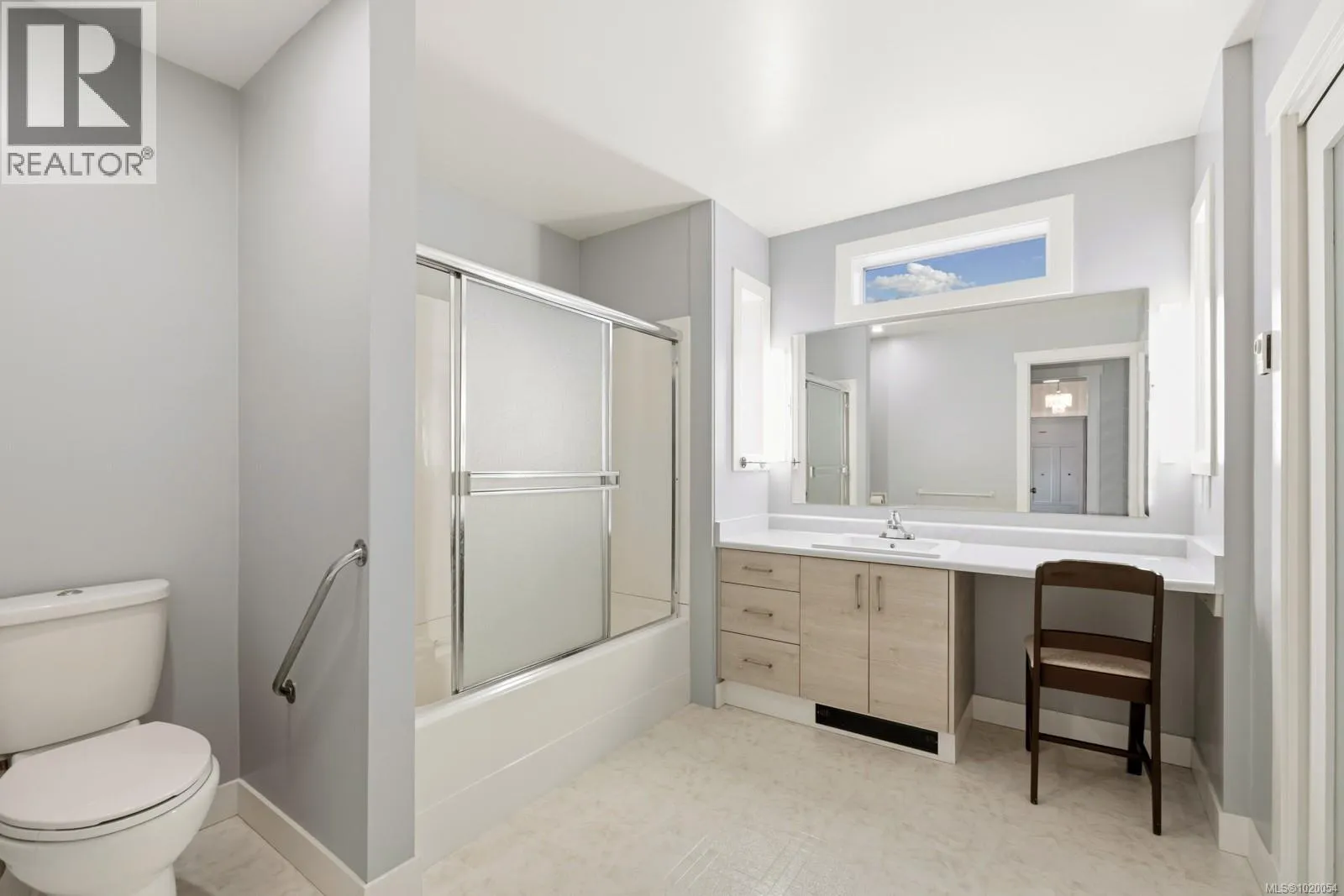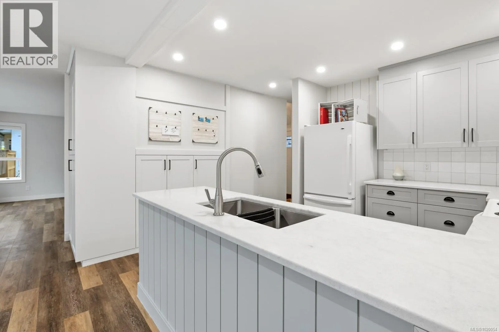 Beautifully updated 4 bedroom/2 bathroom home in 55+ Riverâs Edge! A gorgeous light and bright kitchen feature marble countertops, tiled back splash, modern fixtures and plenty of cupboards in a cool & clean modern palette. A small beverage fridge is a feature in the dining room and a bay window overlooks the back yard. The generous living room has large windows and a shiplap feature wall. Comfortable primary bedroom suite with 4 pc ensuite and lots of closet space, a bedroom/home office with a murphy bed, a 3 pc main bath and the laundry complete the main floor. Upstairs you find 2 good sized bedrooms and a spacious family room with sliders to a deck. Heat pump up and downstairs for heat in the winter and cooling in the summer. The fully fenced back yard has plenty of garden space, large patio for your outdoor entertaining and mature plantings lending lots of privacy, and covered storage area. New roof, double garage and landscaped front yard. Donât miss viewing this one! (id:27476)
