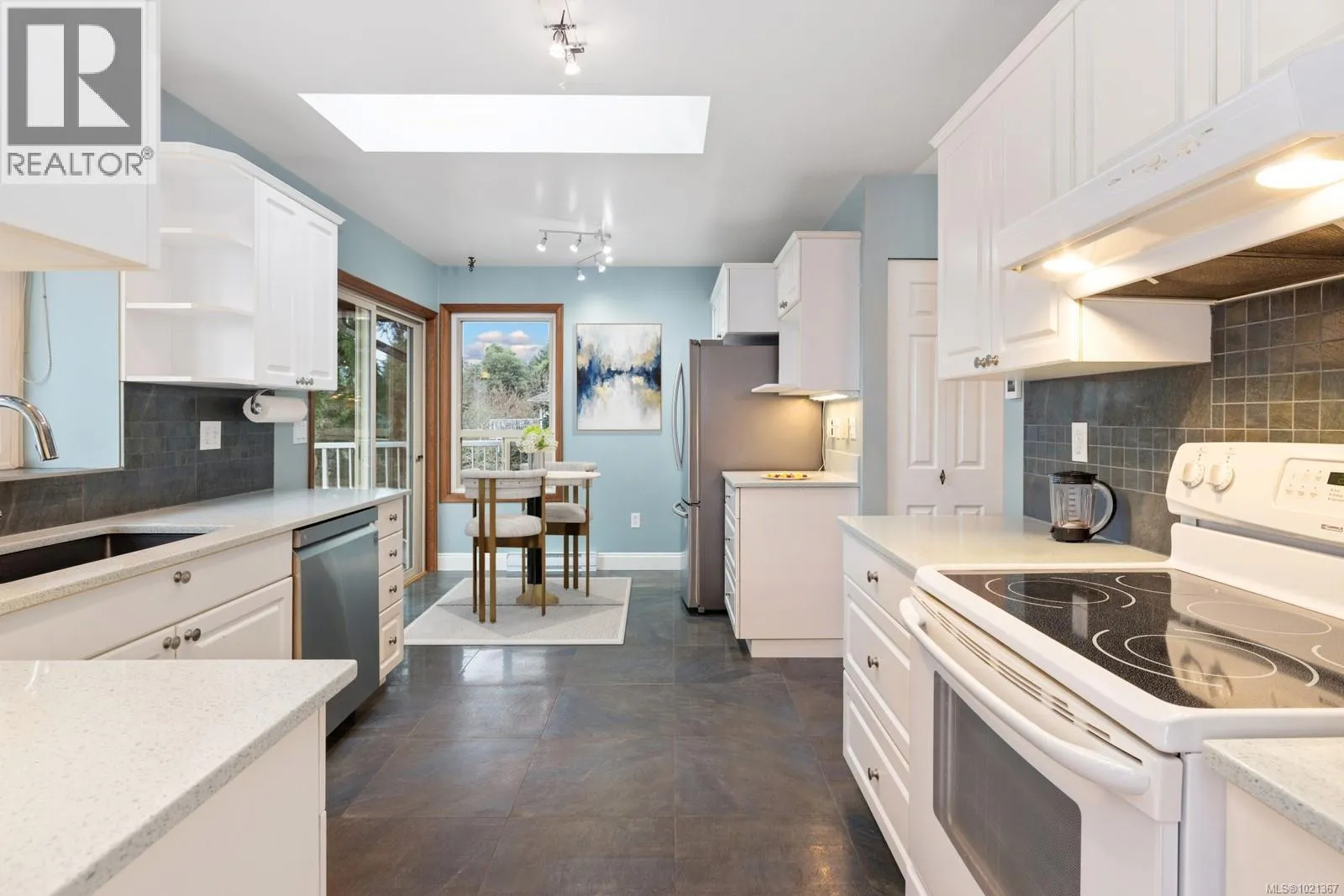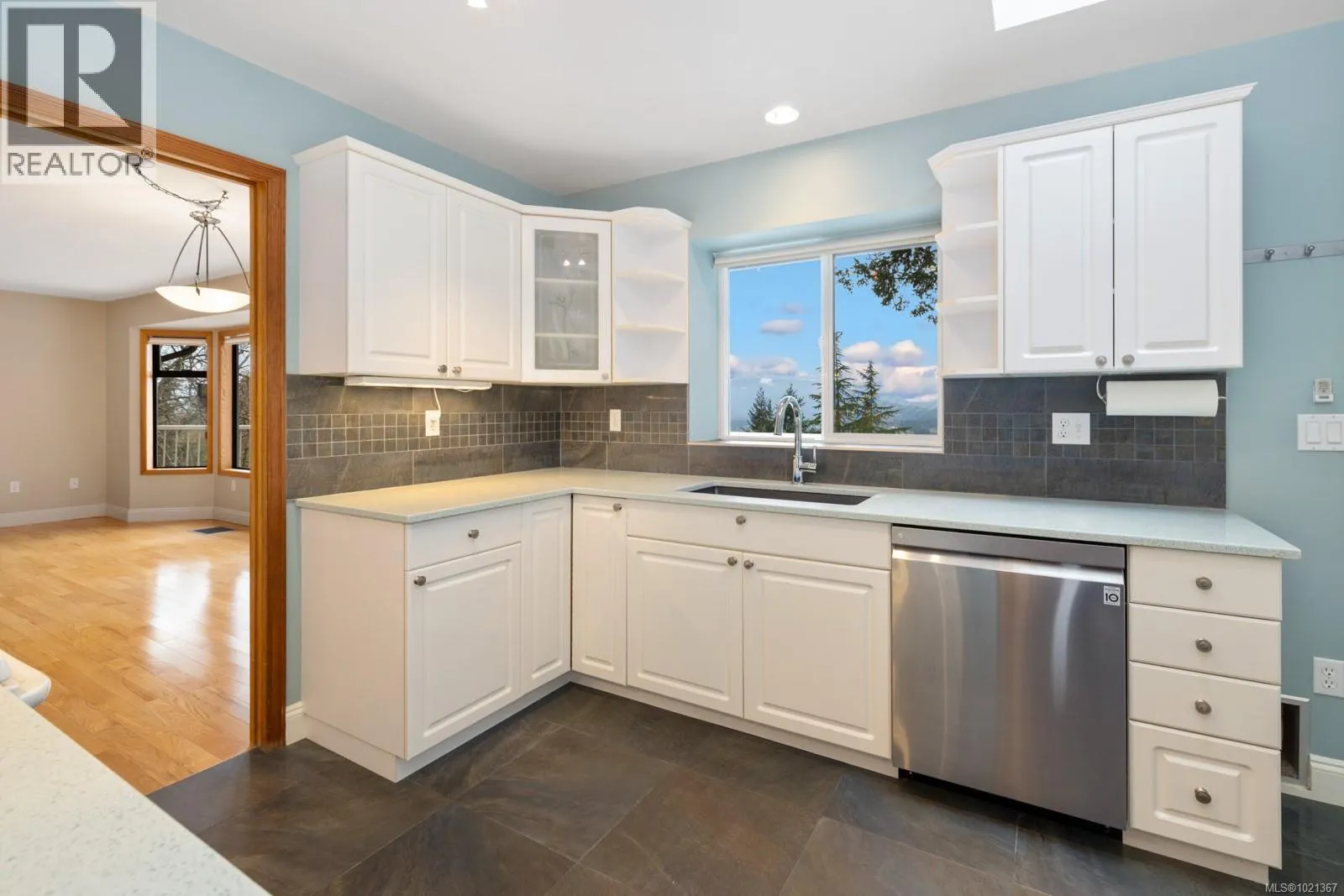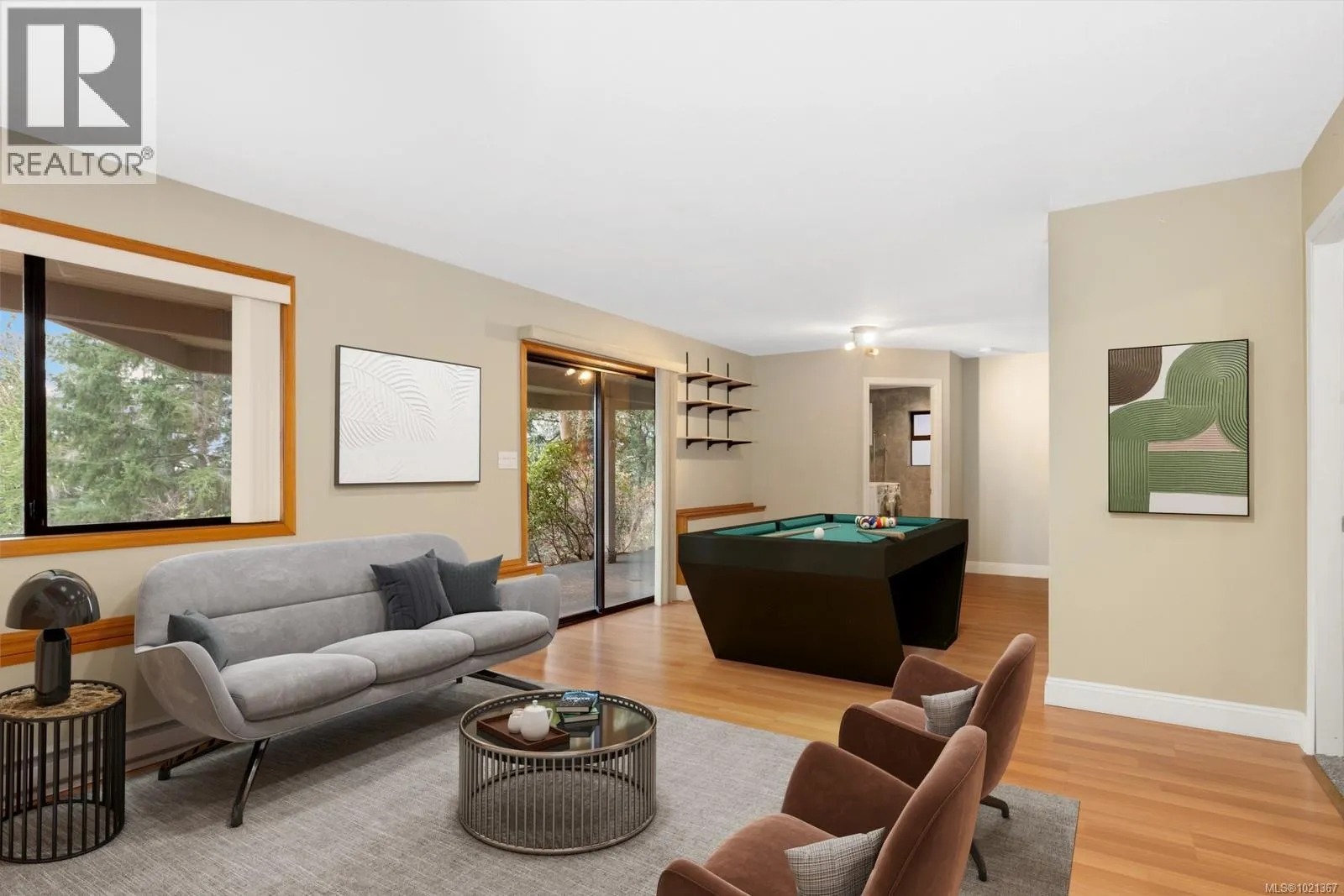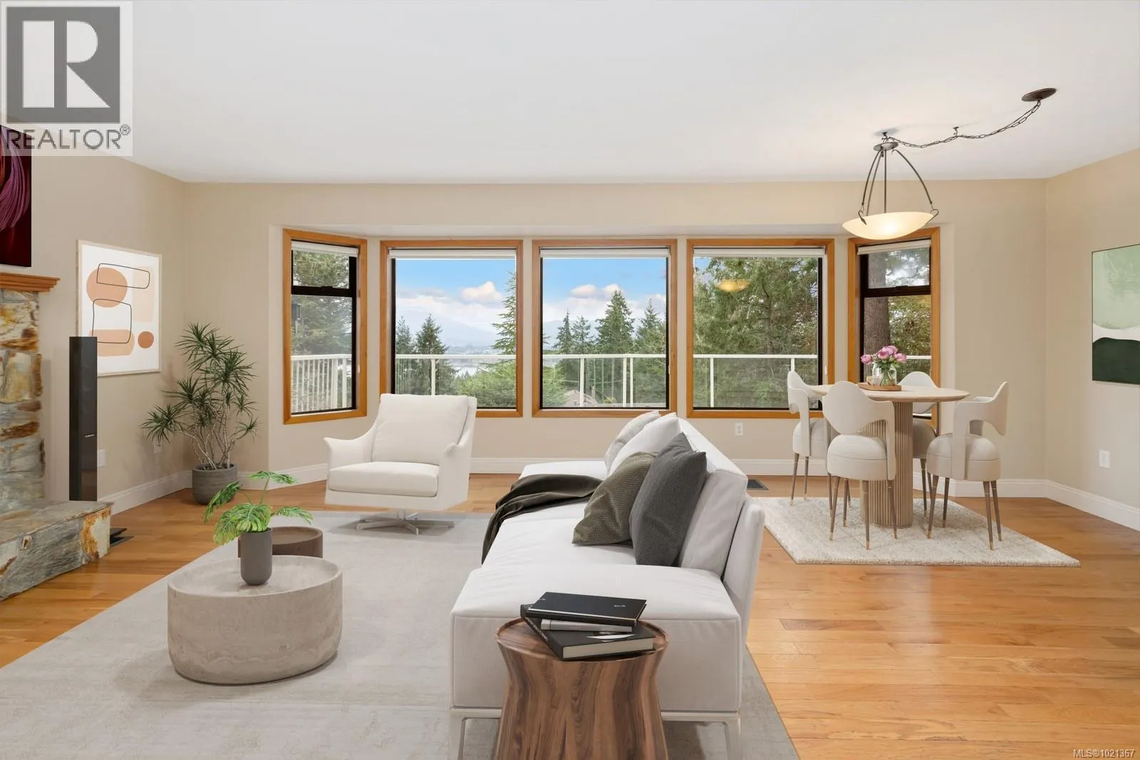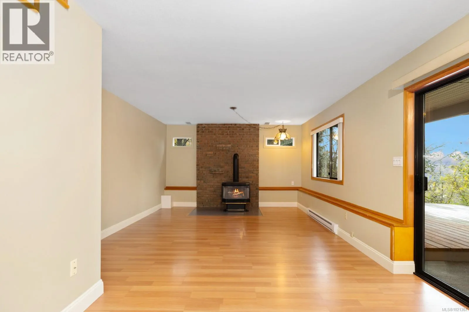 Experience effortless main-floor living in this beautiful 3-bed, 4-bath home with a level driveway and no-step entry. The primary bedroom boasts a walk-in closet and 3-piece ensuite. The spacious living room, blanketed in hardwood and warmed by a cozy wood-burning fireplace, offers serene forest and lake views. Skylights in the entry, kitchen and hall enhance the natural light throughout the main floor. The kitchen, featuring heated tile floors, opens to a west-facing, entertainment-sized deck, perfect for sunsets and gatherings. Downstairs, a huge family room with a gas fireplace offers access to a covered patio and a private, fully fenced backyard. The one-bedroom suite is perfect for extended family or visiting friends, giving them comfort and privacy. This is an ideal location in a great Maple Bay neighbourhood. (id:27476)