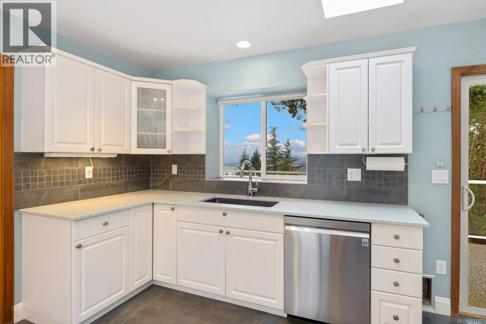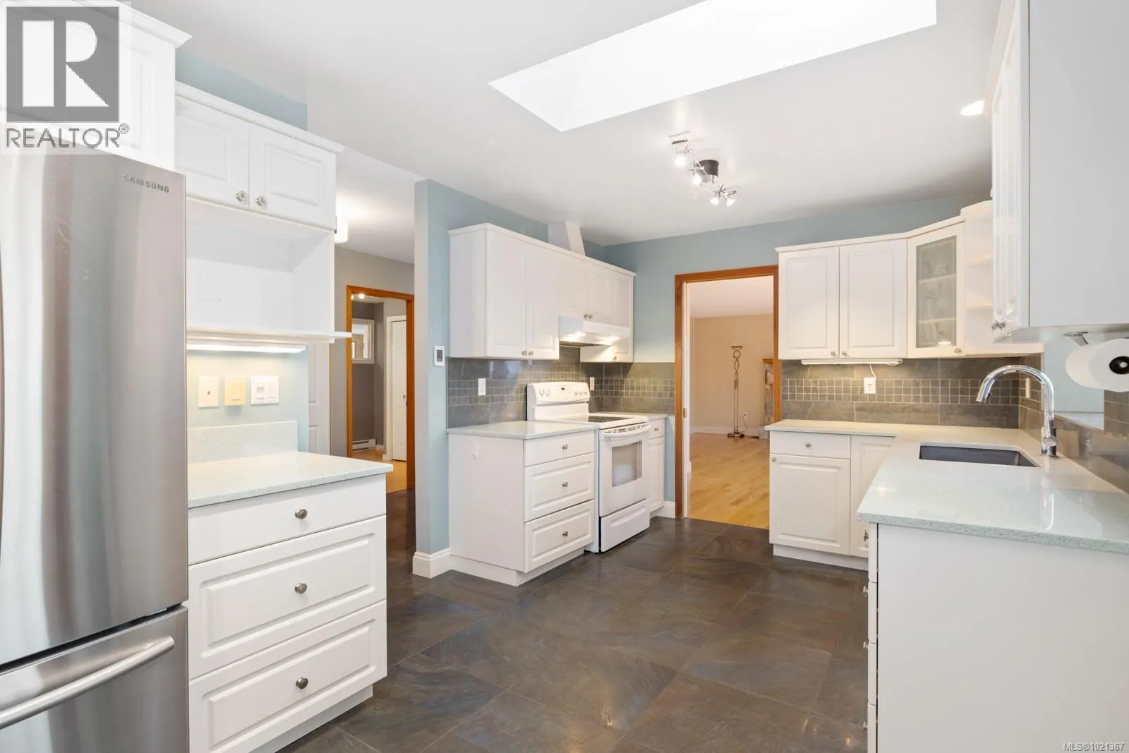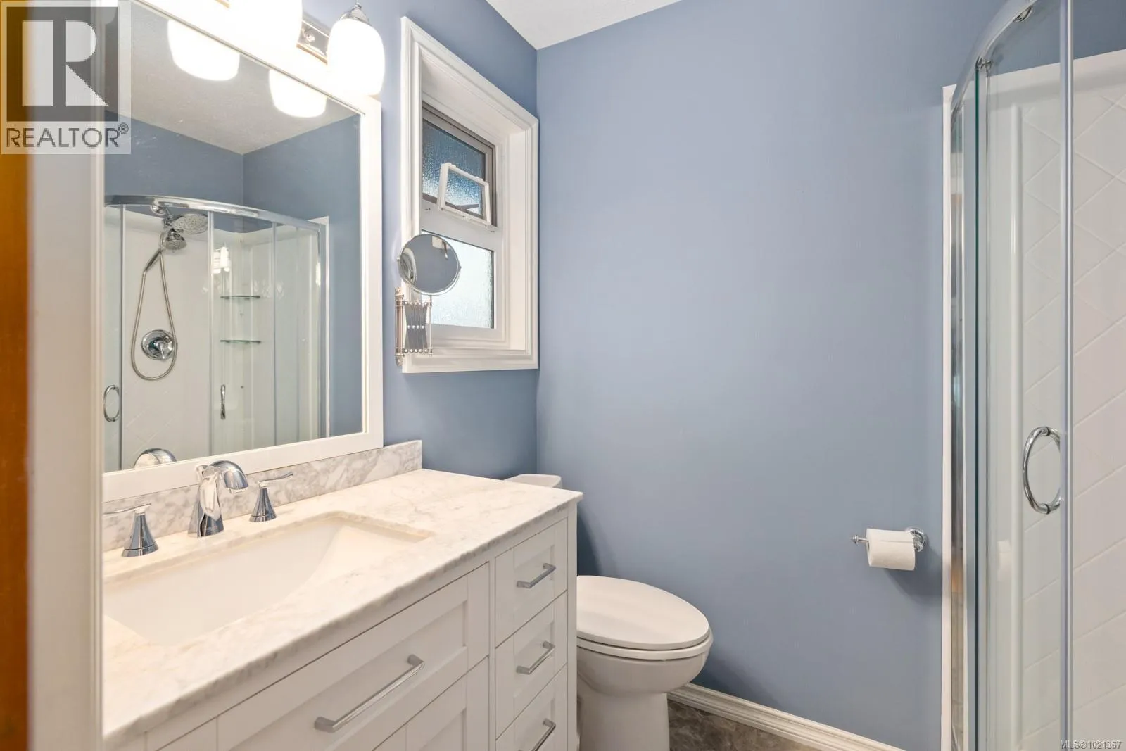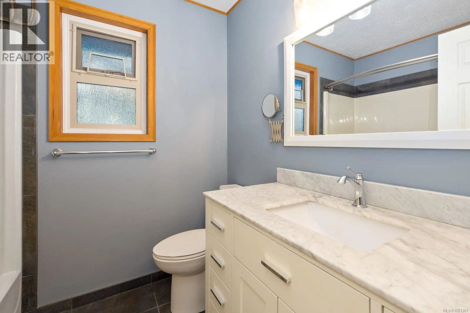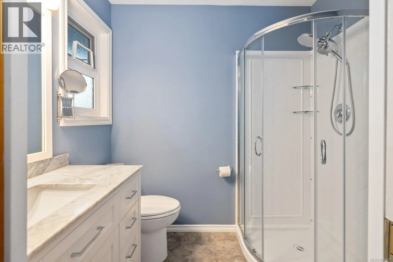 Experience effortless main-floor living in this beautiful 3-bed, 4-bath home with a level driveway and no-step entry. The primary bedroom boasts a walk-in closet and 3-piece ensuite. The spacious living room, blanketed in hardwood and warmed by a cozy wood-burning fireplace, offers serene forest and lake views. Skylights in the entry, kitchen and hall enhance the natural light throughout the main floor. The kitchen, featuring heated tile floors, opens to a west-facing, entertainment-sized deck, perfect for sunsets and gatherings. Downstairs, a huge family room with a gas fireplace offers access to a covered patio and a private, fully fenced backyard. The one-bedroom suite is perfect for extended family or visiting friends, giving them comfort and privacy. This is an ideal location in a great Maple Bay neighbourhood. (id:27476)