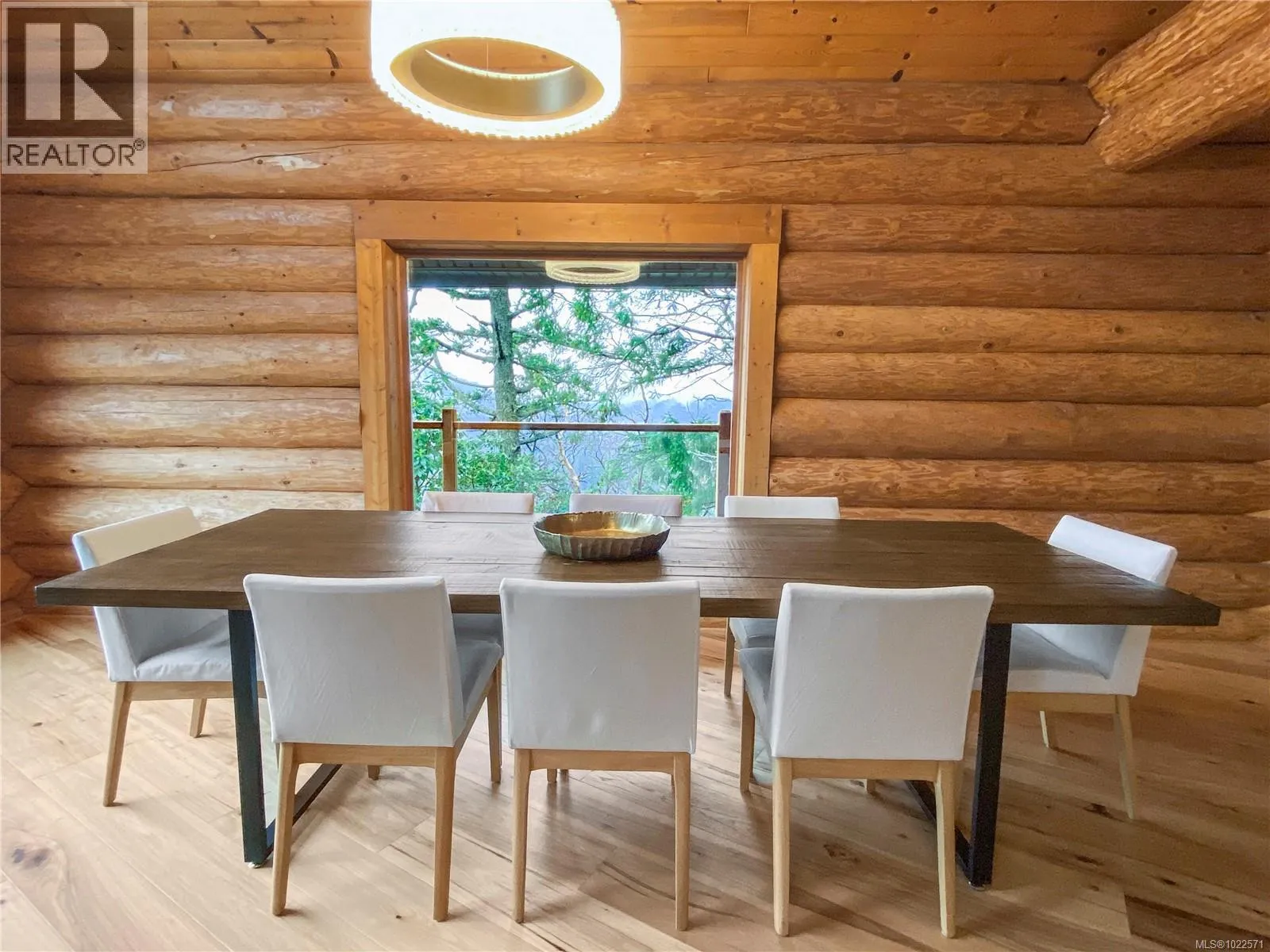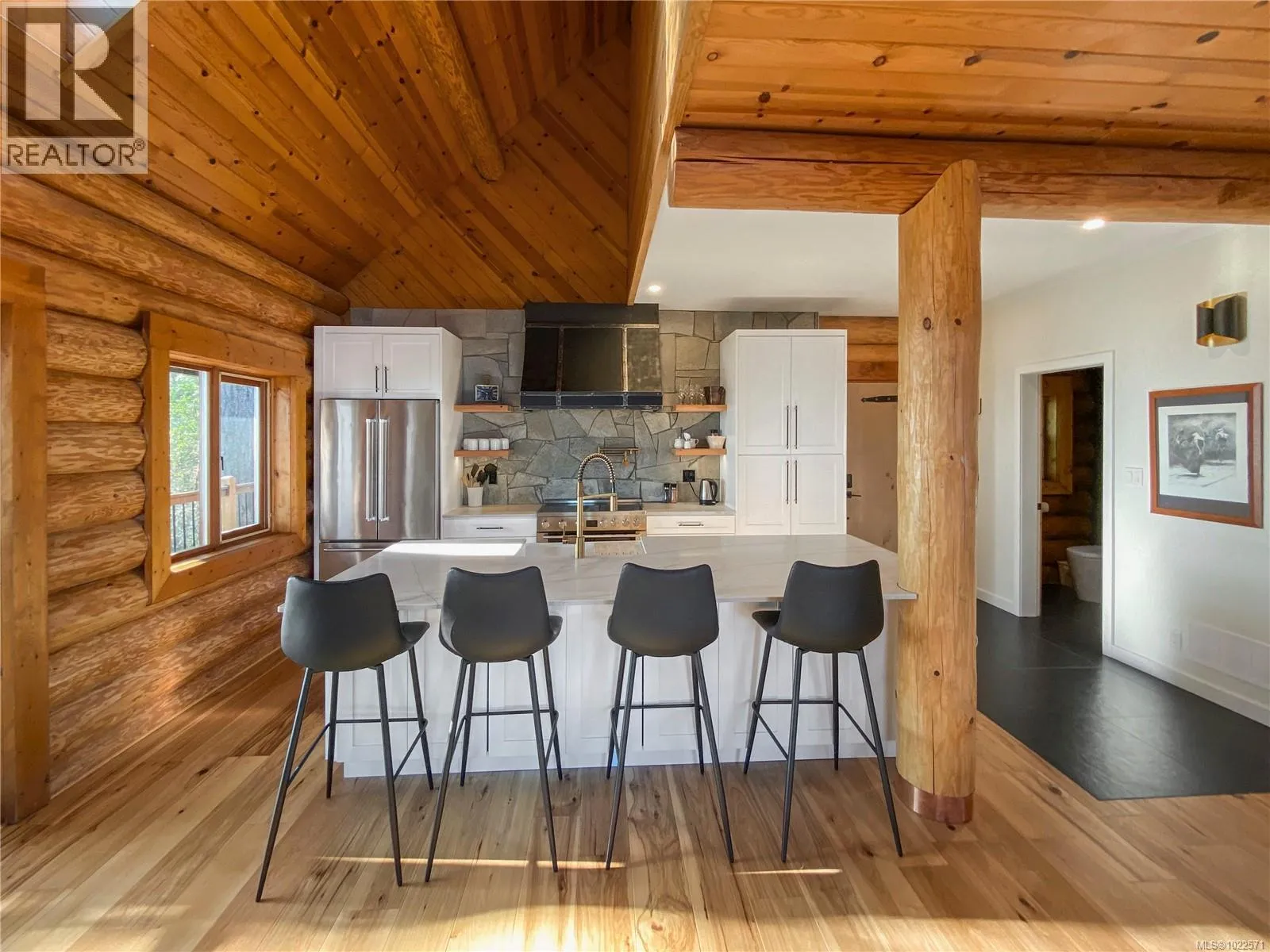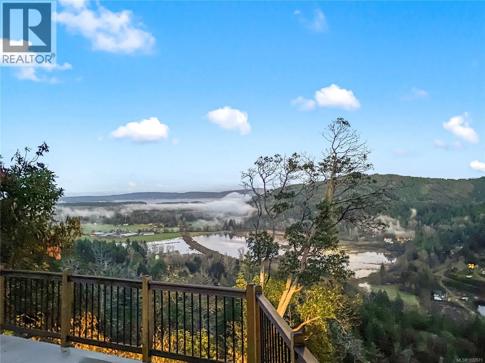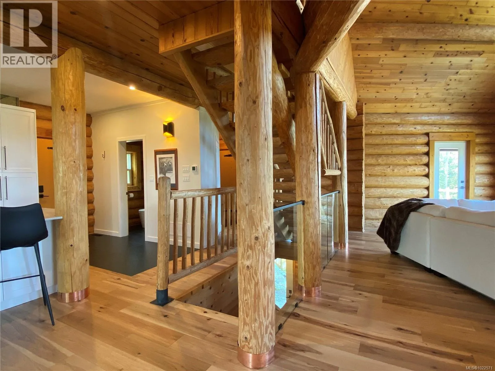 Set high above Vancouver Islandâs breathtaking terrain, this exceptional 16+ acre property offers uninterrupted views of the ocean, forested valleys, and distant mountain peaks. The fully updated 3-bedroom, 2.5-bath log home blends authentic West Coast character with sophisticated modern comforts. Inside, dramatic vaulted ceilings, warm hardwood floors, and a cozy fireplace create an inviting main level designed for both comfort and connection, perfect for hosting. The open-concept kitchen, living, and dining areas are complemented by quartz countertops, maple cabinetry, and refined custom finishes that elevate everyday living and entertaining alike. Upstairs, the primary suite is a peaceful escape featuring a spa-inspired ensuite and a freestanding soaker tub strategically placed to enjoy the sweeping valley-to-ocean vistas. The Lower level offers 2 bedrooms, 4 piece bath and large den/living room! Expansive decks provide the ideal setting to unwind, entertain, or simply soak in the natural beauty that surrounds you. Whether envisioned as a private forever home or an exceptional opportunity with tremendous revenue potential, this is a truly rare offering where privacy, views, and lifestyle come together seamlessly. (id:27476)