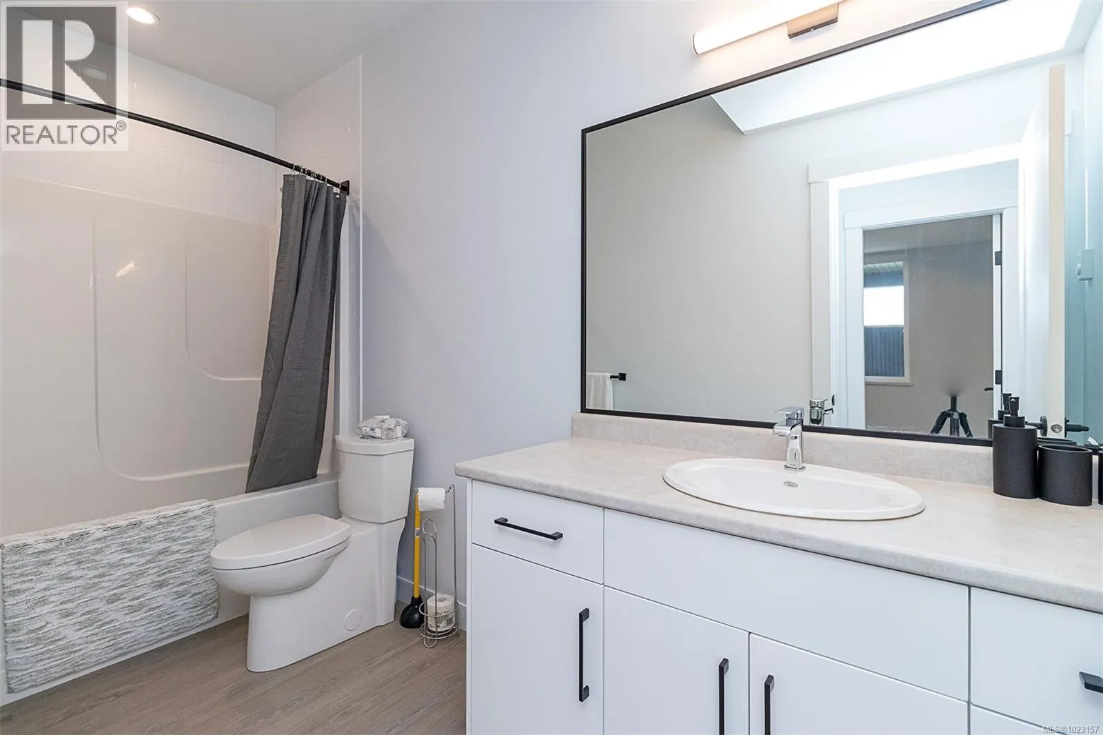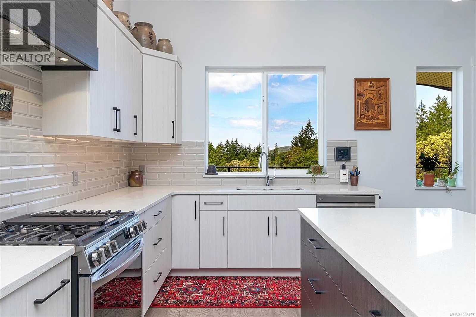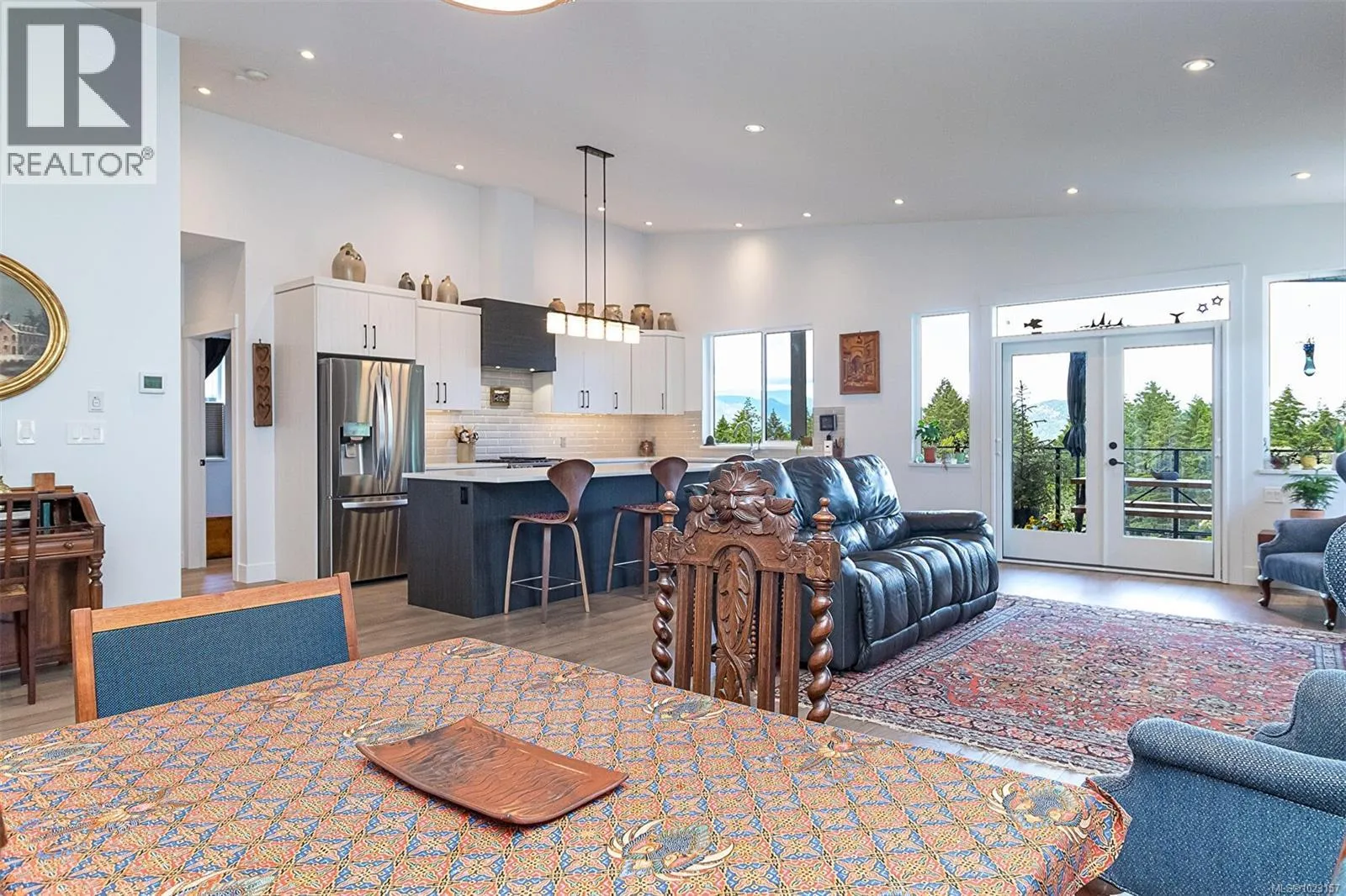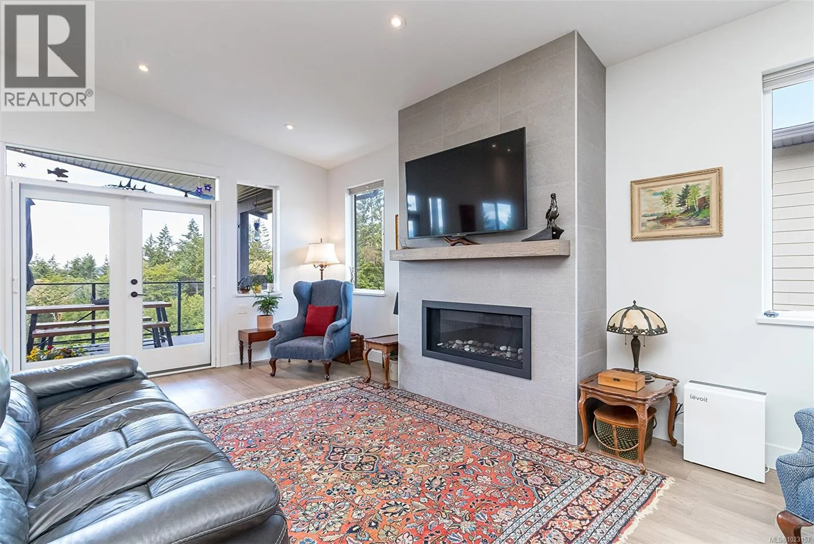 Welcome to Maple Bay in the Cowichan Valley. 6257 Highwood Drive is a 2022 custom built home by Elmworth Construction. This contemporary home is built with energy efficiency and minimal resource usage. The solar panels generate enough electricity to cover all but the service delivery costs of the home ( $111.00 for 2025 ). The gardens are native, drought tolerant plants with drip irrigation, which means low water bills and easy care maintenance and included backyard fencing. The backyard leads out to Garry Oak meadows and accessible green space. This home is bright & thoughtfully designed with amazing privacy and views. Featuring a newly installed solar roof, wood shed, fencing and professional landscaping with native plants and irrigation system. Main level living includes a bright, spacious kitchen with custom cabinetry & quartz countertops, adjacent open area with gas fireplace & double patio doors leading to an all-seasons covered deck. The large primary bedroom is complemented with double sinks, custom tile shower, luxurious soaker tub & walk-in closet. The second bedroom on the main floor could be used as an office. The lower level offers a large media room, 4 piece bath, 2 more bedrooms and family room. The bonus is an additional 1 bedroom suite with private entrance and it has been created with a modern, open concept design. The oversized double garage has room for 2 vehicles, EV Charging & storage. (id:27476)