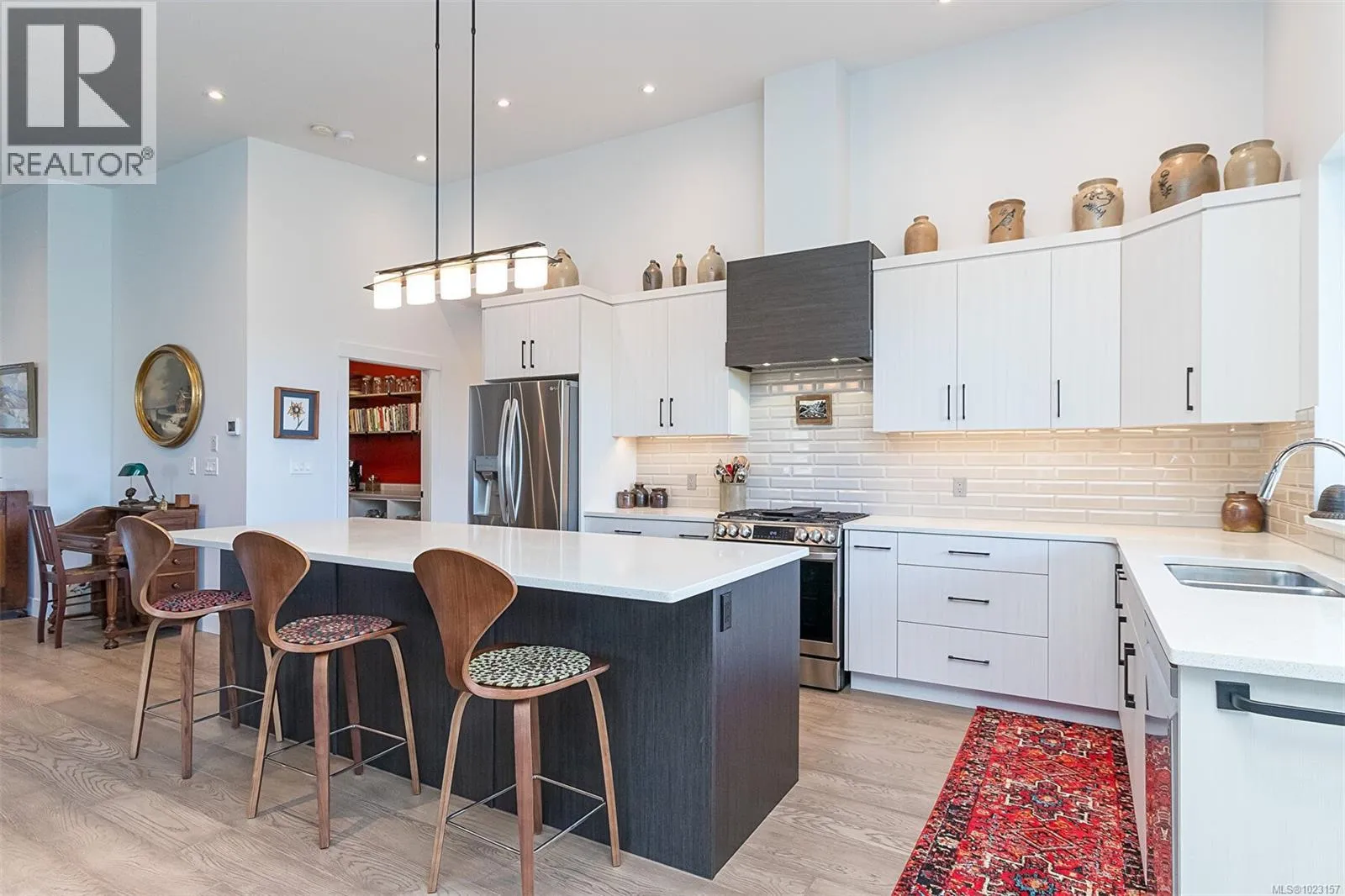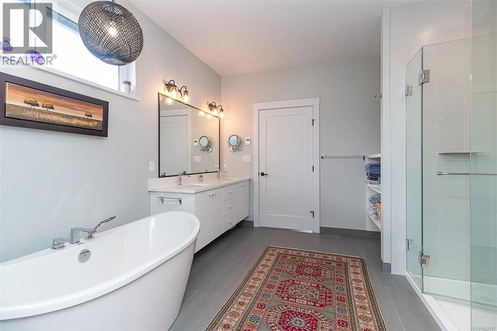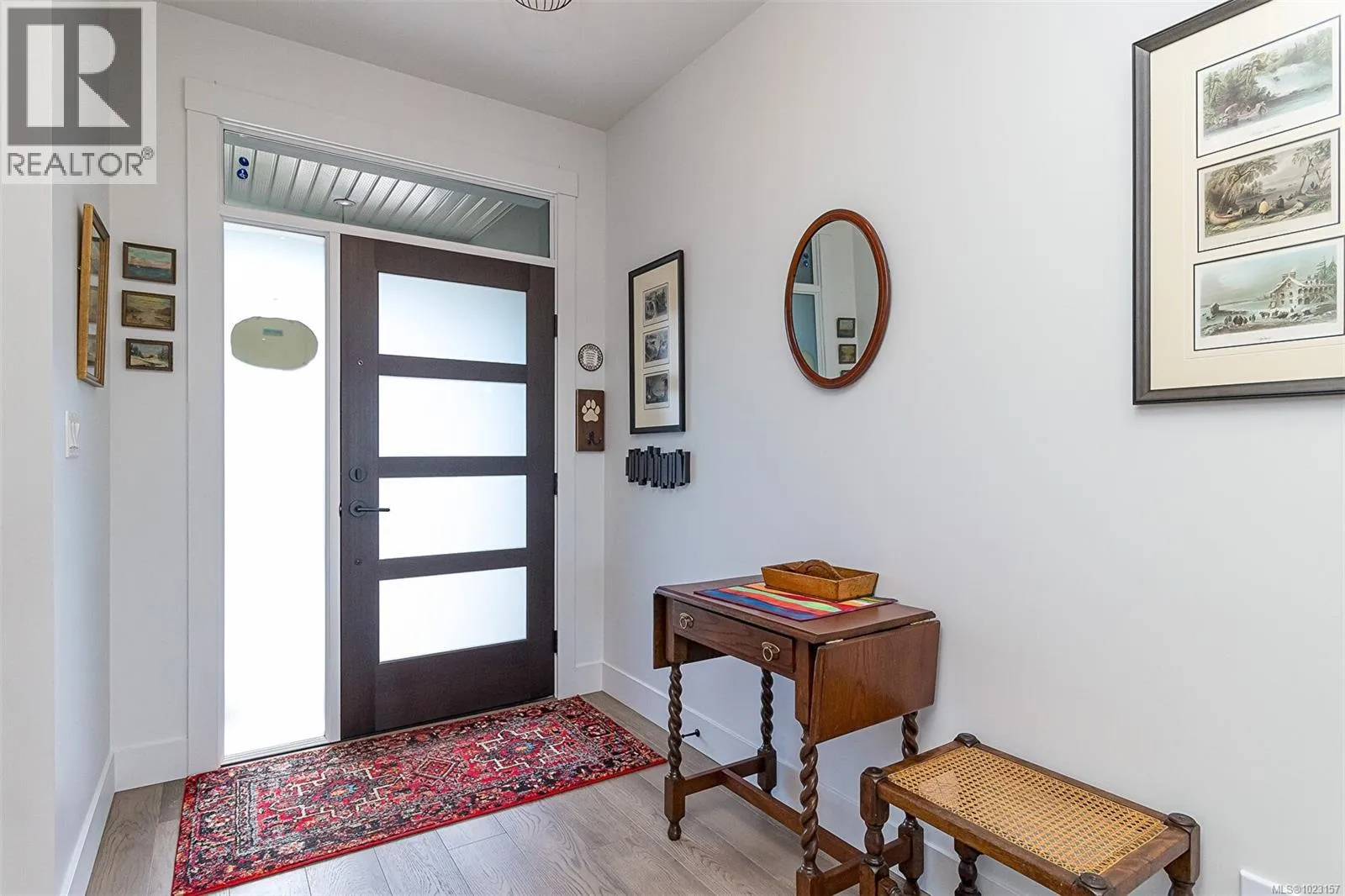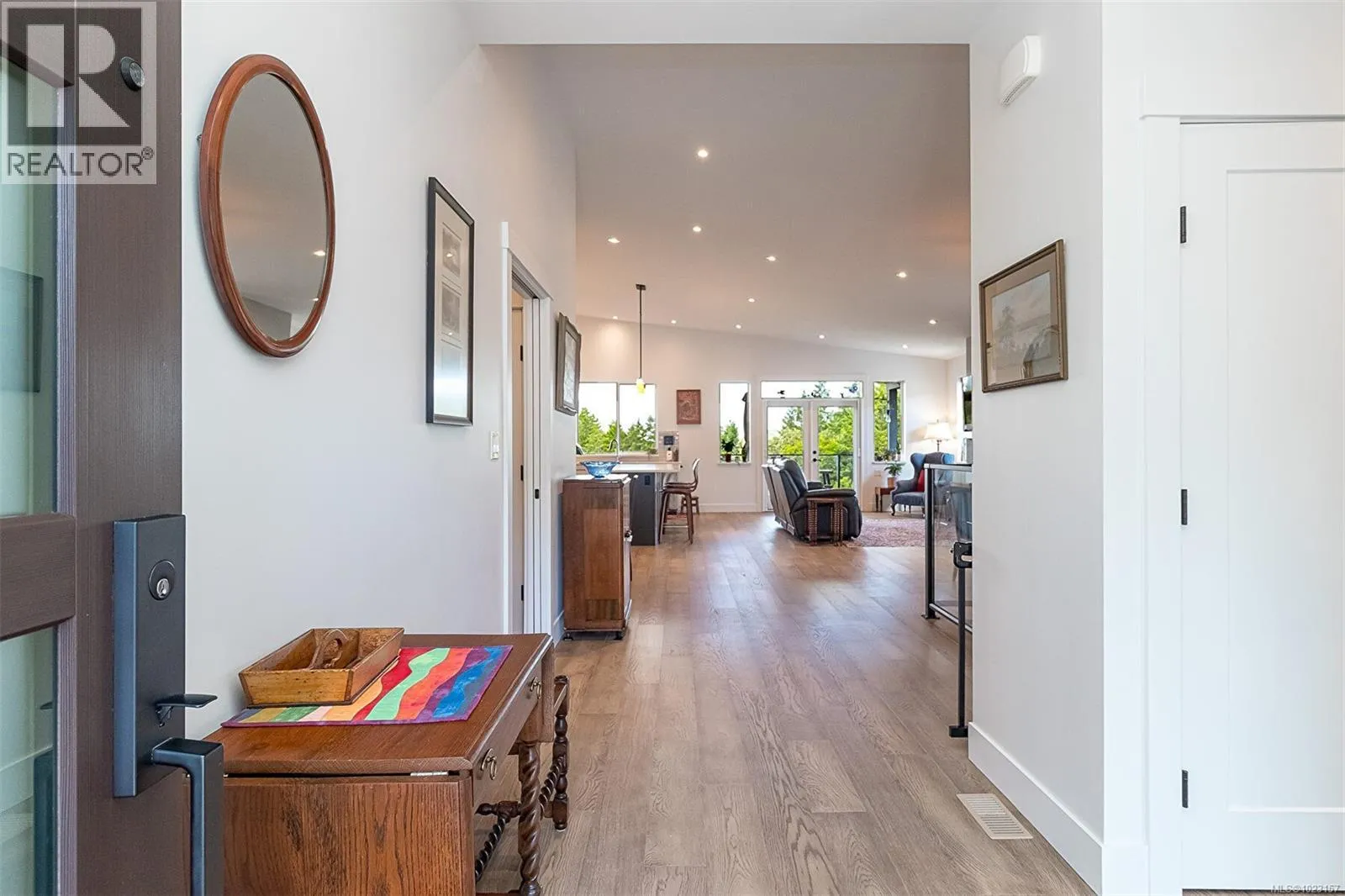 Welcome to Maple Bay in the Cowichan Valley. 6257 Highwood Drive is a 2022 custom built home by Elmworth Construction. This contemporary home is built with energy efficiency and minimal resource usage. The solar panels generate enough electricity to cover all but the service delivery costs of the home ( $111.00 for 2025 ). The gardens are native, drought tolerant plants with drip irrigation, which means low water bills and easy care maintenance and included backyard fencing. The backyard leads out to Garry Oak meadows and accessible green space. This home is bright & thoughtfully designed with amazing privacy and views. Featuring a newly installed solar roof, wood shed, fencing and professional landscaping with native plants and irrigation system. Main level living includes a bright, spacious kitchen with custom cabinetry & quartz countertops, adjacent open area with gas fireplace & double patio doors leading to an all-seasons covered deck. The large primary bedroom is complemented with double sinks, custom tile shower, luxurious soaker tub & walk-in closet. The second bedroom on the main floor could be used as an office. The lower level offers a large media room, 4 piece bath, 2 more bedrooms and family room. The bonus is an additional 1 bedroom suite with private entrance and it has been created with a modern, open concept design. The oversized double garage has room for 2 vehicles, EV Charging & storage. (id:27476)
