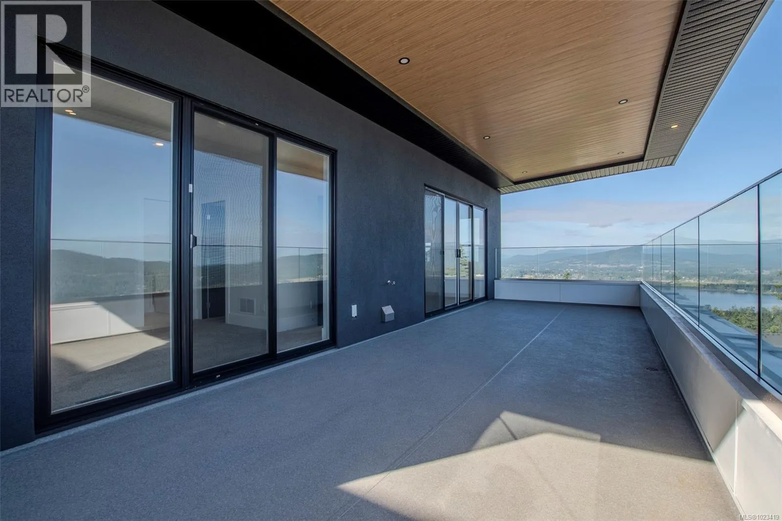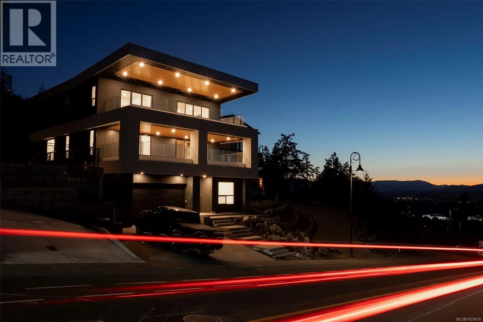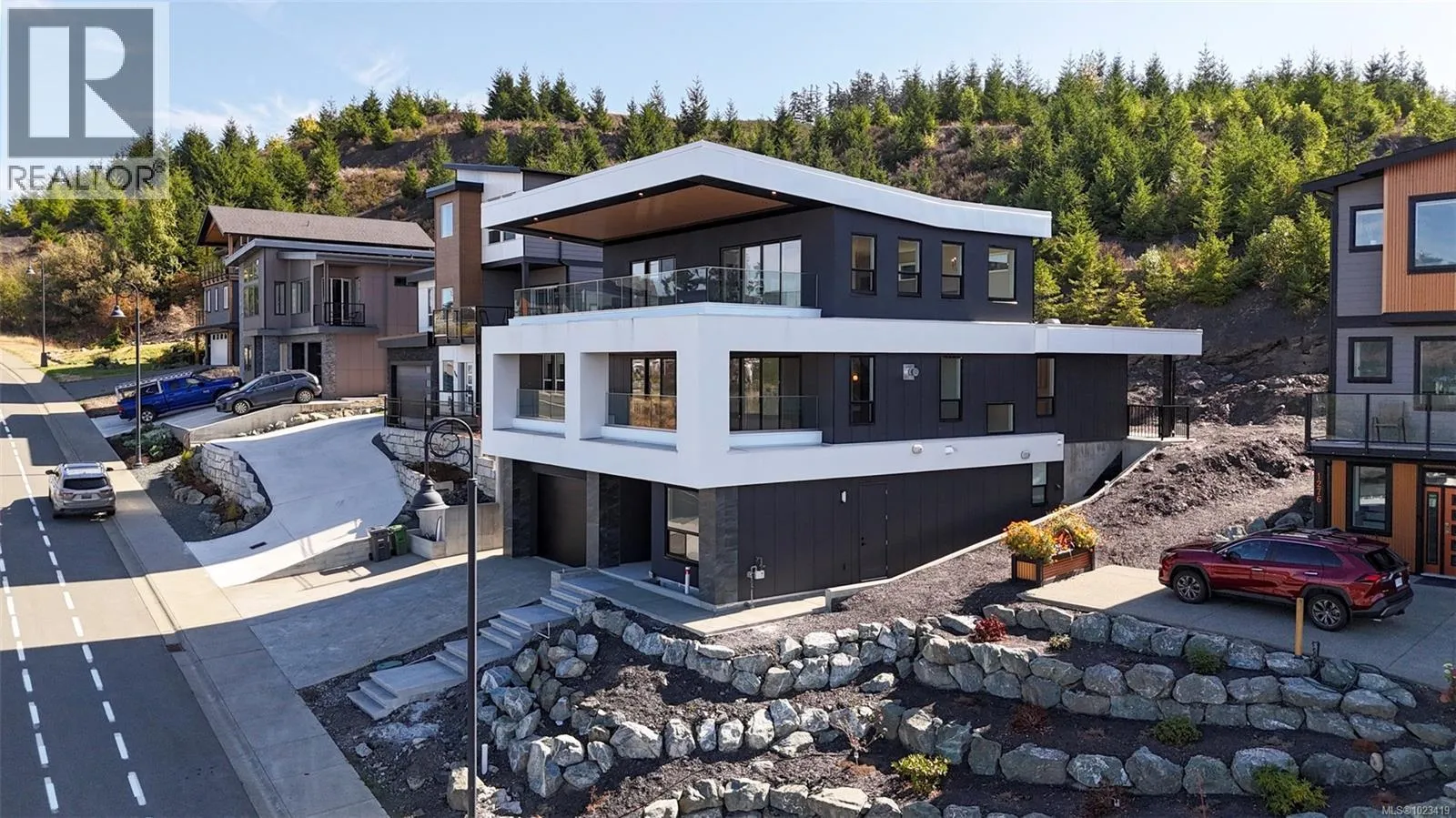 The Sky Houseâan executive-class residence in the prestigious Kingsview subdivisionâis now complete and ready to welcome its first owners. Offering over 4,000 sq. ft. of beautifully finished living space including a 722 sq. ft. 2-bedroom legal suite, and views to die for, this home delivers luxury, function, and income potential all in one. The main floor is anchored by the chefâs kitchen with walk-in butlerâs pantry. The expansive island has a unique waterfall quartz countertop with a prep sink and seating for 5. Top-end appliances, including a Dacor fridge and Electrolux induction range, bar fridge and dishwasher. Stunning cabinetry with face matched fridge, dishwasher and hood fan; tile backsplash with pot filler for convenience. The kitchen flows effortlessly to the dining and living room. The living room features herringbone engineered hardwood floors, gas fireplace with floor-to-ceiling tiled hearth and custom cabinetry, including a convenient computer station. The primary suite has custom integrated ceiling lighting a spa-inspired 5-piece ensuite with a glass-walled shower, rain shower head and an automated smart toilet, and walk-in closet. Upstairs, three generous bedrooms (two with walk-in closets, one with its own ensuite) surround a spacious lounge/TV area, making it the perfect family hub. Sliding glass doors lead to the huge 12â X 34â deck with the extraordinary views and the striking cantilevered roof. The lower level offers a media/office room with custom wet bar and heated tile floors. There is also a 3-piece bath with glass walled shower and access to the double garage. Also on the lower lever there is a fully self-contained 2-bedroom legal suite with its own private entrance and in-suite laundry. With breathtaking views, high-end finishes throughout, a prime location near town and Maple Bay, and a thoughtfully designed legal suite, The Sky House is a rare opportunity to own one of Kingsviewâs finest homes. (id:27476)
