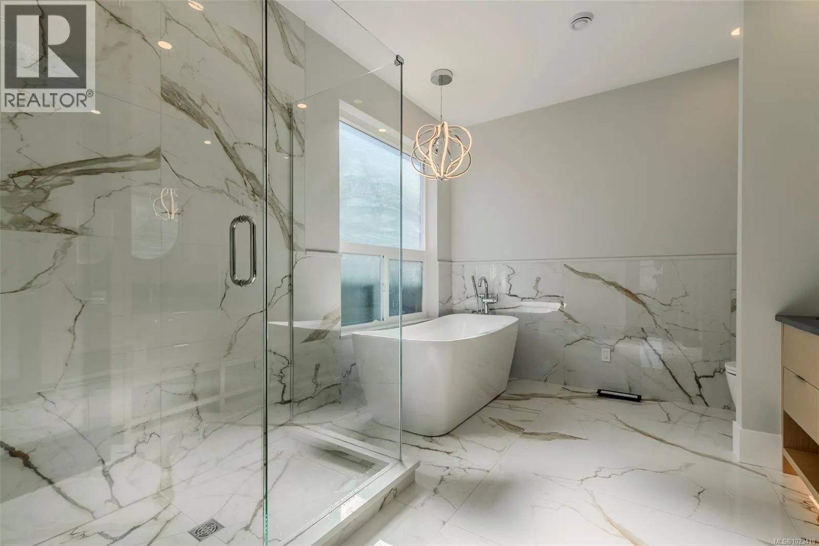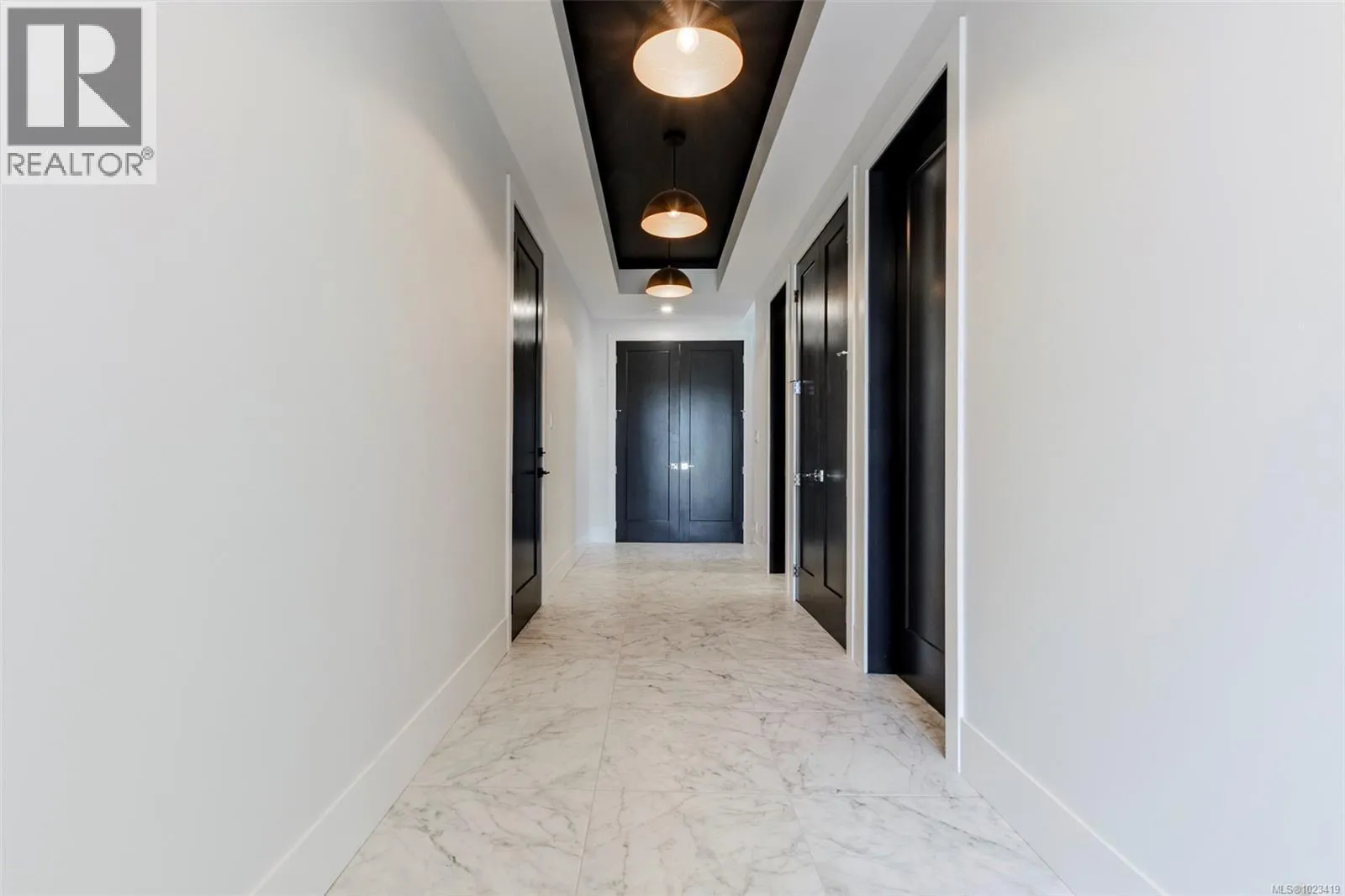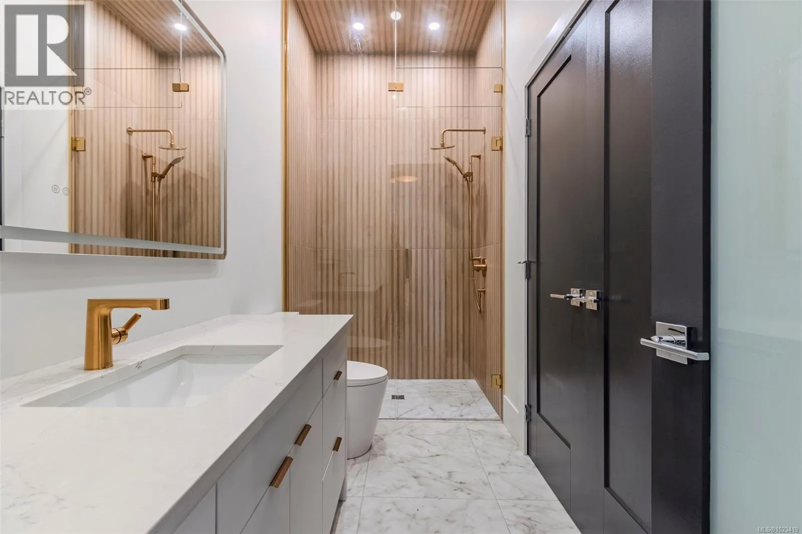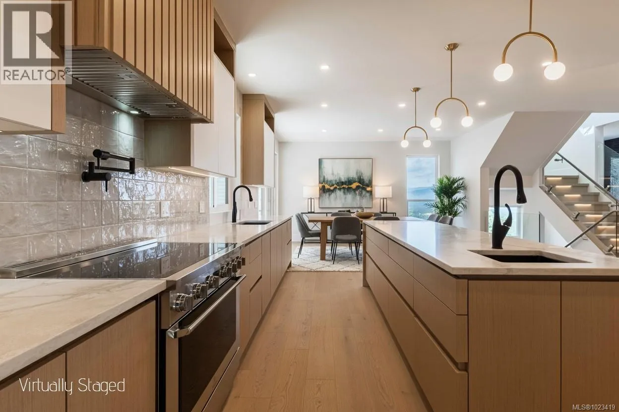 The Sky Houseâan executive-class residence in the prestigious Kingsview subdivisionâis now complete and ready to welcome its first owners. Offering over 4,000 sq. ft. of beautifully finished living space including a 722 sq. ft. 2-bedroom legal suite, and views to die for, this home delivers luxury, function, and income potential all in one. The main floor is anchored by the chefâs kitchen with walk-in butlerâs pantry. The expansive island has a unique waterfall quartz countertop with a prep sink and seating for 5. Top-end appliances, including a Dacor fridge and Electrolux induction range, bar fridge and dishwasher. Stunning cabinetry with face matched fridge, dishwasher and hood fan; tile backsplash with pot filler for convenience. The kitchen flows effortlessly to the dining and living room. The living room features herringbone engineered hardwood floors, gas fireplace with floor-to-ceiling tiled hearth and custom cabinetry, including a convenient computer station. The primary suite has custom integrated ceiling lighting a spa-inspired 5-piece ensuite with a glass-walled shower, rain shower head and an automated smart toilet, and walk-in closet. Upstairs, three generous bedrooms (two with walk-in closets, one with its own ensuite) surround a spacious lounge/TV area, making it the perfect family hub. Sliding glass doors lead to the huge 12â X 34â deck with the extraordinary views and the striking cantilevered roof. The lower level offers a media/office room with custom wet bar and heated tile floors. There is also a 3-piece bath with glass walled shower and access to the double garage. Also on the lower lever there is a fully self-contained 2-bedroom legal suite with its own private entrance and in-suite laundry. With breathtaking views, high-end finishes throughout, a prime location near town and Maple Bay, and a thoughtfully designed legal suite, The Sky House is a rare opportunity to own one of Kingsviewâs finest homes. (id:27476)