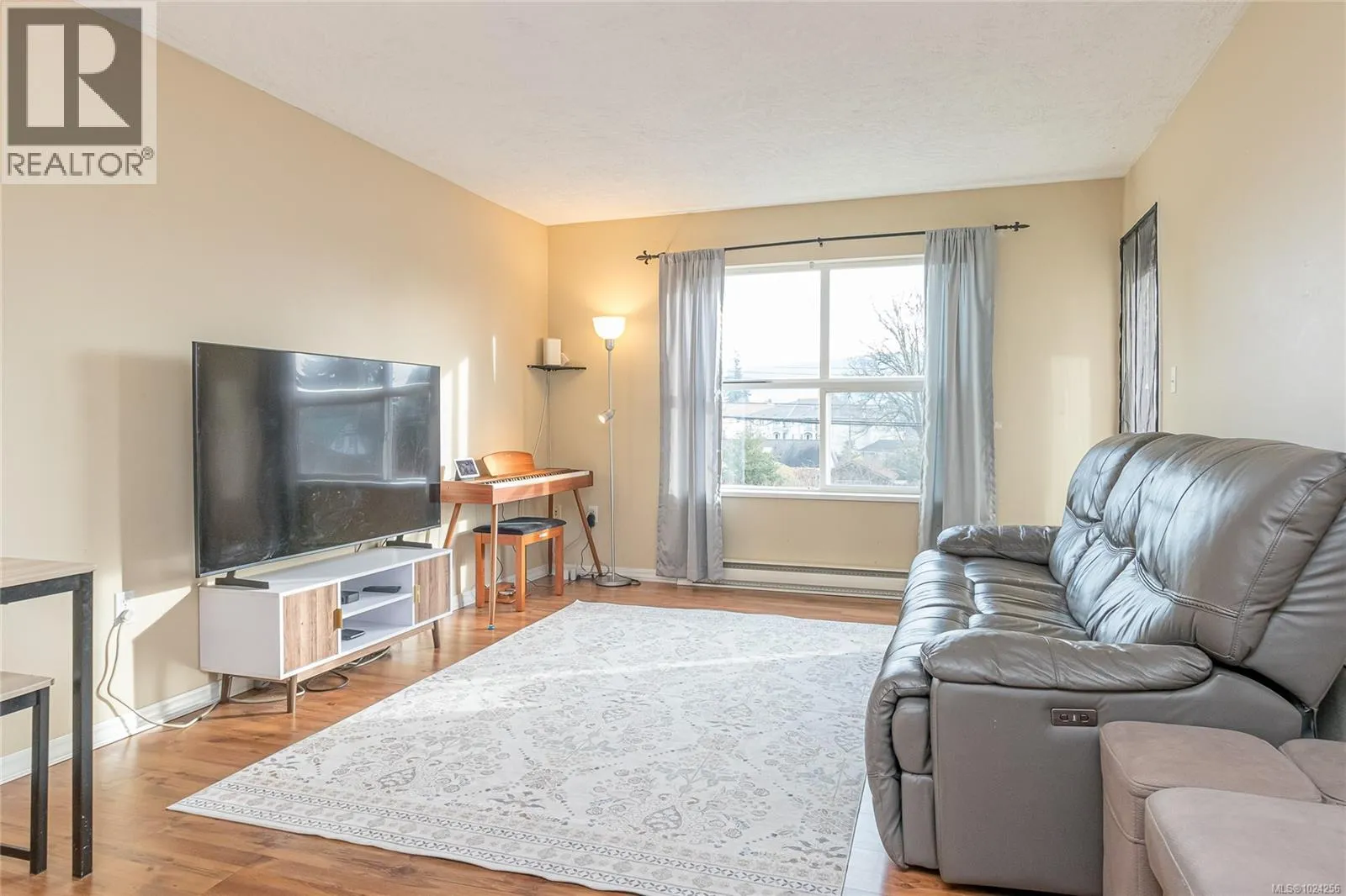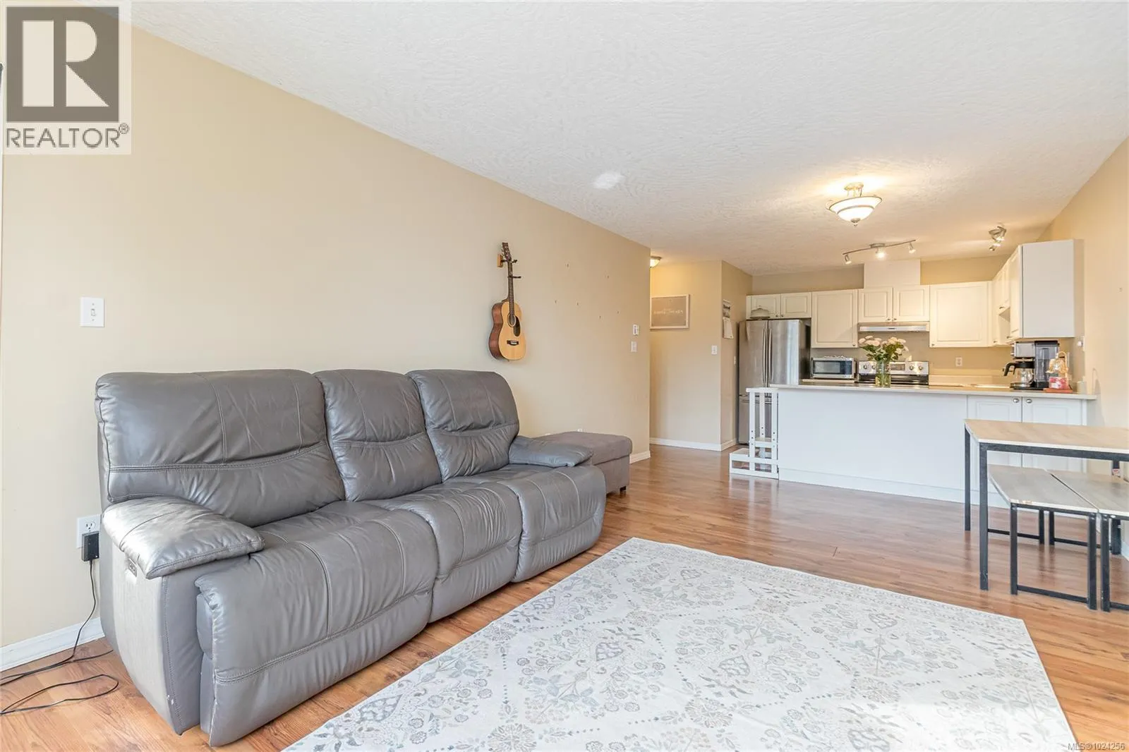 Tucked away on a quiet no-thru road, this top-floor, east-facing condo offers the perfect blend of calm and convenience. Start your mornings with natural light streaming into the open-concept living space and step out onto your private deck to enjoy the peaceful surroundings. The 912 sq ft layout features two comfortable bedrooms, a well-appointed kitchen with eat-at peninsula, and seamless flow between the kitchen, dining, and living areasâideal for relaxed living and easy entertaining. Immaculately maintained, the home includes in-suite laundry and storage for everyday ease. With rentals allowed and a pet-friendly policy (1 dog or 1 cat), this is a flexible option for a variety of lifestyles. Best of all, youâre just a short walk to downtown, shopping, and amenities, so you can leave the car at home and enjoy everything the neighbourhood has to offer. (id:27476)