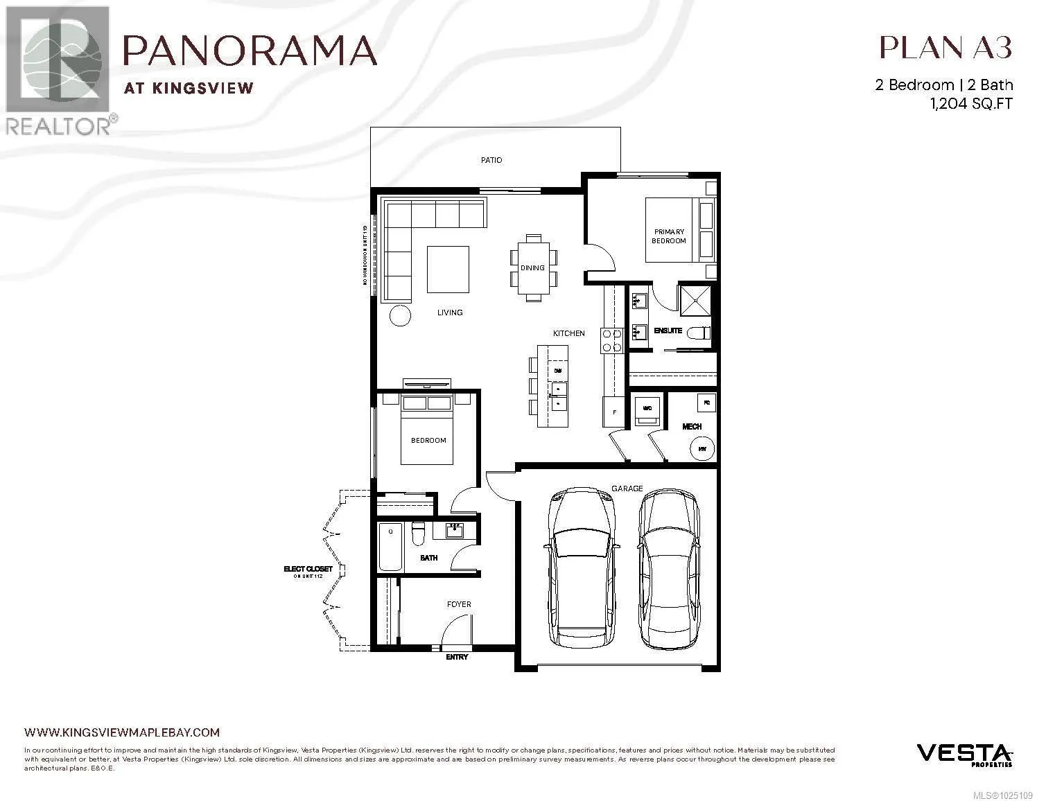 Panorama at Kingsview is a new collection of affordable, well-crafted townhomes designed for easy living in a scenic natural setting. Set in one of the Cowichan Valleyâs most desirable neighbourhoods, this community offers beautiful valley views and direct access to hiking and biking trails. This home features approx. 1,204 sqft of thoughtfully designed living space all on one level, including 2 bedrooms, 2 bathrooms, and a double car garage. Interiors boast bright, open-concept layouts with premium finishes, modern kitchens, and flexible spaces that suit a variety of lifestyles. Built with Vestaâs signature attention to detail and craftsmanship, these homes also qualify for a PTT Exemption and a FTHB GST Exemption âmaking them an ideal choice for first-time buyers, young families, or anyone looking to right-size without compromise. (id:27476)