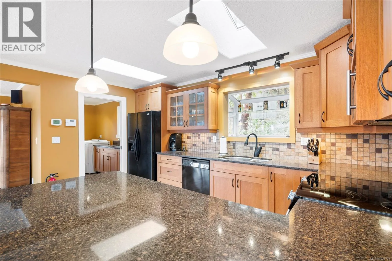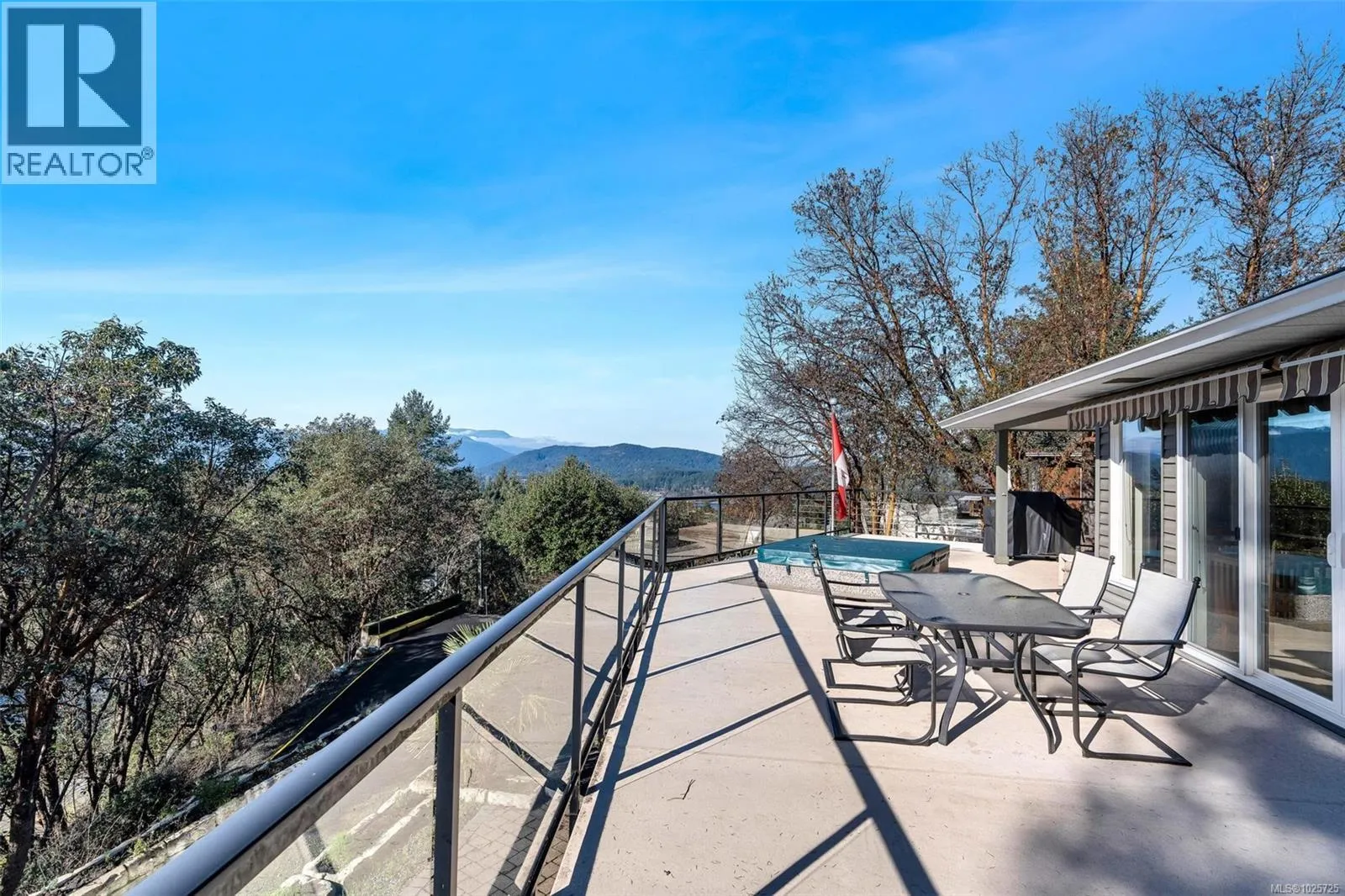 Welcome to 1158 Kathleen Dr. Perched in one of Maple Bayâs most sought-after neighbourhoods, this architecturally designed home captures sweeping views of Lake Quamichan, the Cowichan Valley & mountains. Offering over 2,510 sqft, the home features 3 bedrooms, 3 bathrooms, plus a spacious pool room that can easily be converted into a 4th bedroom, office, or den. Both levels include a primary suite with an ensuite. Solid oak hardwood floors, crown moulding and banks of windows enhance the bright main living areas, while the kitchen showcases warm wood cabinetry and granite countertops. Two propane fireplaces and a new hot water tank add comfort and efficiency. Step onto the expansive deck with glass railings, awnings and a built-in hot tub to soak in the views. A private paved driveway, professionally engineered retaining walls, an attached double garage, and exceptional boat/RV parking complete this private, tranquil property, offering ample storage. (id:27476)