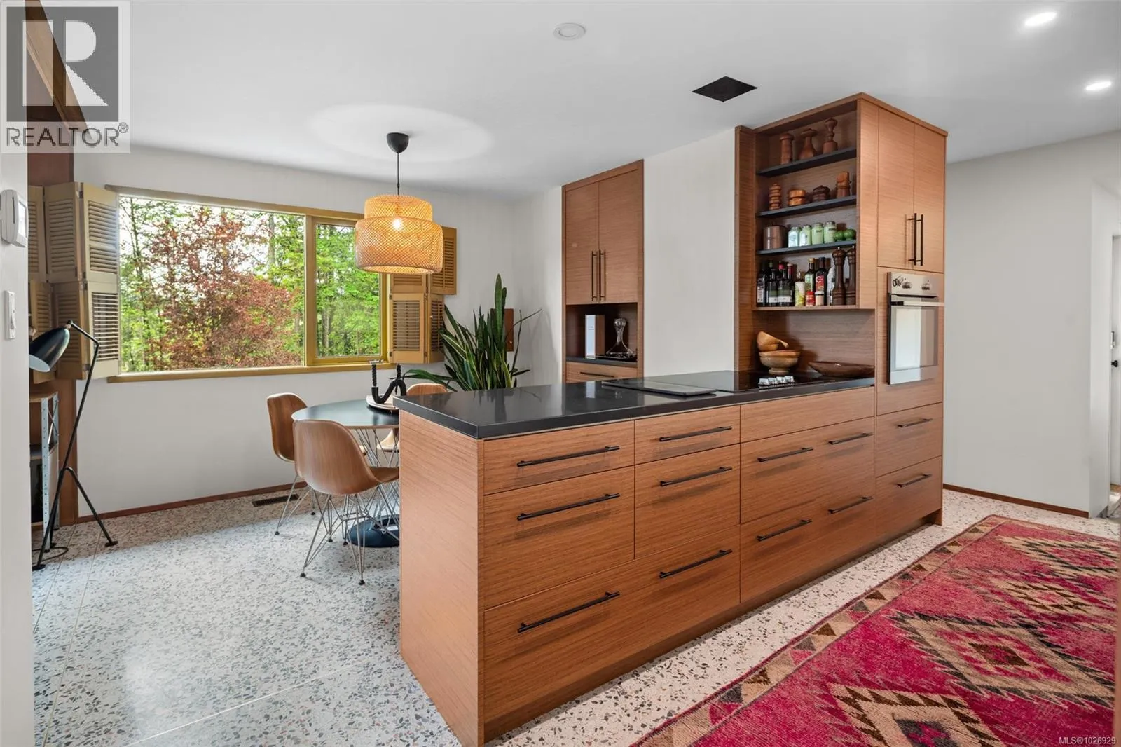 1955 REMASTERED MID CENTURY MODERN ICON Designed by legendary Harold Wong, this architectural showpiece offers a rare chance to live inside an artful masterpiece. Mahogany walls-interior & exterior, yellow cedar ceilings, concrete terrazzo floors, concrete soft finished floors, floor-to-ceiling wood framed windows-bringing the deep drama. BC stone fireplace crafted with local stone. Both kitchens boast solid maple cabinet boxes, eco-wood doors, corian counter tops and modern linear hardware adding a crisp architectural contrast. A versatile 2 bedroom/2 bathroom in-law suite with separate laundry flows separately out of the lower level. Behind the scenes, upgraded plumbing and electrical, brand-new deck membrane, and meticulous rock work blend seamlessly into the Clive Justiceâdesigned landscaped grounds. Outside, a multi-level waterfall flows into a cement pond framed by towering trees, offering complete privacy in the city. This isnât just mid-century modern itâs a mic drop. (id:27476)