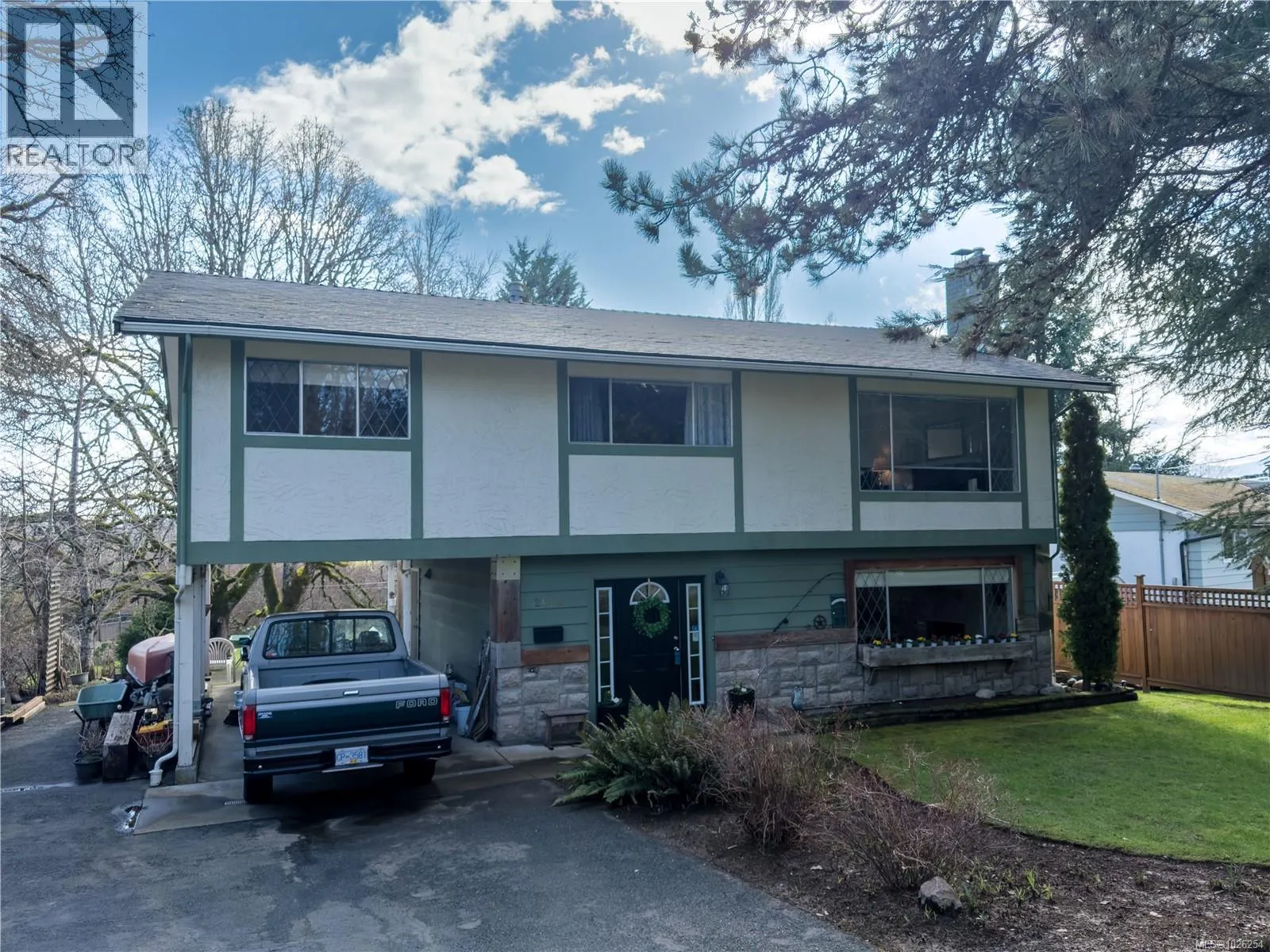 Located in one of Duncanâs more desirable neighbourhoods, this 3 bedroom, 2 bath home sits on just over 1/3 of an acre in a beautiful natural setting with mountain views and and a lovely creek bordering the back yard. Built in 1969 and offering approximately 1,800 sq ft, the home has been well cared for and provides a great opportunity to make it your own over time. Entry is on the lower level, with the main living space upstairs. The main level features hardwood flooring, a wood-burning fireplace, a dedicated dining room, kitchen with access to a massive deck, 3-piece bath, and a primary bedroom plus two additional bedrooms. Downstairs offers a family room with natural gas fireplace, a combined 3-piece bath and laundry area, and an unfinished storage room for additional space and storage. The yard is spacious and private, with mature Garry Oak trees, a fenced garden area, and a creek running along the rear of the property. A public lane borders the side, adding separation and access. There is also a carport, RV parking, concrete patio, and workshop under the deck. A solid home on a generous lot in a sought-after area of Duncan. (id:27476)