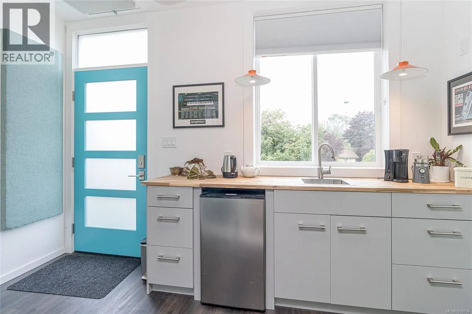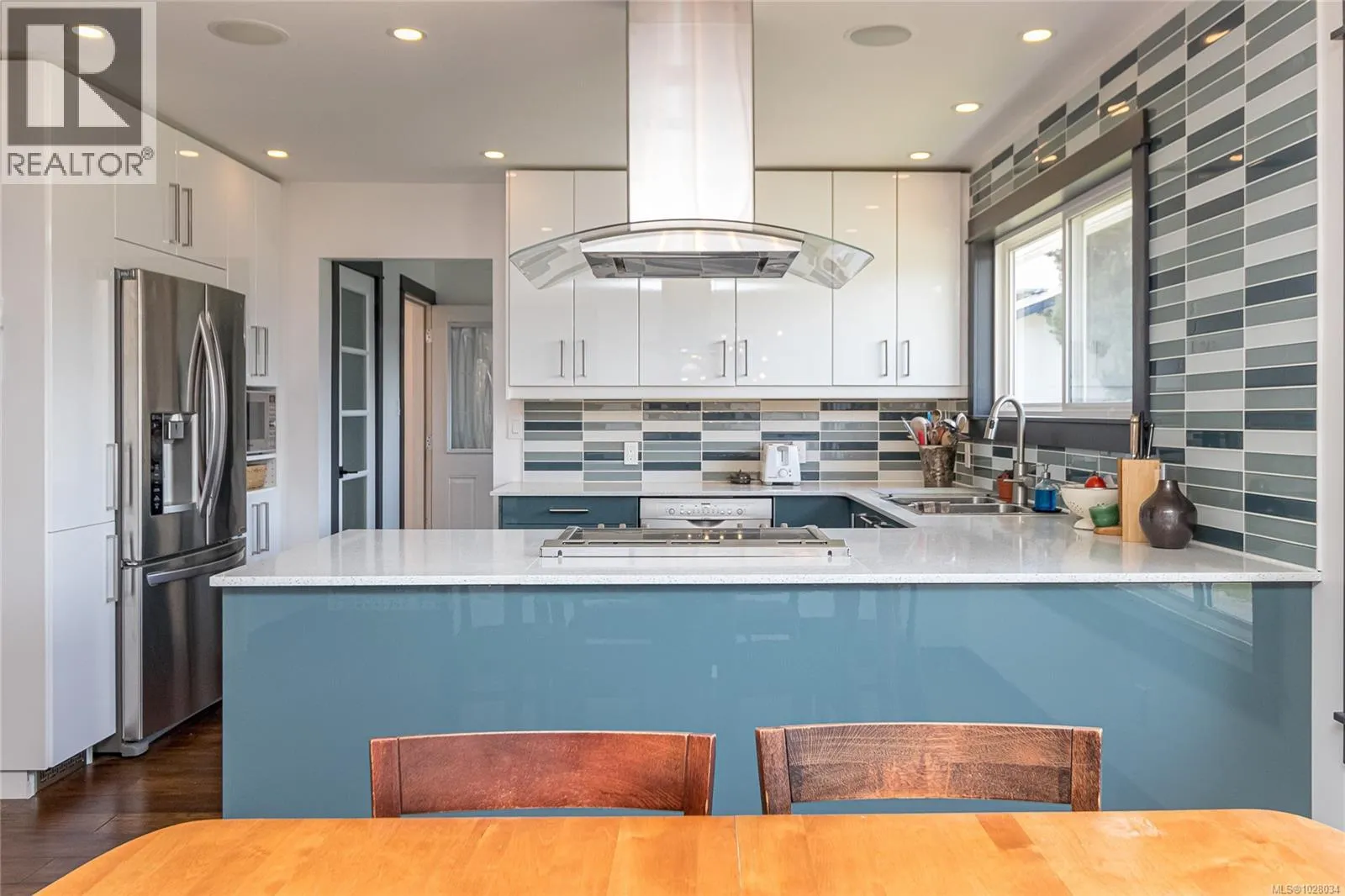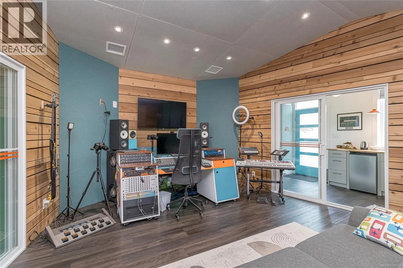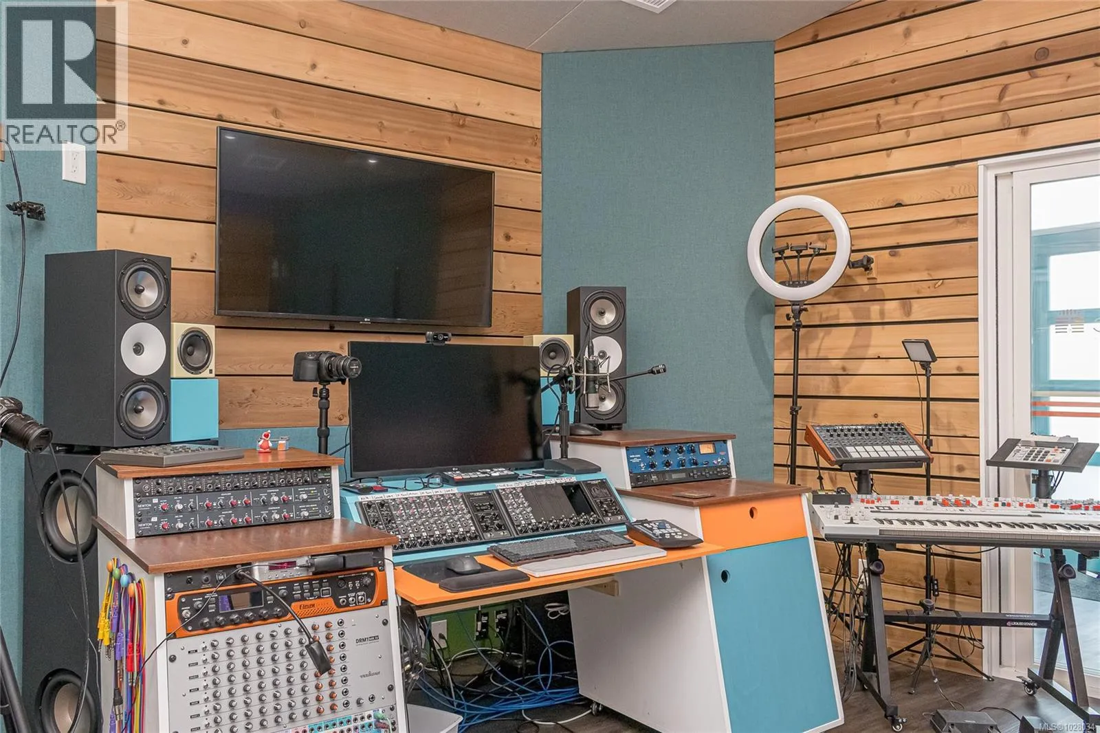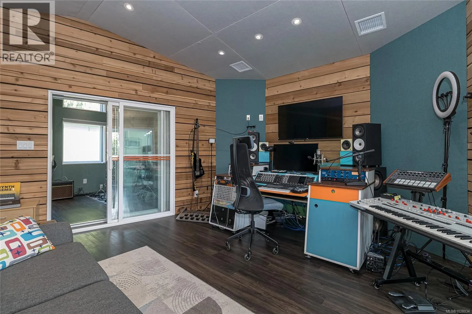 Updated Mid-Century Modern 3-bedroom, 3-bathroom home in a great Duncan neighbourhood blends design, comfort, and function. The homeâs main level features a chic living room with a balcony and southwest neighborhood views over Somenos Creekâperfect for morning coffee. The open-concept kitchen and dining area are ideal for entertaining, while the spacious primary bedroom, second bedroom, full bath with heated floors, and laundry add everyday convenience. There is built in sound system in the kitchen/dining, with speakers on the deck, and 7.1 surround in living room. Downstairs boasts a retro-style rec room with gas fireplace and kitchenette, plus a large third bedroom, full bath with heated floor, and an office/denâperfect for guests or extended family. For musicians, the highlight is the professionally designed recording studio connected to the home. With its own front entrance, the studio includes a spacious control room, tracking room, half bath, and lounge with mini-fridge and sink. A locking hallway ensures complete separation from the main living space, making it ideal for private sessions and/or professional. Studio has the flexibility to be used for a home-based business or potentially converted into a suite. Recording studio and home is wired for sound throughout. The large, partially fenced yard features a peaceful back patio, gardens, green house, garden shed, and plenty of room for gardening expansion. Zoning allows for a secondary suite as well as a detached accessory dwelling unit is also permitted. A rare opportunity to own a stylish home with built-in creative space in the Cowichan Valley! (id:27476)