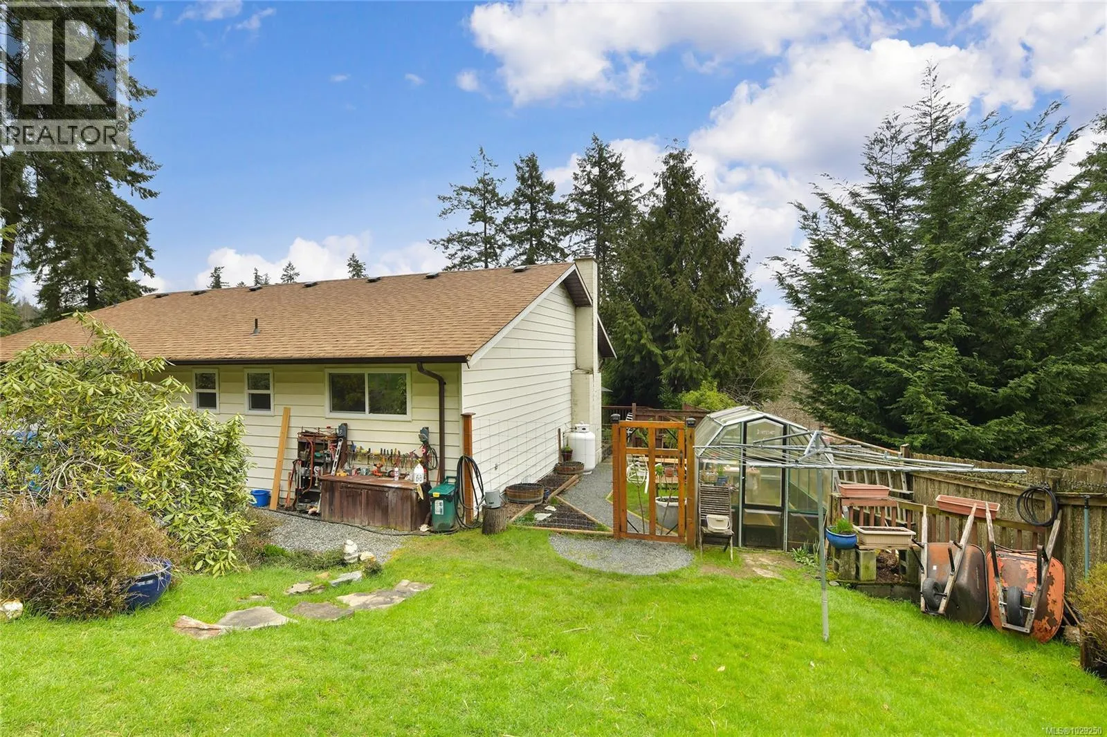 Nestled in a peaceful rural setting surrounded by lush greenery, vibrant gardens, and sweeping mountain, valley, and vineyard views, this charming 3-bed rancher blends comfort with classic country style. The interior offers a warm, welcoming atmosphere with wide doorways, a cozy propane fireplace, an inviting kitchen with updated appliances and Oak cabinets, spacious laundry room, large crawlspace, Primary bedroom complete with walk-in closet and ensuite. Recent upgrades include vinyl windows, deck, roof and gutters. Outside, the property features fruit trees, established gardens, a greenhouse, raised garden beds, multiple seating areas, a striking statement front door, an attached carport, generous storage, a greenhouse, fenced garden area, and peaceful walking paths and a beautiful arbutus tree. Enjoy plenty of parking as well! All of this is set within a vibrant rural community surrounded by rolling farmland, scenic backroads, local markets, wineries, and endless outdoor activities. (id:27476)