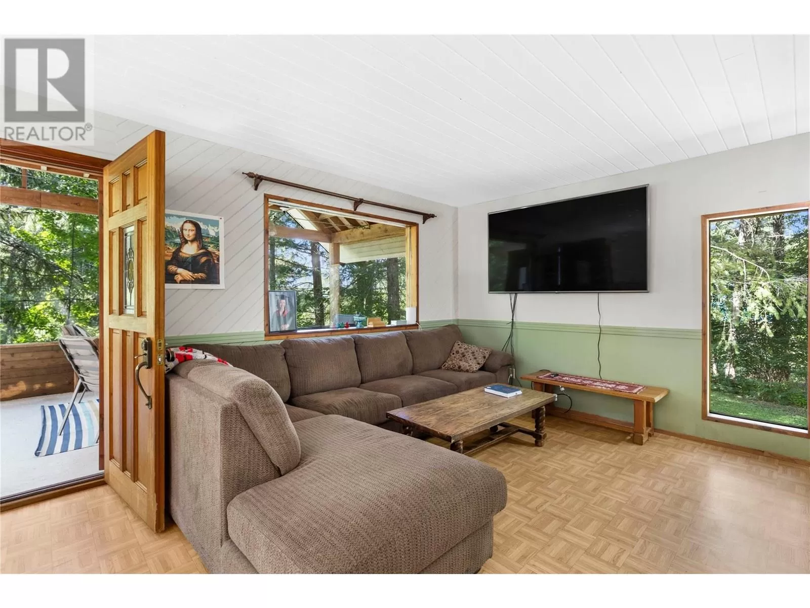If you want to escape the madness, drive along the shimmering shores of the Shuswap Lake to find this 8.28 acre, mostly treed piece of paradise. Take in the sounds of nature and mountain views from the large 28 x 10 screened porch. The home is a 1982, just waiting for your renovation ideas, with over 2400 sq ft of living space, heated by cozy pellet stove and electric baseboard, 3 bedrooms, 2 bath, with a unique European construction, with heaps of storage, and flex space for unlimited possibilities. Also included in this natural setting is a 2800 sq ft, 40 x 70, 15 year old 26 gauge steel shop, with a designated office space , and baseboard heat, 2 separate driveways, separate hydro meter, 16 foot ceilings, 14 foot electric overhead door, concrete floor, and a 16 x 70 attached lean-to, perfect for a business or recreation storage. This property has abundant water and sunshine, located on the corner of Ivy Road and Cameron Road. Zoning is in place for a second dwelling, with potential timber sales, and direct access to unlimited crown land trails for year round recreation. Just 5 minutes down the road to Shuswap Lake and beaches or 5 minutes the other direction to Herman Lake and a short haul to White Lake., and Eagle Bay provides a 7 day/ week liquor and grocery store, a community hall with a new playground, recreation facility, summer camp, and the school bus stops at the bottom of Ivy Road for those young families. Bring your ideas and dreams of ""Life in the Shu"". (id:27476)