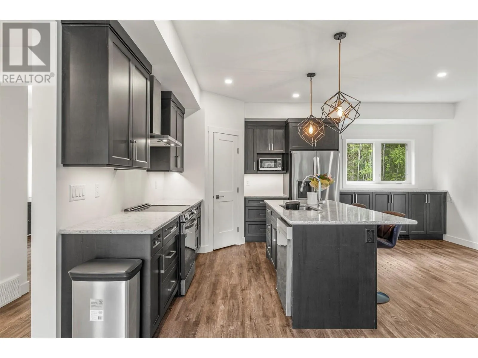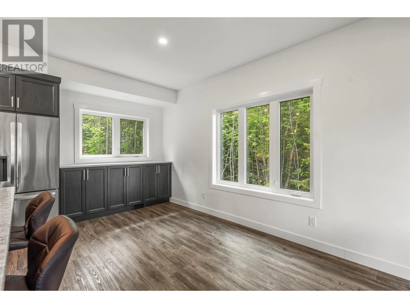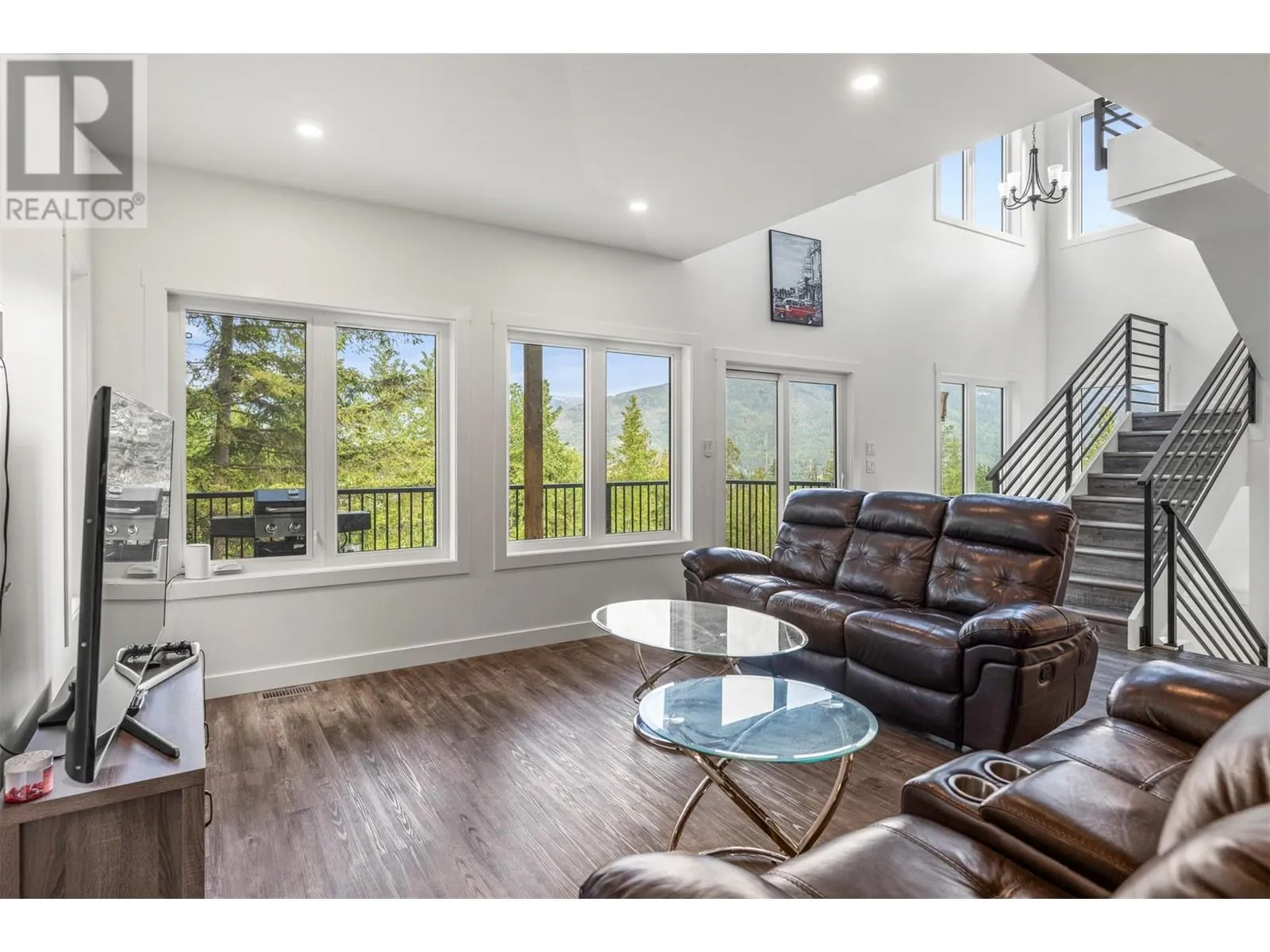 Your Modern Lakeview Sanctuary Awaits. This Eagle Bay property is a rare blend of peace, privacy, and pristine new construction. Perched above shimmering Shuswap Lake, this 2024-built retreat offers contemporary comfort with breathtaking lake, valley, and mountain views. Set on a generous, gently sloping one-acre lot that backs onto crown land, serenity is your closest neighbor. With four spacious bedrooms and four bathrooms, the 2411 sq ft interior was designed for effortless living. Sunlight drenches through oversized windows, illuminating the gourmet kitchen and an open-plan main floor that flows seamlessly onto two private decks, perfect for coffee at sunrise or stargazing at night. The master suite is a true retreat, complete with a steam shower and stunning views. Downstairs, a custom bar and entertainment zone invite you to unwind, with space for games, movie nights, or simply relaxing by the wood-burning fireplace. Two SeaCans, wired for 50 amp and heat/AC prep, stand ready to become your dream workshop or creative studio. Extras include tons of RV parking, new septic, central air, water softener, and a registered boat buoy at nearby Shannon Beach. With no GST and a new home warranty, this property is a haven that blends wilderness escape with modern ease, take a look today. (id:27476)