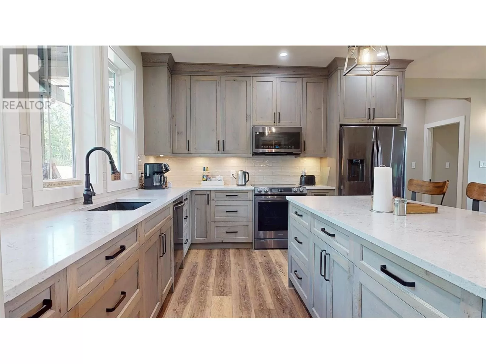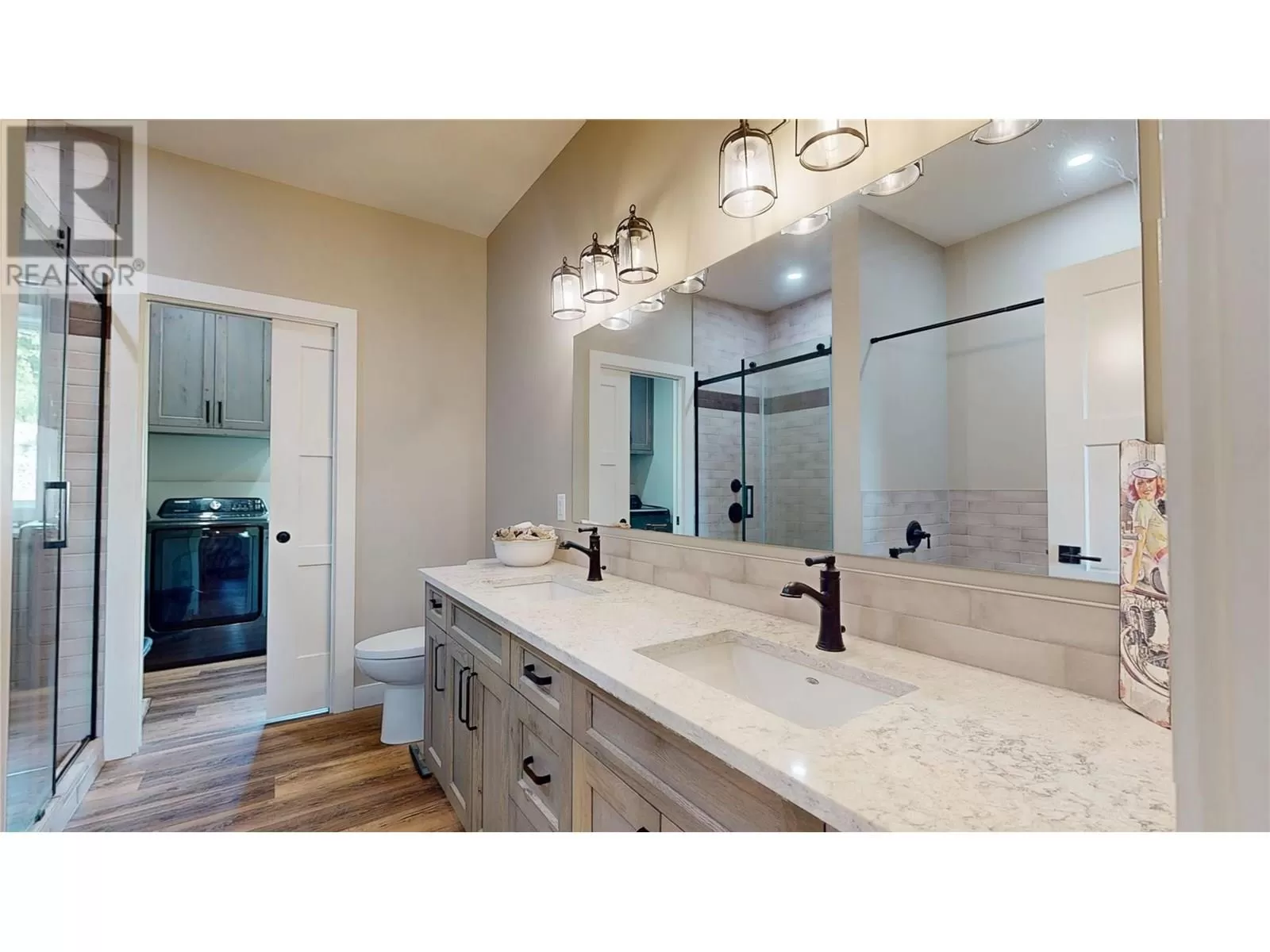 Country stores, horses and school buses paint the landscape in sunny Eagle Bay. Located just 18 minutes to the TCH on a beautiful lakefront road and 10 minutes to all the fun restaurants and farmers markets in Blind Bay This quiet area is home to many happy homesteaders who enjoy relaxed rules and serene privacy. Acreages with quality newly-built homes are a rare find and this one is exceptional. Upon entry, you are greeted with an open concept vaulted living plan that captures the stunning lake and pastural views beyond. A huge covered deck is the star attraction in this right-sized almost 3000 sf country home providing 5 bedrooms & 3 full baths, all with tubs. The suite below has its own private entrance plus interior stairwell if you choose to join the 2 living quarters. Quality finishes and 9 foot ceilings are consistent on both levels with attention to soundproofing evident offering flexibility for unique family arrangements. Air Conditioning & a forced air propane-fired furnace is a wise HVAC choice accompanied by back-up power from a Generator. RV parking is allowed on this 3 acre property, equipped with 2 RV electrical sites. Zoning allows a second dwelling up to 1500 sf. Engineered Septic system is almost brand new and a private Community Water Utility supplies endless quality water. There is a separate, detached 29X29 heated garage discretely located to the side of the view. Just 5 minutes to Shuswap lake public beaches and boat launches Too!. (id:27476)