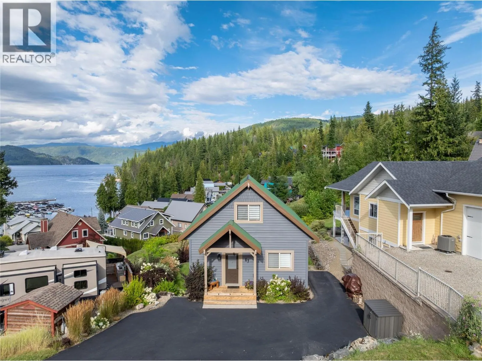 Unit 67 in Wild Rose Bay, so much to offer in this adorable cottage you will fall in love with at first sight. If you are looking for the perfect modern cottage to find your vibe, then this is it. Not only will you enjoy the custom coffee bar in the mornings as you wait for that slow pour-over, but you can also gaze out at the lake views and mountains from almost every window. The main floor balcony overlooks the lake and backs onto the common area green space. Below you have a covered balcony and lawn area and your own firepit. Updated 3 bed 2 bath home is ready for all your getaways or year-round living. Wild Rose Bay is a fantastic bare land strata on the shores of the Shuswap which offers each owner their own secure boat slip, low strata fees, a community water and sewer, garbage and snow removal plus more. Pets allowed, short-term rentals not allowed. Common property storage for boat trailers, etc. Must see to appreciate, furnishings are negotiable. Maximum boat length for owners in the marina is 24ft. Check out the 3D tour. (id:27476)