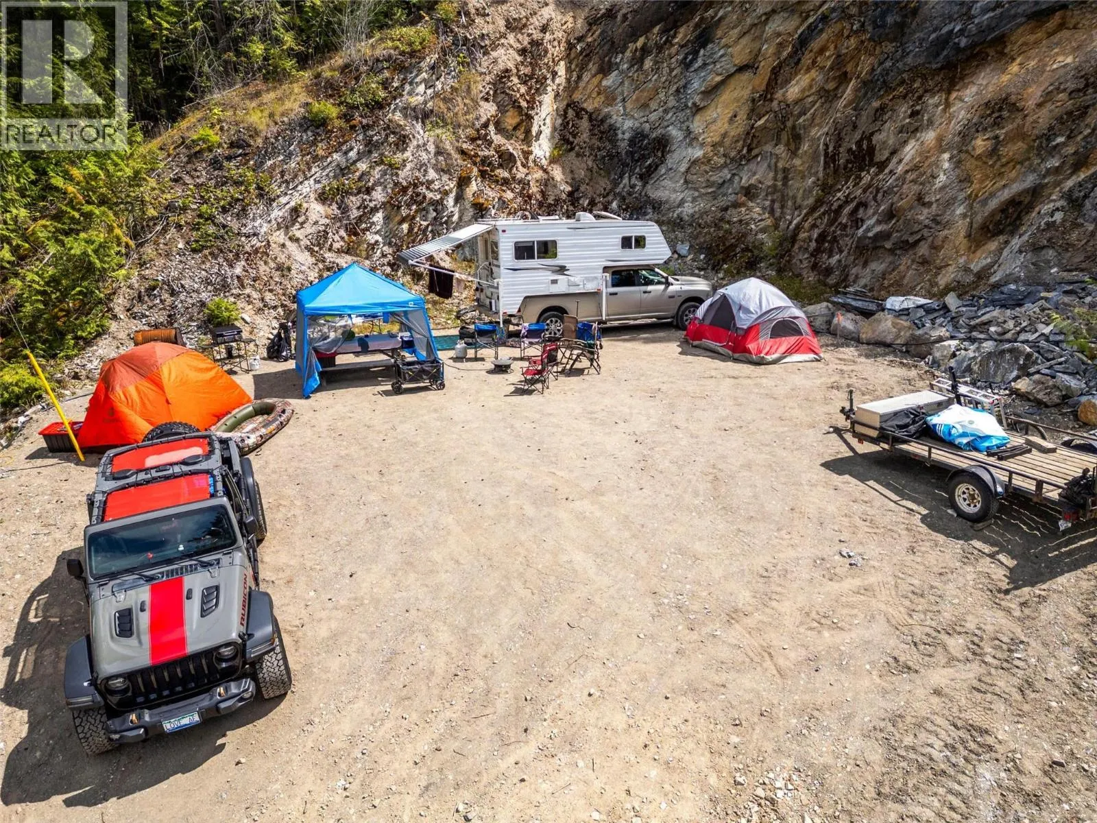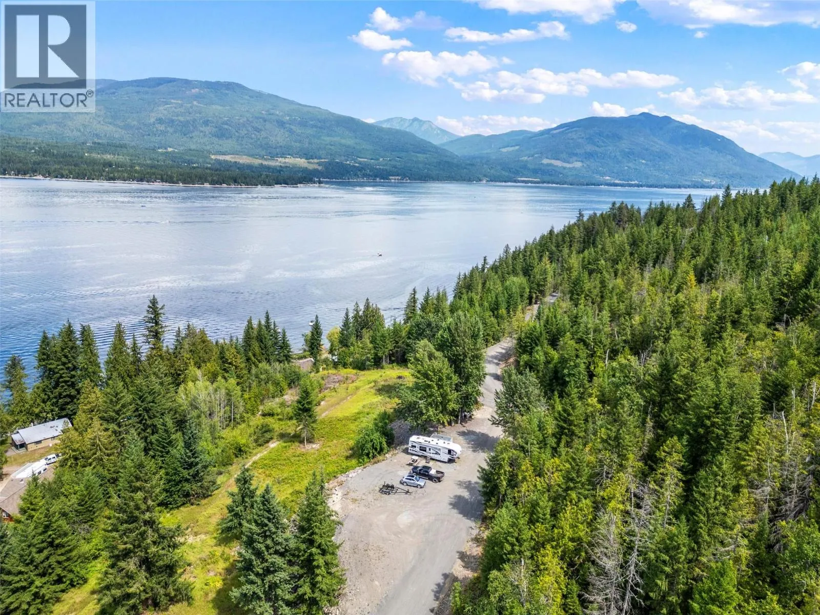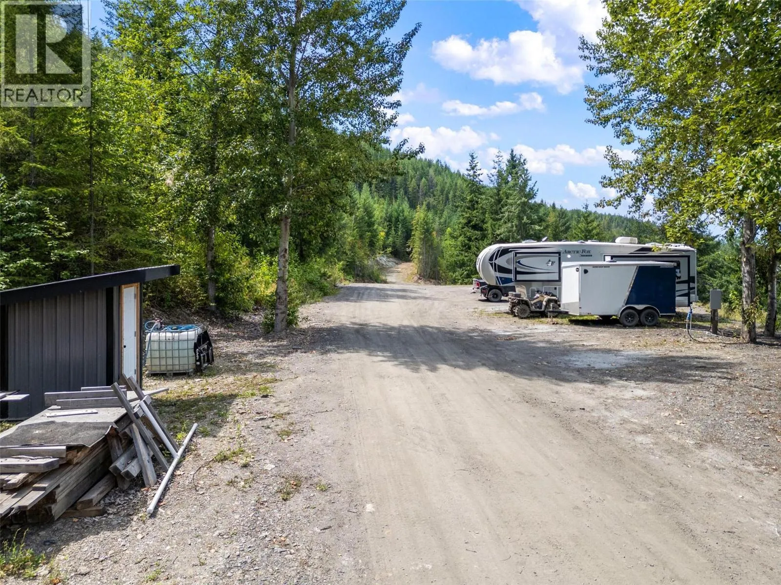 Rare 105-acre lake-access development opportunity featuring extensive high-value infrastructure and RR1 zoning flexibility. This highly improved property offers diverse potential, including a 33+ lot subdivision of 1-hectare parcels within existing RR1 zoning, a premier mountain bike park, 150+ lot campground, or a luxury 100+ acre private estate (Any developments are subject to district confirmation). The site is ready with over 4 km of newly installed engineered gravel roadways, permitted culvert for creek crossing, and three separate access/egress points. Water provided by four drilled wells, with a primary well producing 21.5 LPM, quality and quantity tested, with secondary wells validated for future expansion. Professional 3,200sqft executive home plans are already district-preapproved and included with the sale. Waterfront amenities include three deep-water buoys and convenient lake access. Plenty of available timber and extra on-site gravel for road maintenance or future projects. Currently 34 camping sites are cleared offering immediate recreational utility. Whether you envision a luxury gated community, a mixed-use residential/resort model, or a singular lakeside trophy estate, this property provides the scale and infrastructure to execute. Buyer to verify all development inquiries and subdivision density with the CSRD. (id:27476)