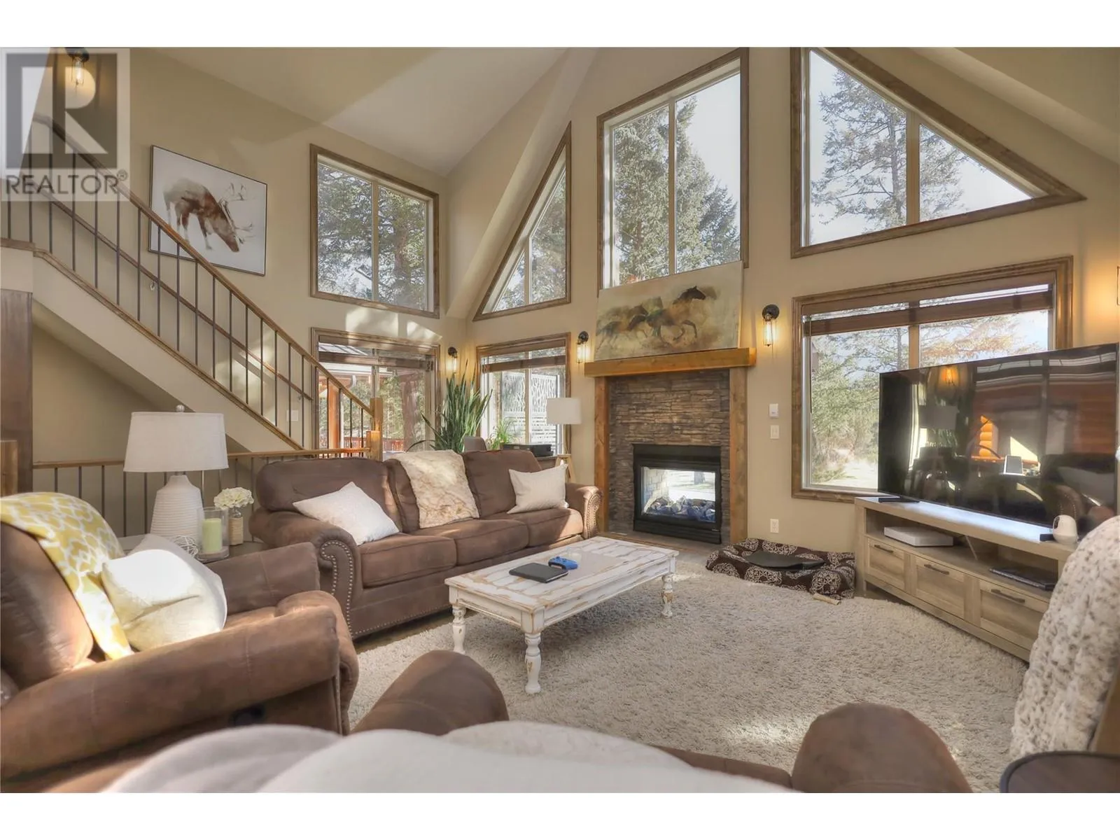 The Valleys Edge Resort caters to adventurers and leisure-seekers alike and boasts an impressive array of four-season activities and amenities for all ages. Whether scaling rugged cliffs, skiing, golfing, hiking or biking, there's something for everyone. Retreat to your private cottage perched on a large lot overlooking the valley. Imagine spending evenings by the fire pit in the backyard, taking in the incredible views. The partial wrap-around deck provides a perfect spot to relax. Inside, the see-through gas fireplace bridges the cozy living room and the outdoor deck, creating a harmonious blend of indoor and outdoor living. This 3-level home includes one bedroom and 1.5 bathrooms, with the upper level dedicated to a private primary bedroom retreat, a reading nook, and a luxurious 4-piece ensuite. The living room features a soaring vaulted ceiling and ample windows that invite natural light and mountain vistas. The custom kitchen has Silestone quartz counters, stainless steel appliances, a walk-in pantry, and a hammered copper farmhouse sink. The basement includes a rec room, a bonus room & laundry. Resort amenities include a log clubhouse with a dance floor, kitchen, library, fitness facilities, meeting space, outdoor pool, tennis court, basketball court, beach volleyball court, lawn badminton court, amphitheatre, and children's playground. Make this your getaway! (id:27476)