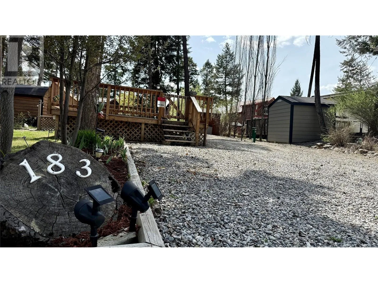 Welcome to Lot 183 at Valley Edge Resort â your perfect getaway and an excellent opportunity to embrace recreational living at its finest. This spacious recreational vehicle lot is ideally located and offers a peaceful, private setting surrounded by mature trees. It features a large deck, a convenient shed, and a cozy fire pit â everything you need to unwind and enjoy the long, warm summer days. The heavy lifting has already been done, so all thatâs left is for you to relax and make the most of your time here. Valley Edge Resort boasts outstanding amenities, including a swimming pool, tennis and pickleball courts, a gym, washroom and laundry facilities, and a games room â everything you need to make every visit comfortable and enjoyable. Start making unforgettable memories today on the warm side of the Rockies. (id:27476)