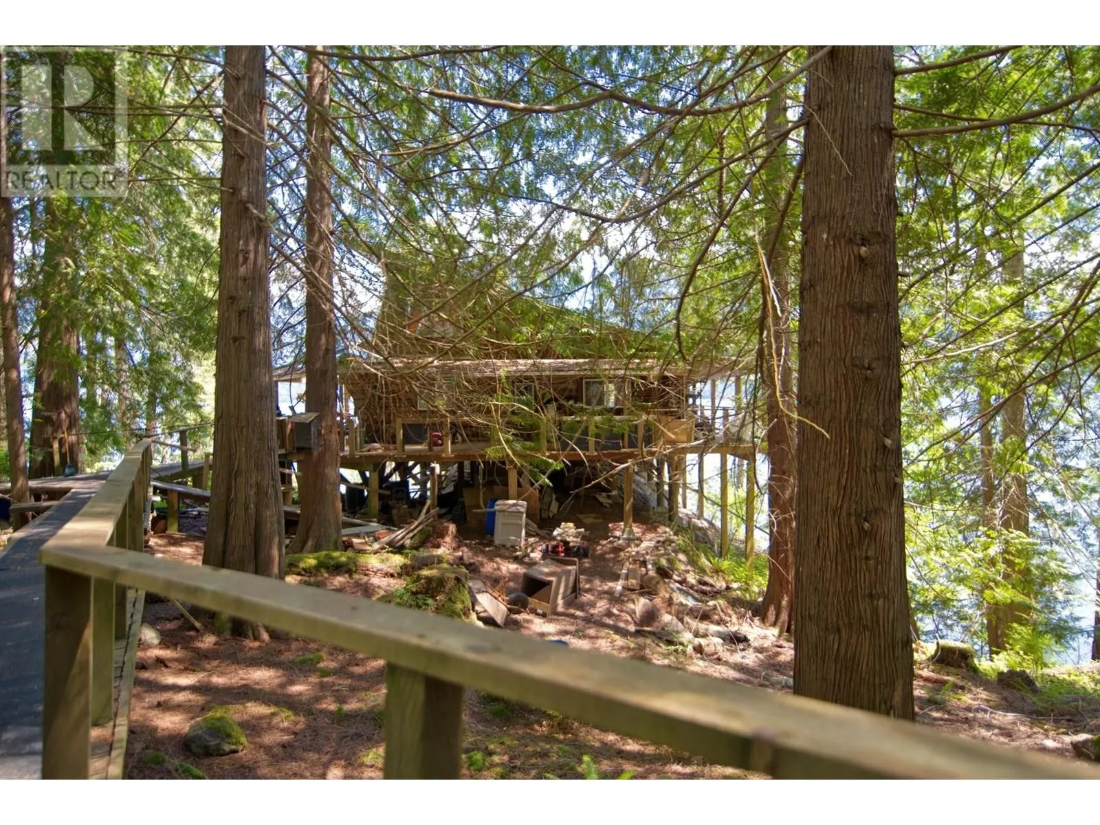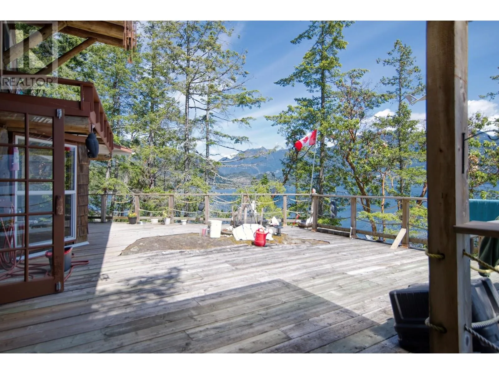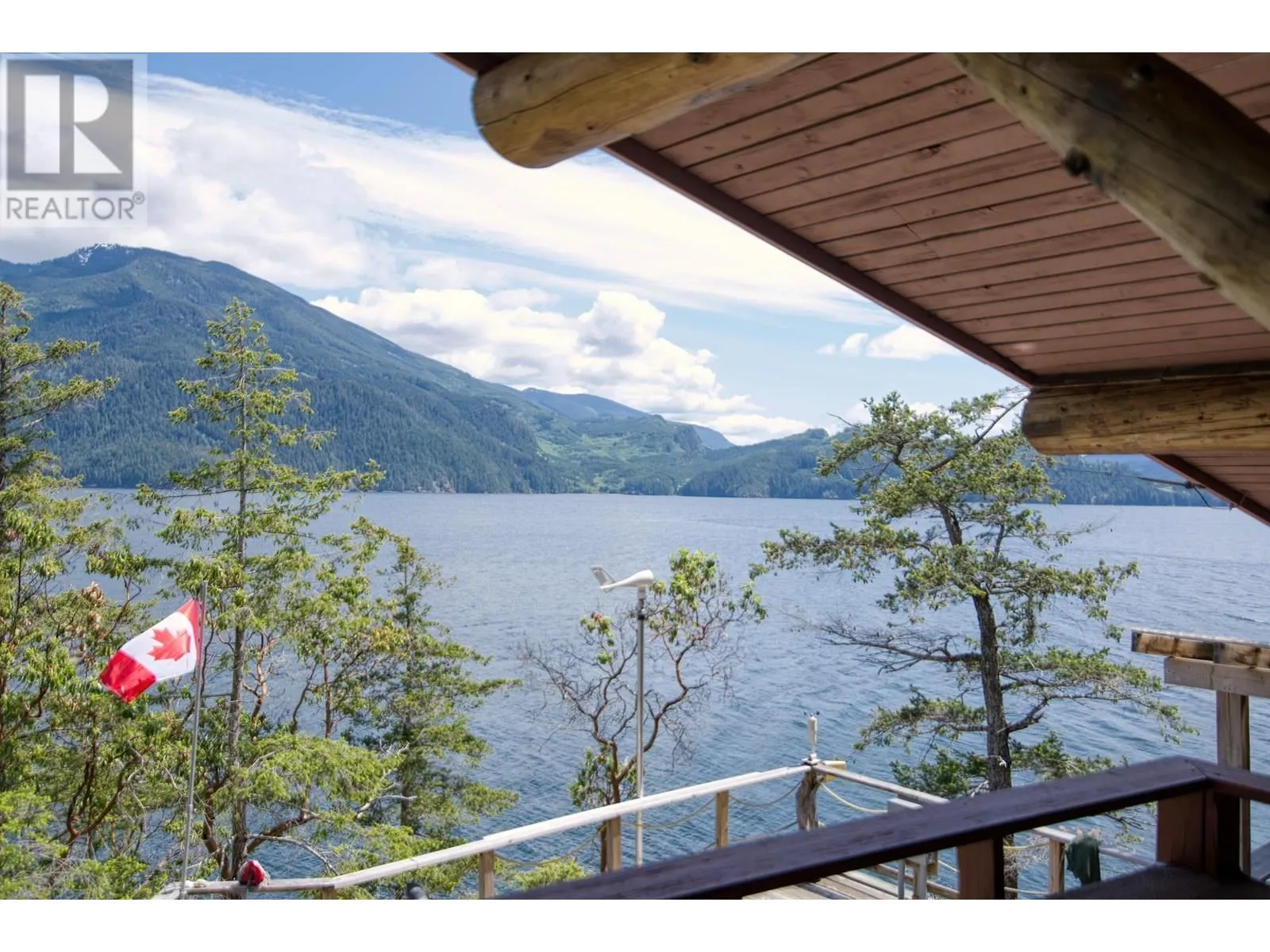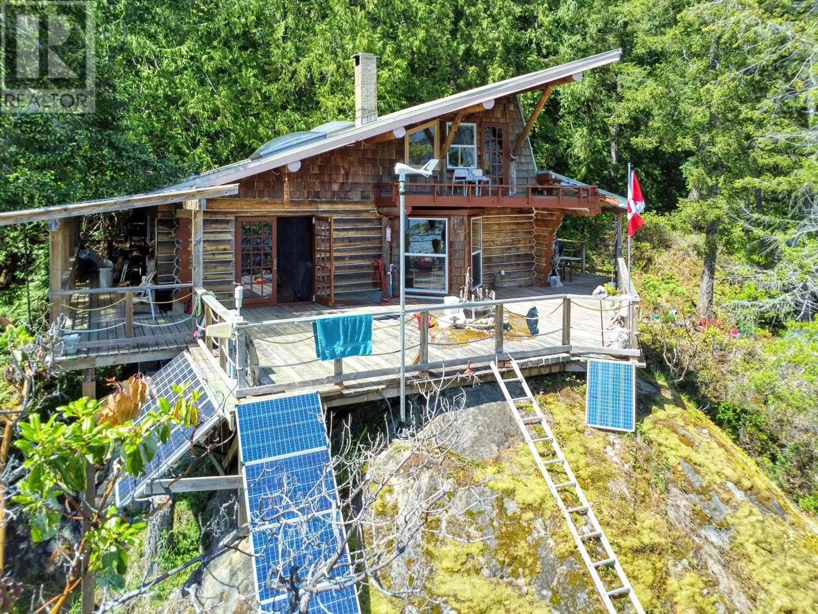Fully furnished 1,600 sq. ft. oceanfront log home in Goliath Bay, Jervis Inlet-just a 15-minute boat ride from Egmont. Includes 1/3 ownership in 52 acres with 5 acres of exclusive use, shared dock, water system, and beach access. Off-grid setup with solar panels, battery bank, inverter, generator, propane stove, fridge, hot water, and wood fireplace. 1.5 storeys with 3 bedrooms, 1 bathroom, and a large wraparound deck. Expansive views of Jervis Inlet and the coastal mountains. Abundant marine life-watch whales, orcas, and dolphins from your deck. Not in foreign buyer ban area. Boat or floatplane access only. Call to book your appointment to view. (id:27476)