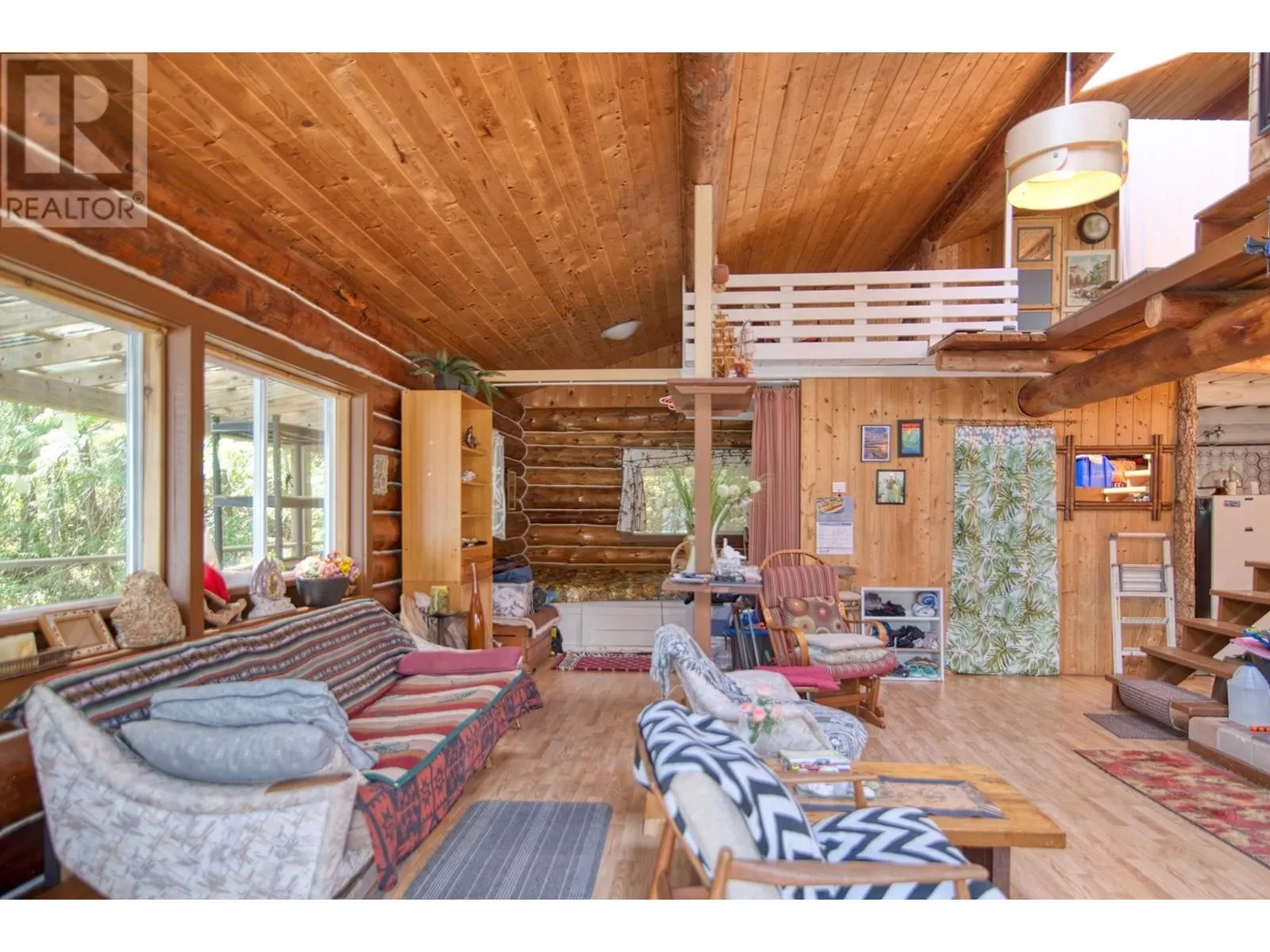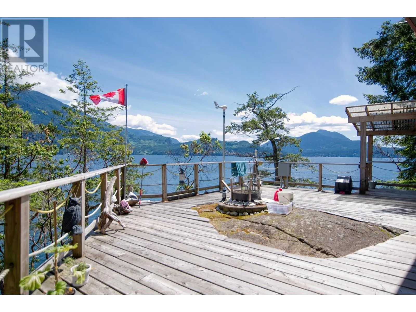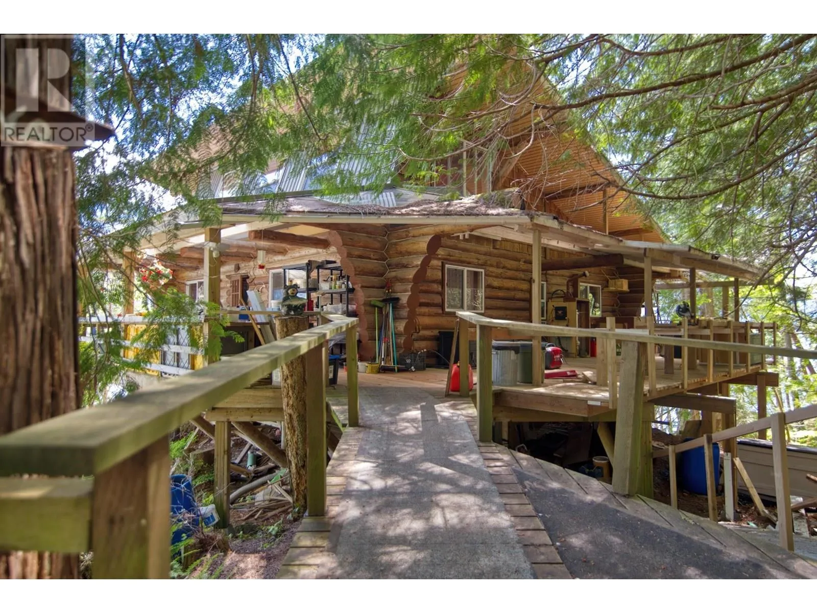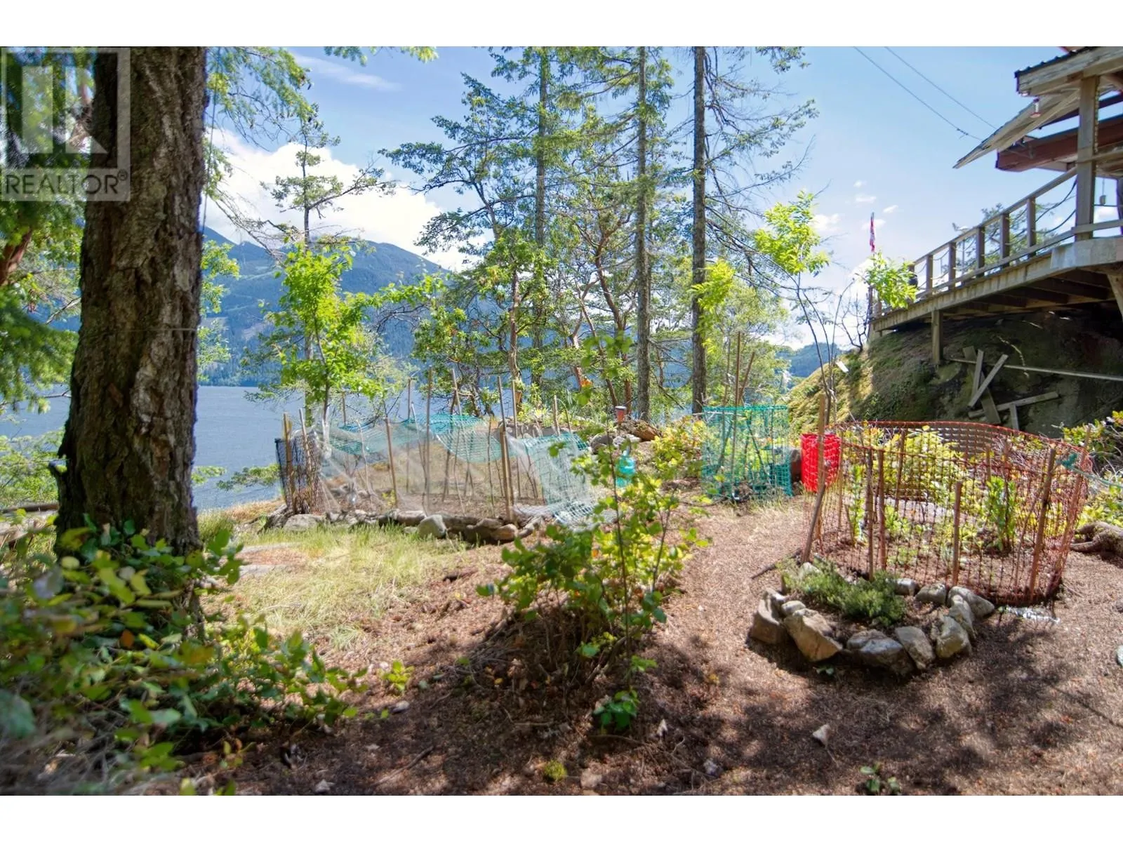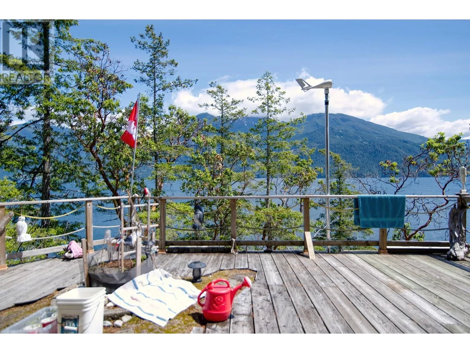 Fully furnished 1,600 sq. ft. oceanfront log home in Goliath Bay, Jervis Inlet-just a 15-minute boat ride from Egmont. Includes 1/3 ownership in 52 acres with 5 acres of exclusive use, shared dock, water system, and beach access. Off-grid setup with solar panels, battery bank, inverter, generator, propane stove, fridge, hot water, and wood fireplace. 1.5 storeys with 3 bedrooms, 1 bathroom, and a large wraparound deck. Expansive views of Jervis Inlet and the coastal mountains. Abundant marine life-watch whales, orcas, and dolphins from your deck. Not in foreign buyer ban area. Boat or floatplane access only. Call to book your appointment to view. (id:27476)