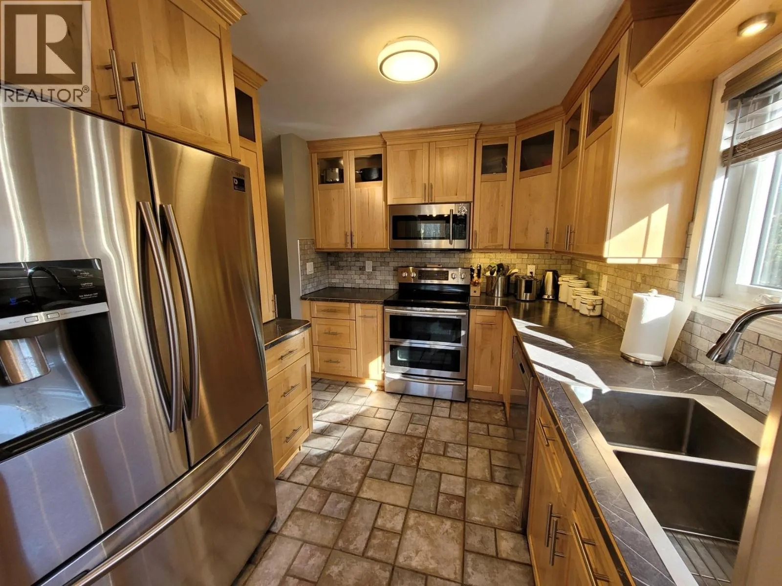 Move in ready, pride of ownership, fantastic south facing family home. This 3 bedroom, 3 bathroom home has the perfect location, walking distance to school and Chauncey market. Great curb appeal with a large fenced corner lot that has triple gate access to the backyard. Hardie board siding, most windows, and exterior doors, including the garage door, were updated in 2015. New roof in 2016. Inside does not disappoint, beginning with the bright entry. Upstairs, the kitchen was updated in 2019 with custom maple cabinets that have all the features we have come to appreciate like soft-close cabinet doors, pull out pantries and spice cupboards. Under cabinet lighting, SS appliances and a Bosch dishwasher. Wide plank engineered oak hardwood flooring was installed at the end of 2019. The 2 upstairs bedrooms have ample closet space and the master has a 2-piece ensuite. Downstairs continues to impress with a 3rd spacious bedroom and large family room anchored by a wood stove. The laundry is conveniently located upstairs. In the basement you will find the convenience of a washing sink near the garage, garage access, and a good-sized storage/utility room. A 3-piece bathroom completes the fully developed basement. Outside provides even more reason to make this your forever home with a storage shed, boat shed, wood shed, and a private deck with stunning mountain views that create the perfect backdrop for making memories. (id:27476)