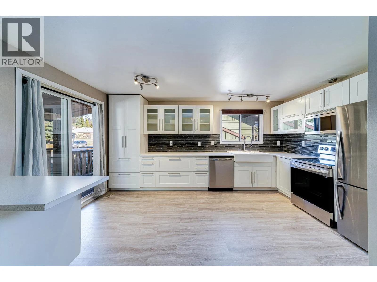 Welcome to 720 Balmer Drive â a well-maintained 4-level split offering exceptional space, flexibility, and comfort with 5 bedrooms and 3 full bathrooms. The main level features an updated, spacious kitchen with modern white cabinetry, glass-front accents, stainless steel appliances, and a stylish tile backsplash. Sliding glass doors open to the front deck, perfect for enjoying morning coffee or evening sunsets. The adjoining living room is bright and inviting, showcasing floor-to-ceiling windows and a decorative rock fireplace, with plenty of room for dining and entertaining. Just a few steps down, the primary suite includes a large walk-in closet and a beautifully updated ensuite with a glass-enclosed shower and designer tilework. Two additional bedrooms on this level offer versatility for a home office, nursery, or hobby space. The third level provides a massive family and recreation roomâideal for gatherings or relaxing movie nightsâalong with a large utility room offering excellent storage and secondary fridge/freezer space. The basement level features a walkout entrance, two additional bedrooms, a full bathroom with tiled tub/shower combo, and a dedicated laundry areaâperfect for guests, teens, or separate workspace needs. Outside, the fenced yard offers mature trees, a covered patio, and room to garden, play, or simply unwind. A single attached garage adds convenience and completes this appealing package. Located in a sought-after Elkford neighbourhood, close to schools, parks, trails, and everyday amenities, this home delivers a rare combination of space, functionality, and true mountain-town living. (id:27476)