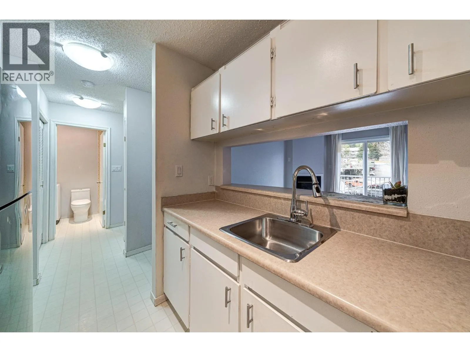Welcome to this bright and inviting 1-bedroom, 1-bath condo in the sought-after Elk Valley Vista complex. The spacious living room features a cozy corner gas fireplace and sliding glass doors leading to a private balcony surrounded by trees, offering peaceful mountain views. The galley-style kitchen provides ample counter space, stainless steel appliances, and a convenient pass-through with bar seating that opens seamlessly to the main living areaâperfect for entertaining or casual dining. The bedroom is filled with natural light, while a generous hall closet adds valuable storage. The full bathroom includes a tiled tub/shower combo, accompanied by a spacious vanity and a large mirror. This unit also includes a dedicated parking stall. The Elk Valley Vista complex offers secure entry, shared laundry facilities, convenient mail delivery, and a games room. Ideally located within walking distance of downtown Elkfordâs shops, services, and nearby wilderness trails, this home combines comfort, affordability, and access to the best of mountain living. Elk Valley Vista strata fees include BC Hydro for power and heat. This home is vacant and available for quick possession. (id:27476)