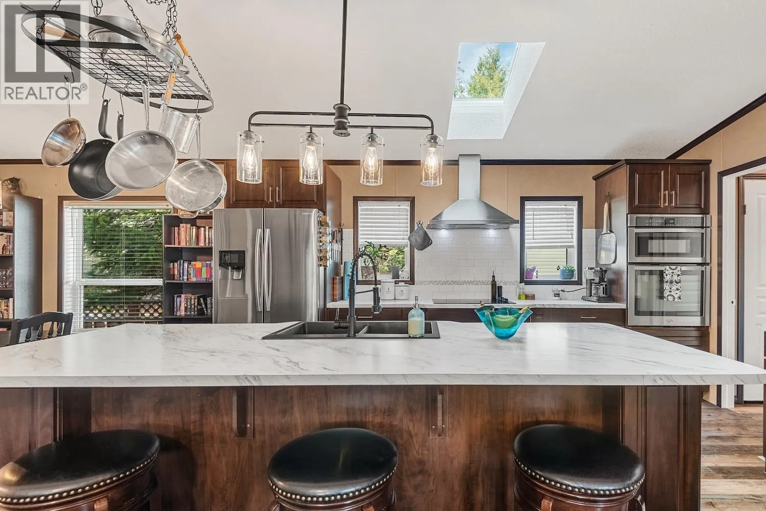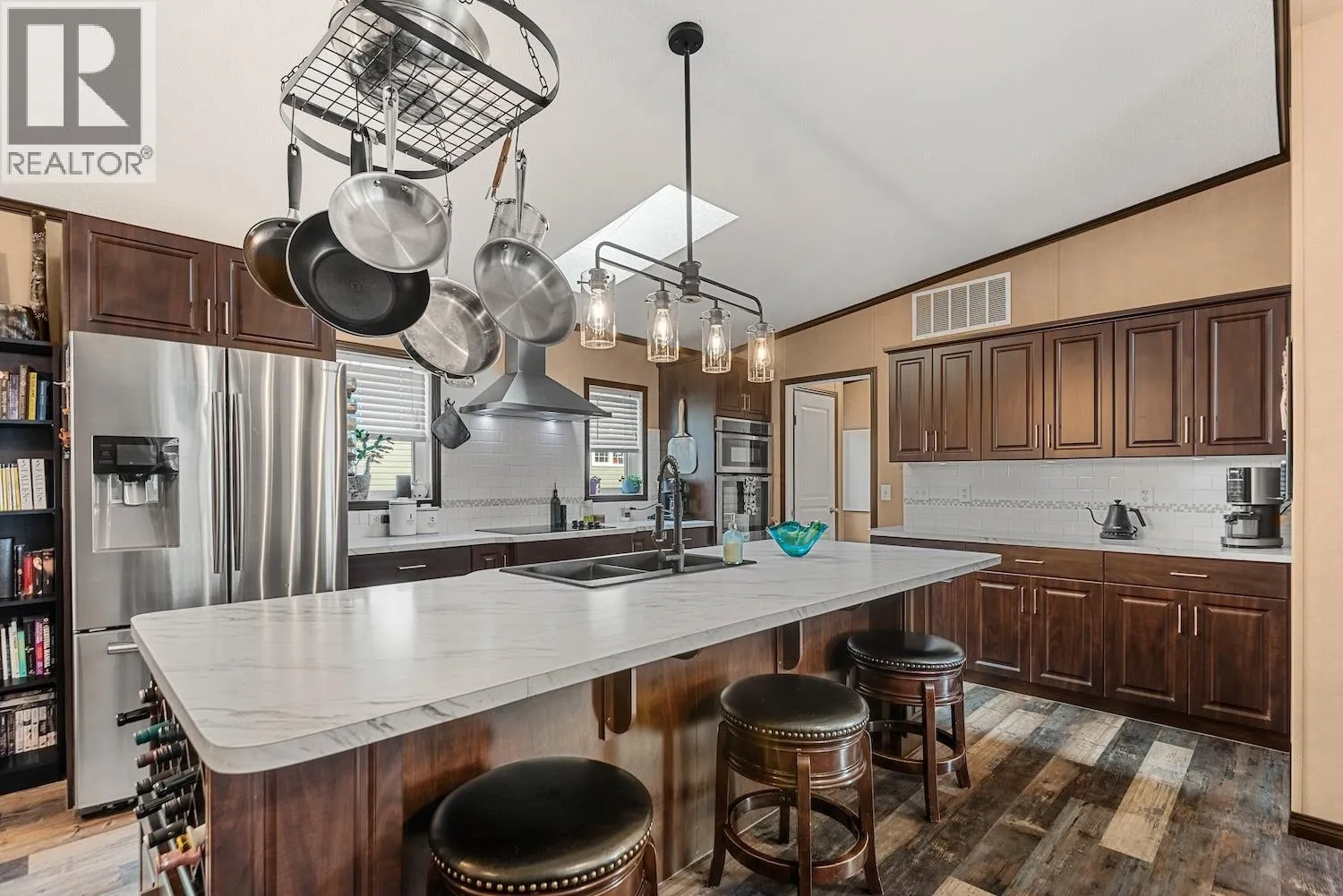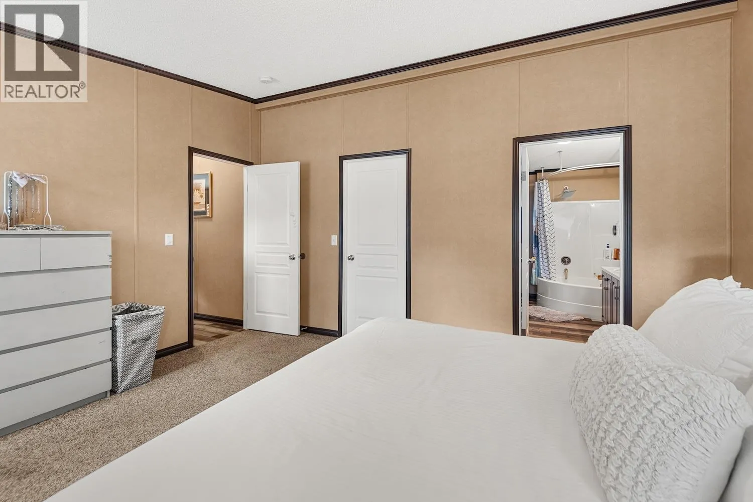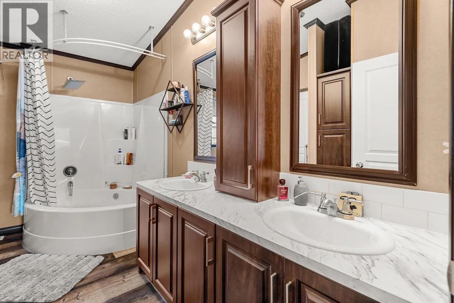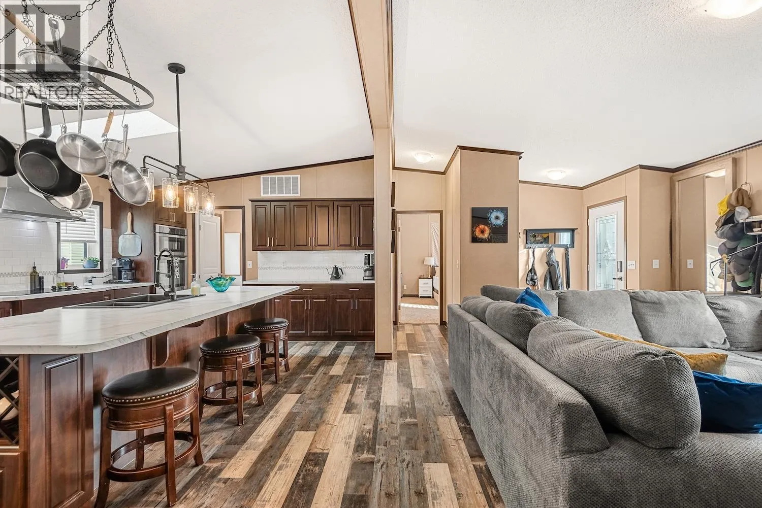Welcome home to this inviting 4-bedroom, 2-bathroom, manufactured home on its own 0.20-acre lot â complete with a 24â x 24â heated garage and plenty of parking. Step inside and immediately feel the sense of space and flow. The open-concept living area is designed for connection â perfect for entertaining and relaxing. A welcoming front entry closet keeps everything tidy right from the start, and the beautiful kitchen truly shines as the heart of the home. With its large eat-up island, quality stainless steel appliances, and ample counter and cabinet space, itâs ideal for cooking big meals, hosting gatherings, or just lingering over morning coffee. The primary suite is an absolute retreat â expansive in size with high ceilings, a walk-in closet, and a deluxe ensuite featuring double sinks and a deep soaker tub made for relaxation. The thoughtful floor plan places this private sanctuary on one side of the home, separate from the other three bedrooms and full bath â perfect for families, guests, or even tenants. Step out onto the sunny deck and enjoy the fully fenced yard which offers plenty of room for pets and play, while the homeâs setback position behind the garage provides a wonderful sense of peace and privacy. The detached heated garage offers incredible space for vehicles, gear, and hobbies, and thereâs ample storage throughout the home to keep life organized and clutter-free. Spacious, inviting, and beautifully laid out â come see how good life feels here. (id:27476)