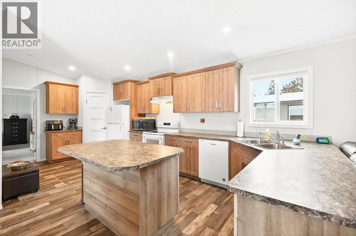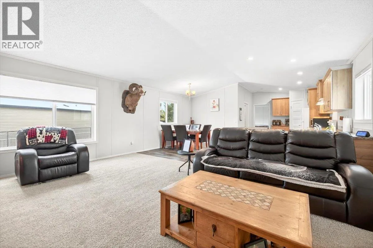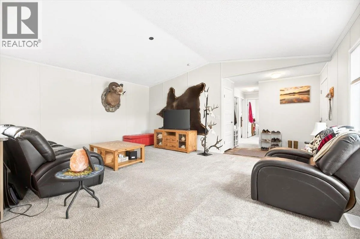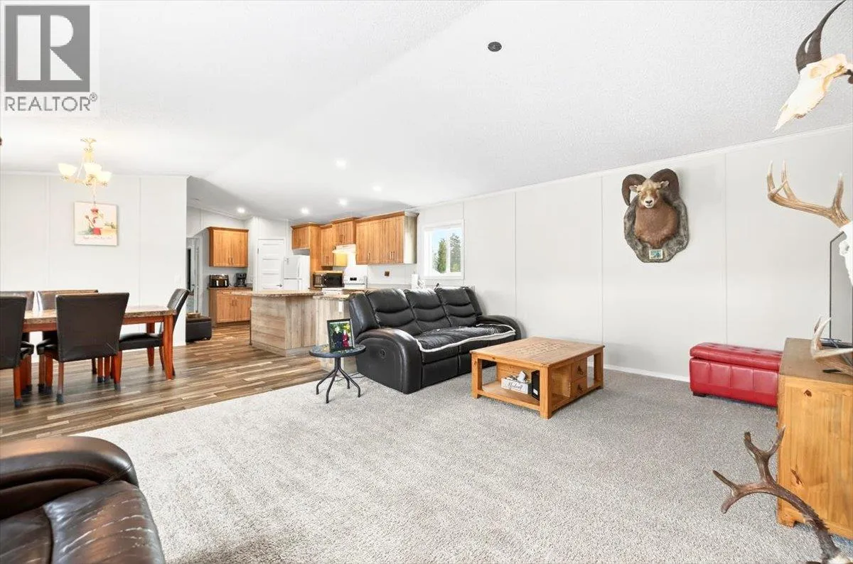 Thoughtfully designed and move-in ready, this 2024 modular home in Wilderness Heights offers modern comfort set against a beautiful mountain backdrop. The bright, open-concept layout creates an easy flow through the main living space, anchored by a well-appointed kitchen with a large island, ample storage, and room to gather. A spacious laundry and mudroom add everyday functionality. The primary suite is privately positioned at the back of the home and features a full ensuite with a deep soaker tub and a generous walk-in closet. Three additional bedrooms provide flexible space for family, guests, or a home office. Set on one of the largest lots in the park, the fully fenced yard is finished with black chain-link fencing and includes a storage shedâideal for gear, tools, or seasonal storage. Step outside to take in the mountain views and enjoy direct access to Elkfordâs trail network, perfect for those who value time outdoors. Located in a quiet, family-friendly community close to local amenities, this home offers a comfortable lifestyle where modern living meets mountain surroundings. (id:27476)