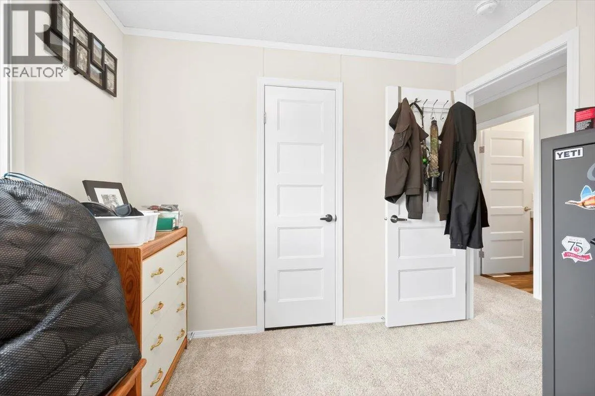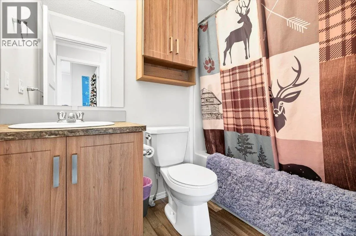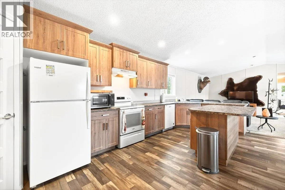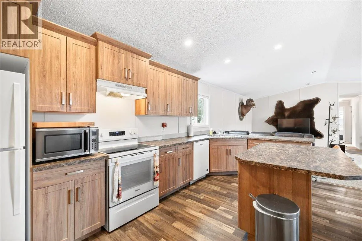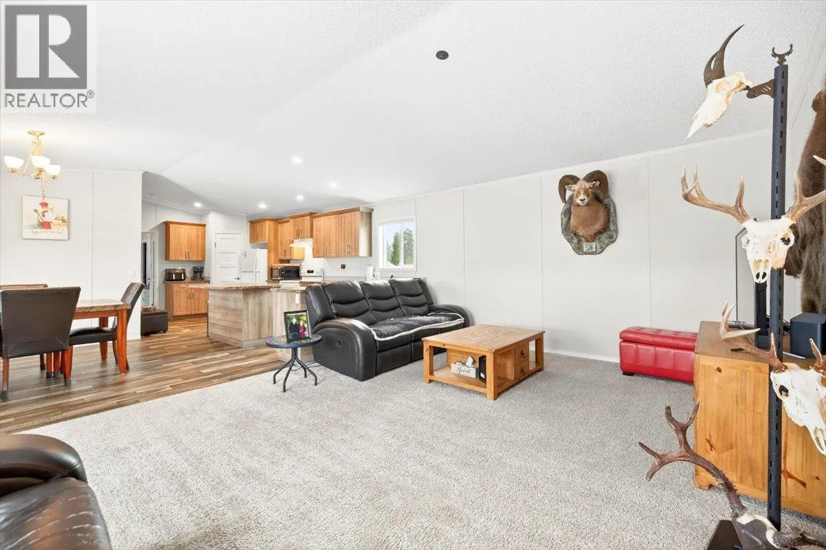 Thoughtfully designed and move-in ready, this 2024 modular home in Wilderness Heights offers modern comfort set against a beautiful mountain backdrop. The bright, open-concept layout creates an easy flow through the main living space, anchored by a well-appointed kitchen with a large island, ample storage, and room to gather. A spacious laundry and mudroom add everyday functionality. The primary suite is privately positioned at the back of the home and features a full ensuite with a deep soaker tub and a generous walk-in closet. Three additional bedrooms provide flexible space for family, guests, or a home office. Set on one of the largest lots in the park, the fully fenced yard is finished with black chain-link fencing and includes a storage shedâideal for gear, tools, or seasonal storage. Step outside to take in the mountain views and enjoy direct access to Elkfordâs trail network, perfect for those who value time outdoors. Located in a quiet, family-friendly community close to local amenities, this home offers a comfortable lifestyle where modern living meets mountain surroundings. (id:27476)