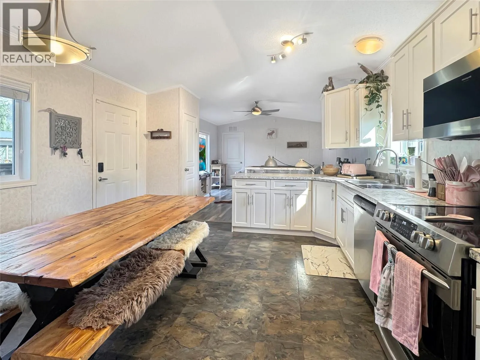 Step into this 2018 home featuring a bright and functional layout with AC designed for comfortable living. The open-concept kitchen, dining, and living area is the heart of the home, with a crisp white kitchen, ample cabinet storage, and plenty of natural light. The spacious primary suite offers a walk-in closet and a full ensuite bathroom for privacy and convenience. On the opposite end, youâll find a second bedroom and another full bath â perfect for guests, family, or a home office. Outside, take in sweeping mountain views from the large deck, an ideal space for morning coffee, evening barbecues, or simply relaxing and enjoying the peaceful setting. Located in Elko, this property offers a quiet escape while still being within a short drive to Jaffray, Fernie, and Cranbrook. If youâre searching for a home with space, views, and a practical layout, this one is ready for you. (id:27476)