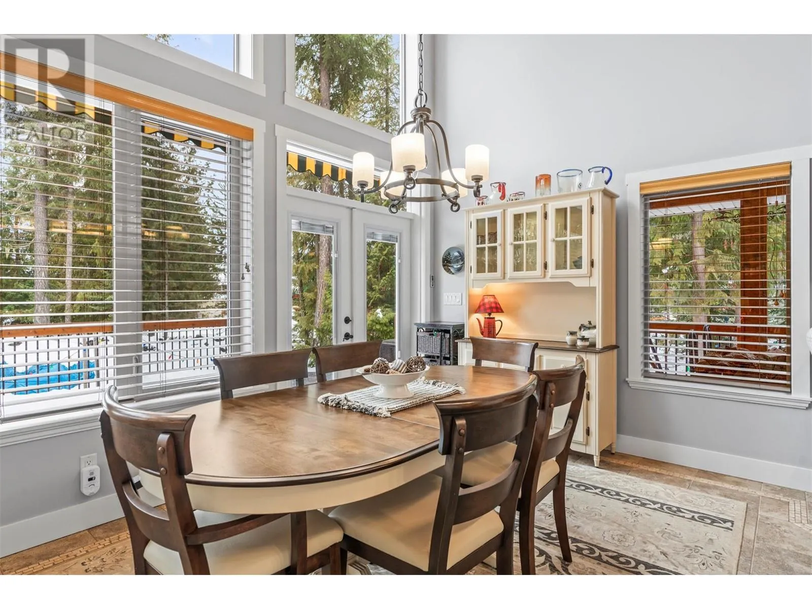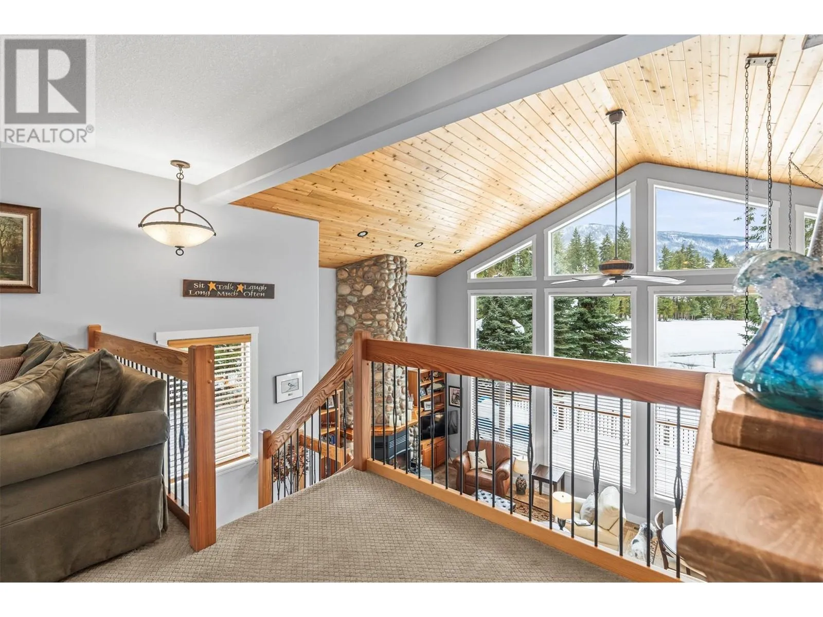 Located in the desirable recreational community of Mabel Lake Golf Course strata, this lovely fully furnished two-storey home on 0.39-acres backing onto air-strip, boasts a breathtaking open-concept layout w/floor to vaulted-ceiling windows showcasing views of its picturesque surroundings. A gourmet kitchen awaits w/rich wood cabinetry, granite countertops, prep sink, tiled backsplash & stainless-steel appliances. In the adjacent great room, a floor to ceiling stone-faced fireplace gives off great heat & adds lovely ambiance. From this area, access the wrap-around deck with built-in BBQ for ease of al-fresco dining & entertaining. Three bedrooms are split between the main floor and loft level, with the primary suite located on the latter. A gorgeous ensuite bathroom w/granite counters, and private deck await within the master suite, and the remaining loft offers a great multi-functional space. Both the main bath and ensuite enjoy heated flooring. Large basement space awaits your ideas. Fit all your toys on this property w/added bonus of a, fully serviced RV spot. Low Strata Fees!! Come see everything this fabulous property can offer you today. (id:27476)