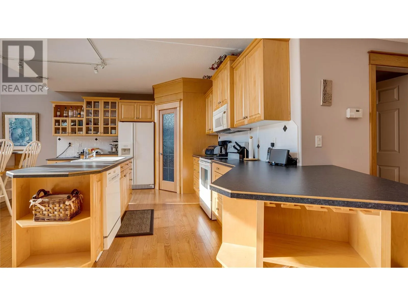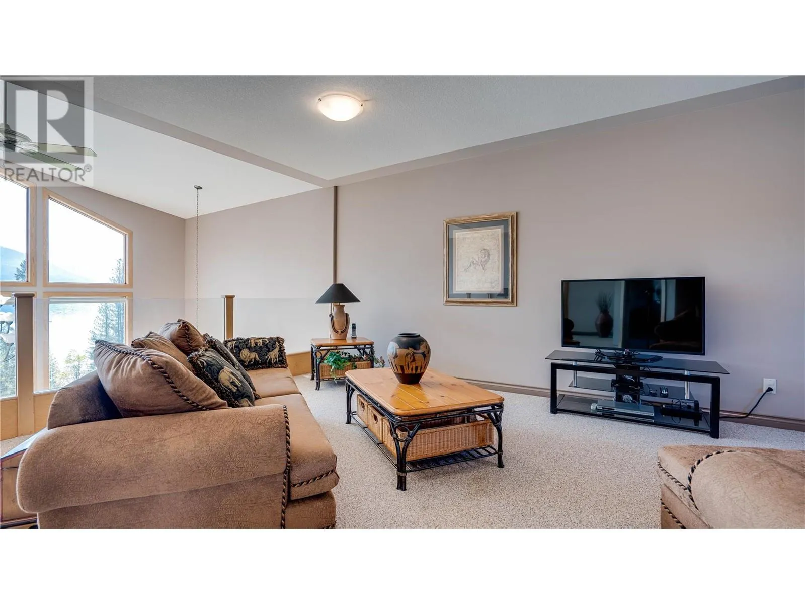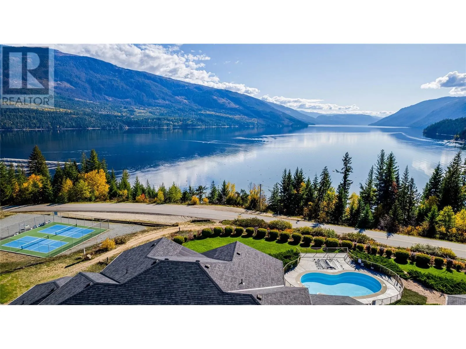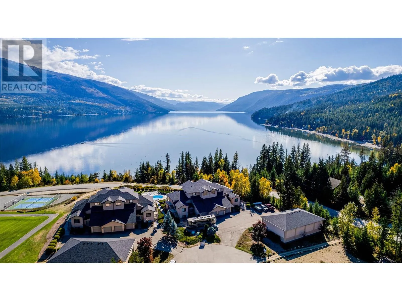 No Speculation Tax at Mabel Lake. Just relax, enjoy the view, and leave stress behind with this stunning turnkey townhome in a quiet and exclusive 8-unit strata. Overlooking Mabel Lake and the breathtaking Monashee Mountains, this 3-bedroom, 3-bathroom, townhome complete with single car attached garage boasts over 3000 square feet and multiple living areas ideal for entertaining. Inside, a spacious foyer welcomes you and leads into a stunning open-concept space, showcasing the kitchen with its oversized island, walk-in pantry, and massive dining area. Floor to ceiling windows and vaulted ceilings drench the entire South facing space with incredible natural light as well as allow for unobstructed views. Patio doors off the kitchen lead to the partially covered wrap-around deck overlooking the tranquil pool and hot tub. The main floor ownerâs suite offers direct patio access, walk-in closet, and ensuite with dual dinks, heated flooring, and oversized jacuzzi tub. A second bedroom shares the full hall bathroom with guests. Upstairs, a second living room with lake views is ideal for gathering. The third bedroom can also be found on this level. This condo is walking distance from the renowned Mabel Lake Golf and Country club, clubhouse restaurant, marina, and boat launch. This location is hard to beat. New hot water tank, air conditioning, and furnace (2024), roof within last 5 years. Ownership includes a large boat slip at Shuswap Rivermouth Marina. (id:27476)