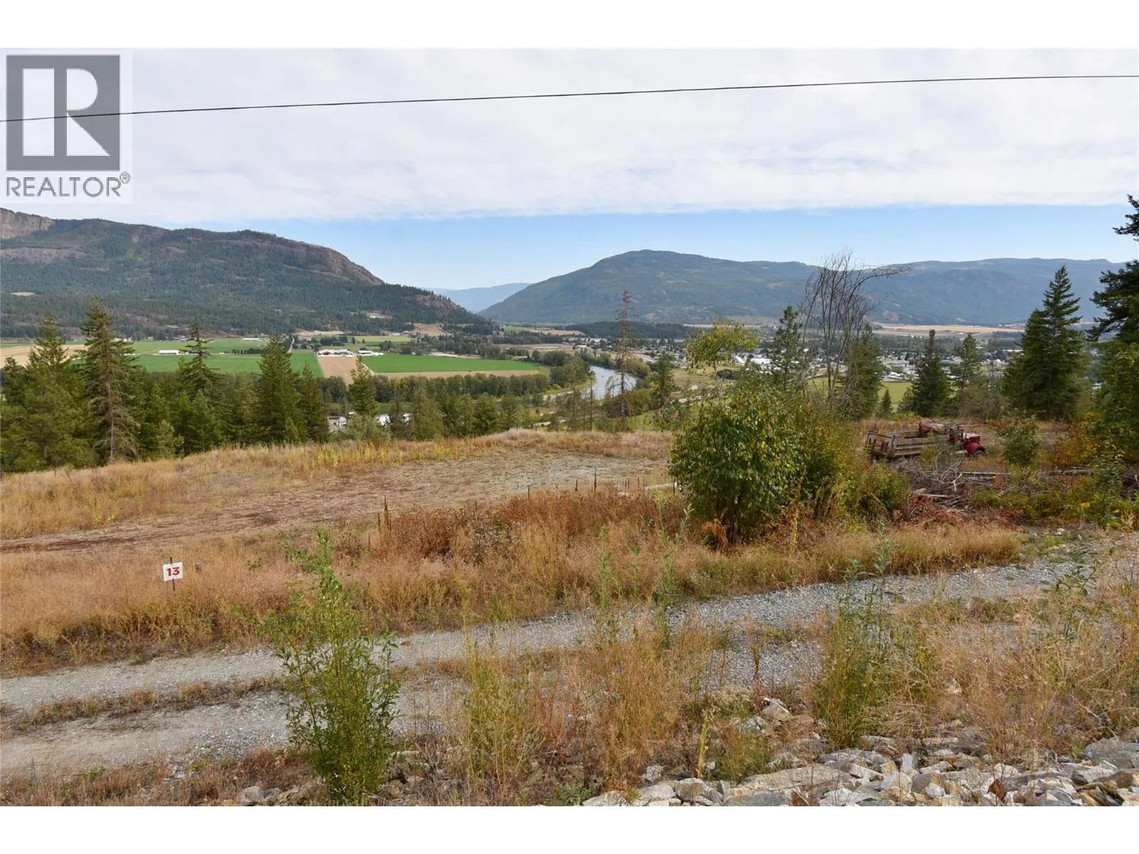 Lot 13 ~ 225 Crooked Pine Road. Take advantage of this fabulous opportunity to build your dream home. Treed gently sloping 2.5 acre lot with great Enderby Cliff, Shuswap River and valley views. Driveway installed, septic approved. Access off Honeysuckle. Private driveway. Fiber Optics at lot line. Area of new homes. Hwy 97A to Enderby, LEFT onto Knight Ave, RIGHT onto Salmon Arm Drive, follow all the way & go LEFT onto Gunter Ellison Road, follow & then slight RIGHT onto Twin Lakes Road then RIGHT onto Oxbow Place, follow that road into the development site. (id:27476)