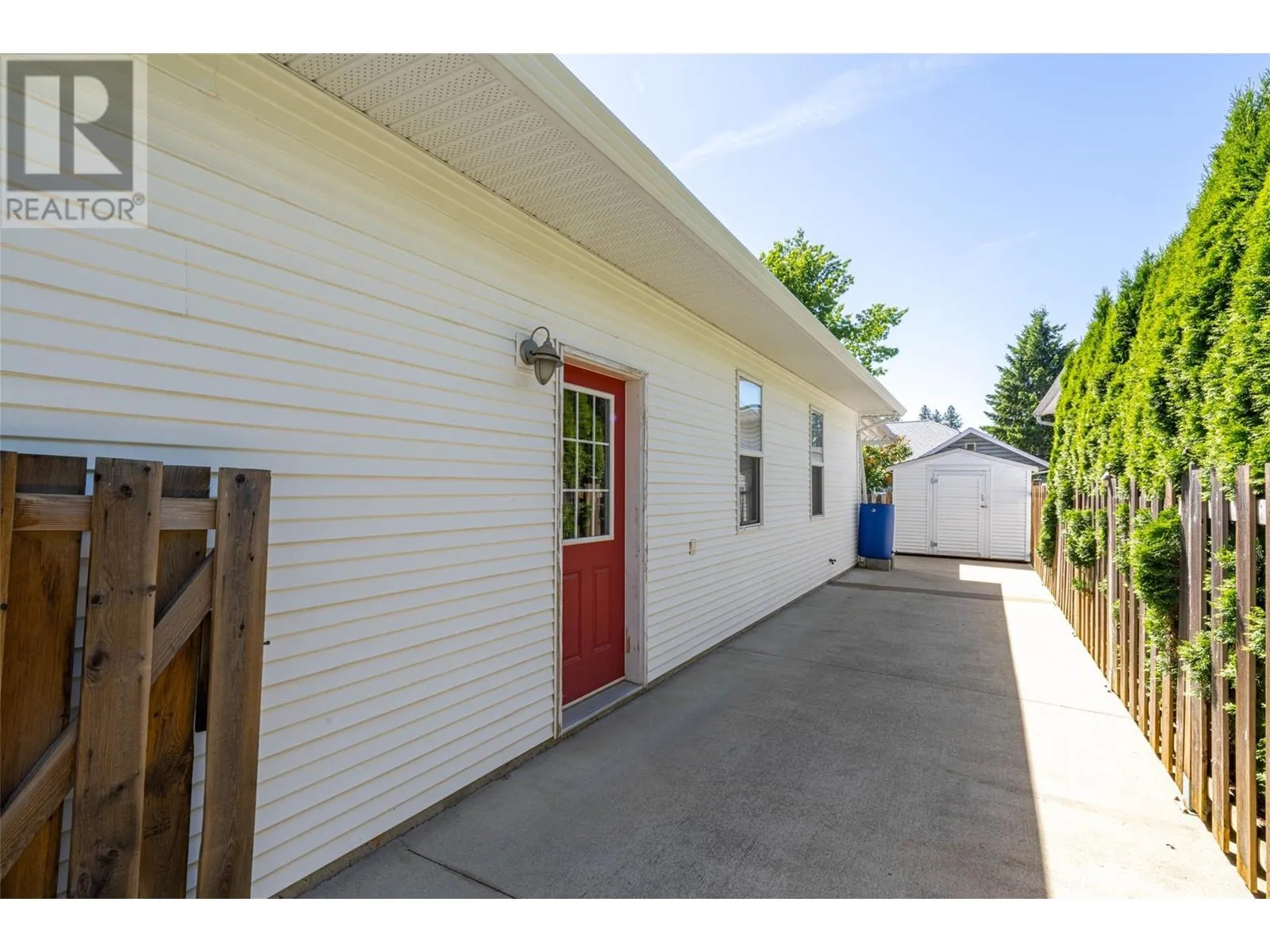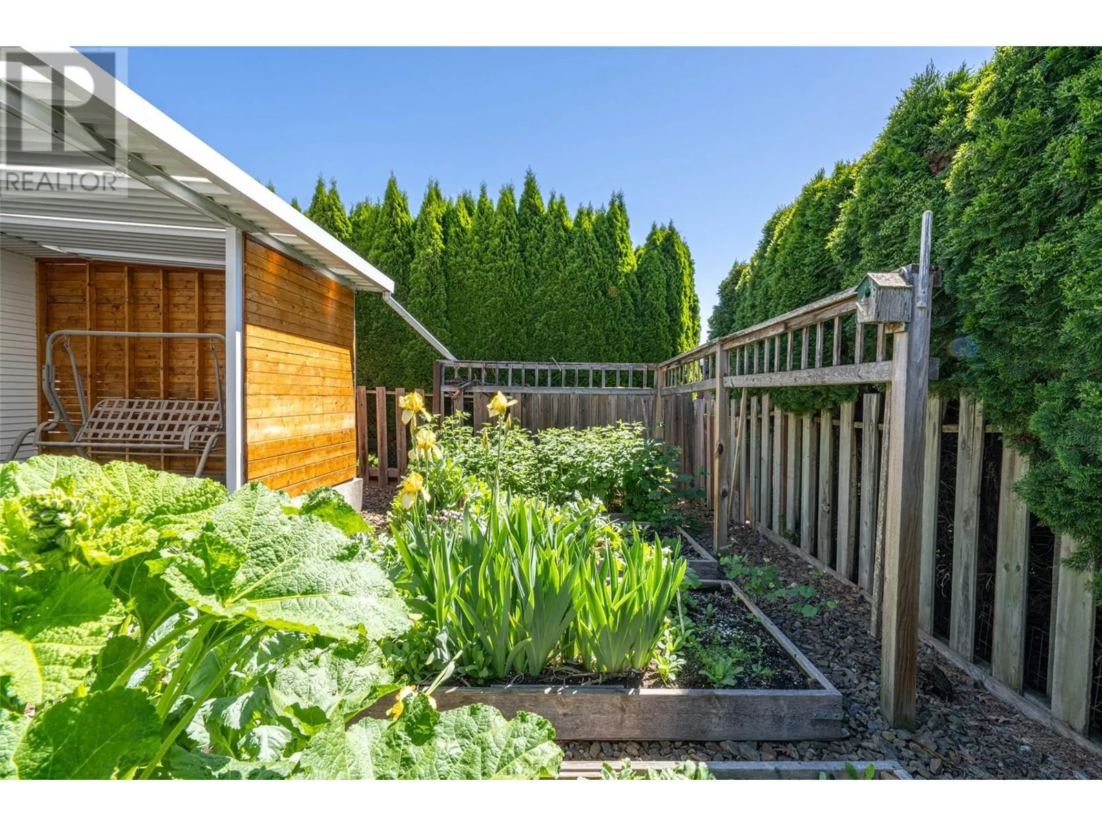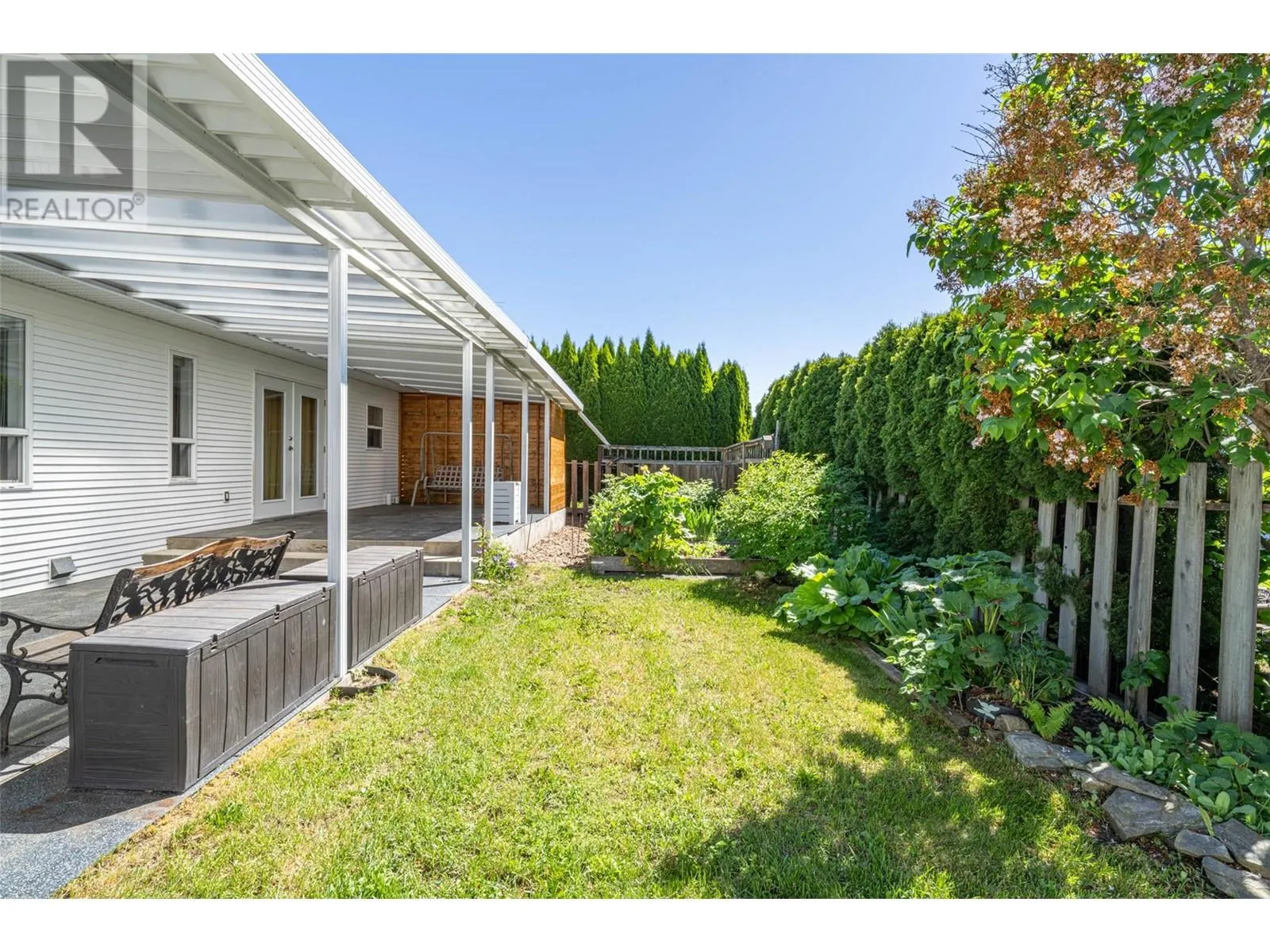 Hard to find 3 bedroom, 2 bath rancher close to the River Walk, Tuey beach & park, and recreation facility. Custom built by the current owner in 2005, you'll be sure to love the 11' ceilings thru-out...makes everything feel oh so spacious. Great room style main living/dining/kitchen area where you can entertain with ease. L-shaped kitchen offers bright white cabinetry and a center island complete with a breakfast bar. There is lots of room for a full dining suite or a more simple dining table. Double french doors open onto a covered 46' foot full length patio with privacy screening for your outdoor living enjoyment. Two bedrms & a full bath are located just down from the main living area. You will find the primary bedroom located on the opposite side of the home for the utmost in privacy. There is a walk-in closet & a full ensuite with new flooring & a new walk-in shower. Laundry is just outside the primary bedroom door with access to the garage through the laundry area. The south facing yard is fully fenced & very private boasting 18' x 8' hard wired shed, garden beds, fruit trees, raspberries, strawberries, rhubarb & even 4 hascap berry bushes! Hydro avg $150 p/mo for all your electrical, hot water & heating needs. A brand new hot water tank was just installed and a new roof put on in August 2024. There is an additional 4'ft crawl for extra storage needs. Parking is made up of a double car garage & a nice wide & long driveway which can even accommodate your RV! (id:27476)
